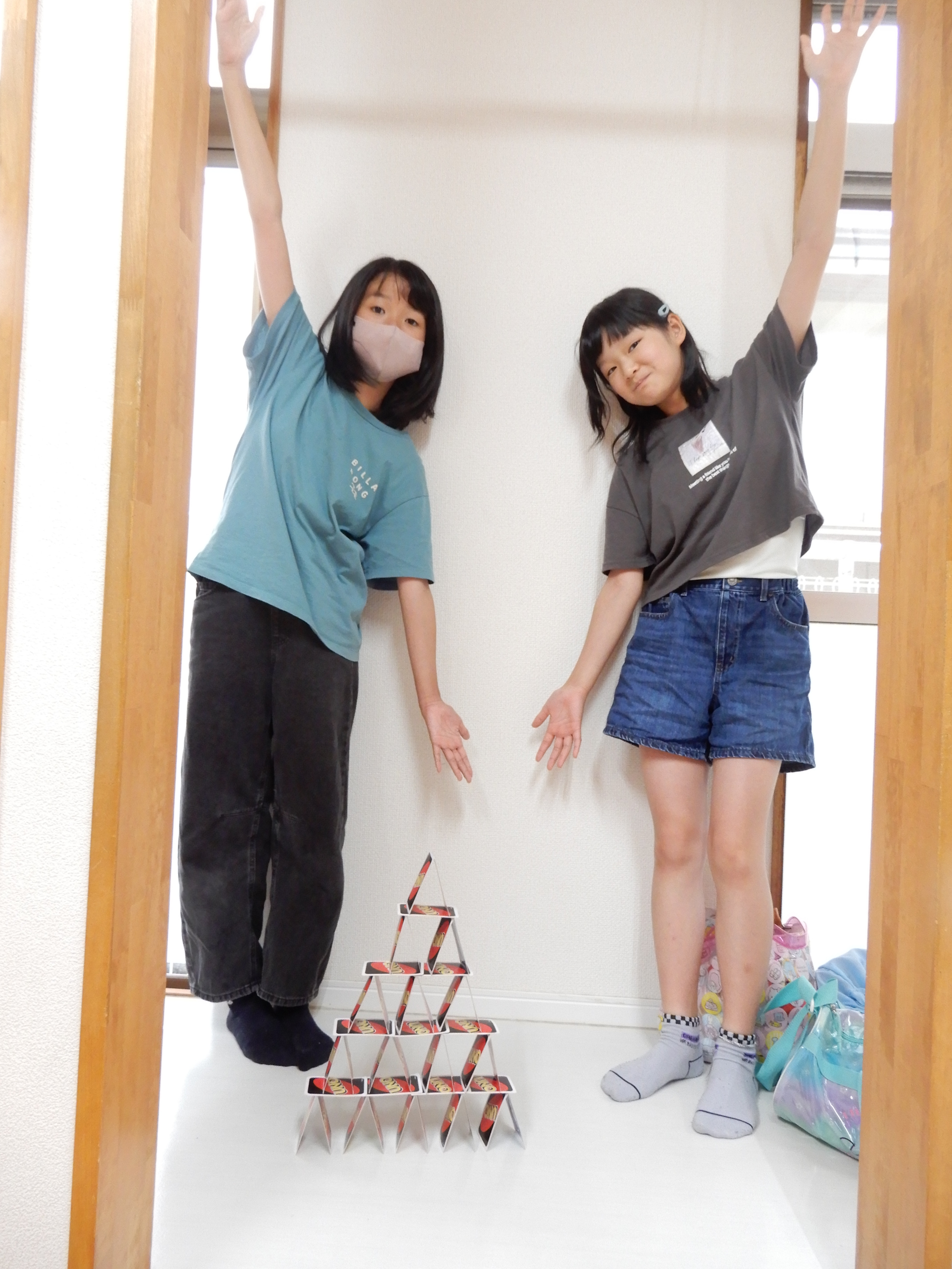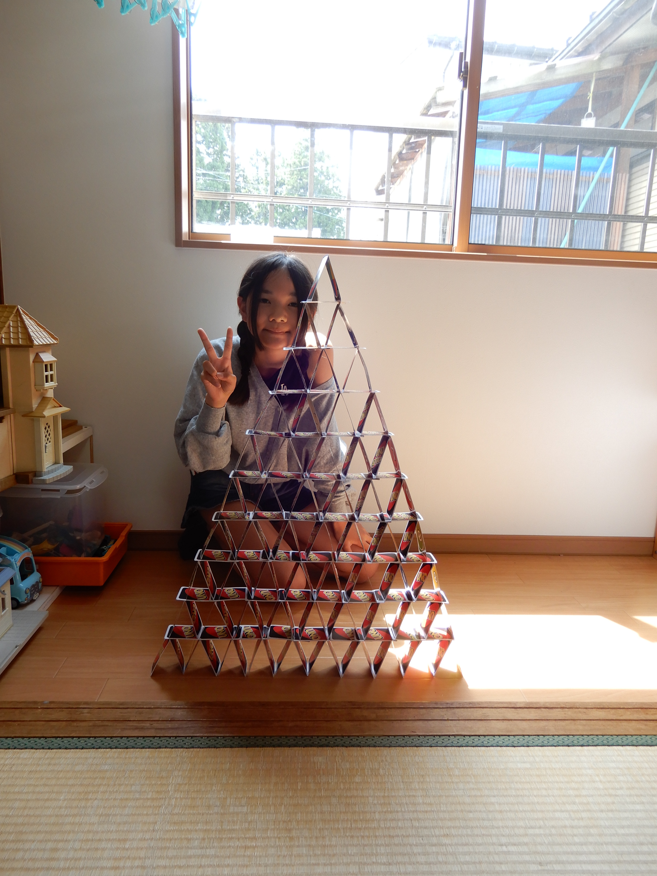トランプタワー(UNO?花札🎴??)の完成‼️ すごいすごい✨