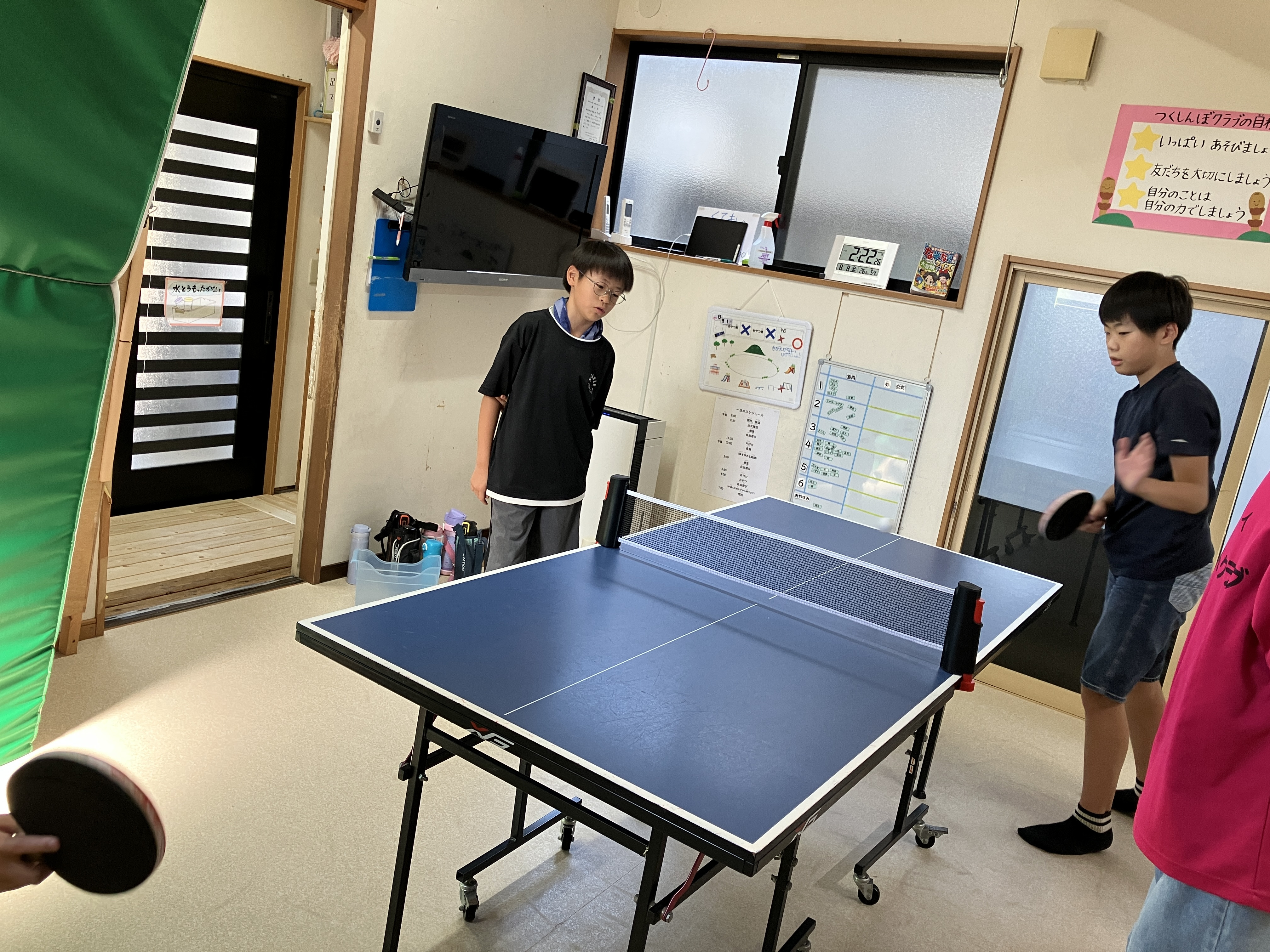 卓球台もいつもより大きいから、ちょっぴり苦戦…