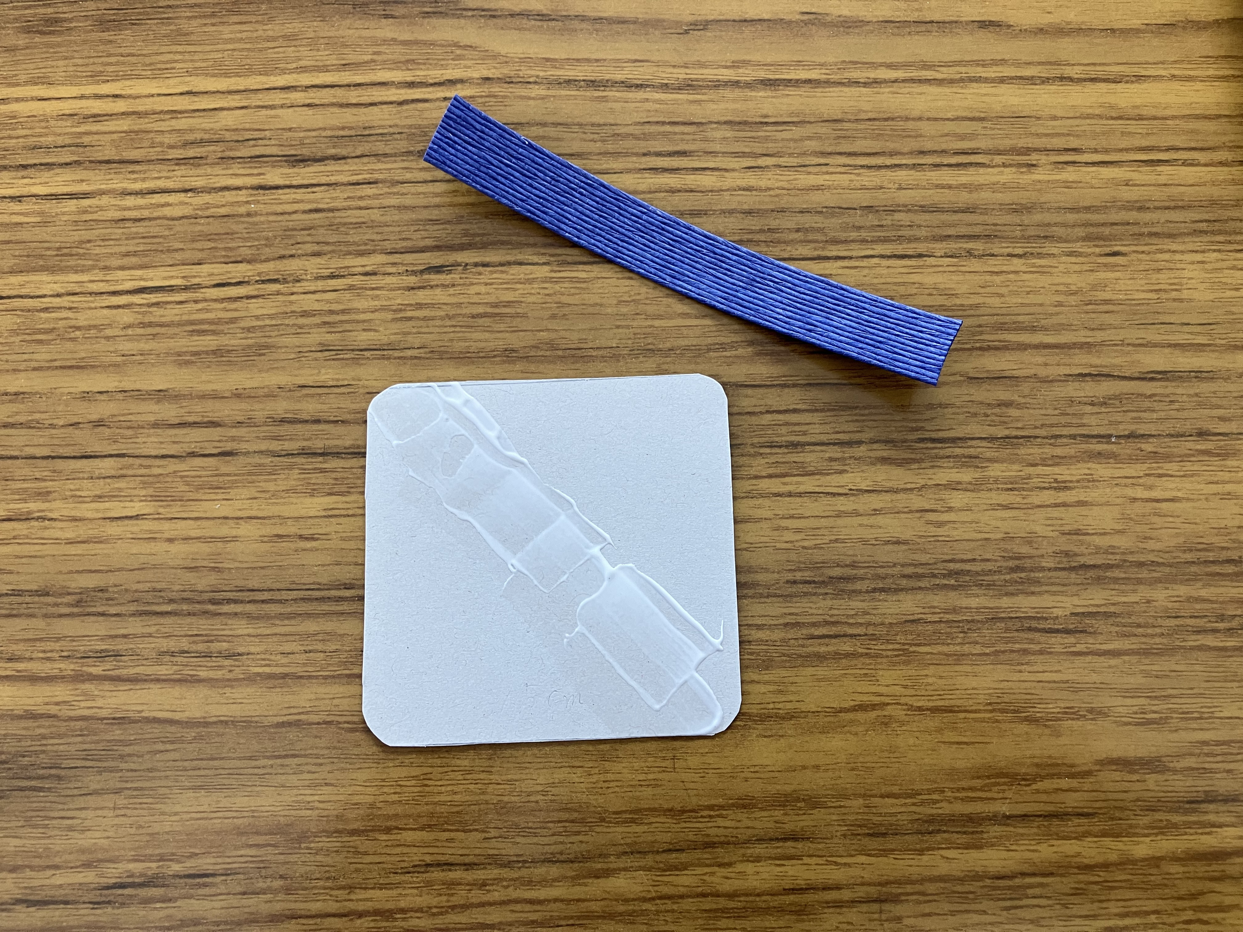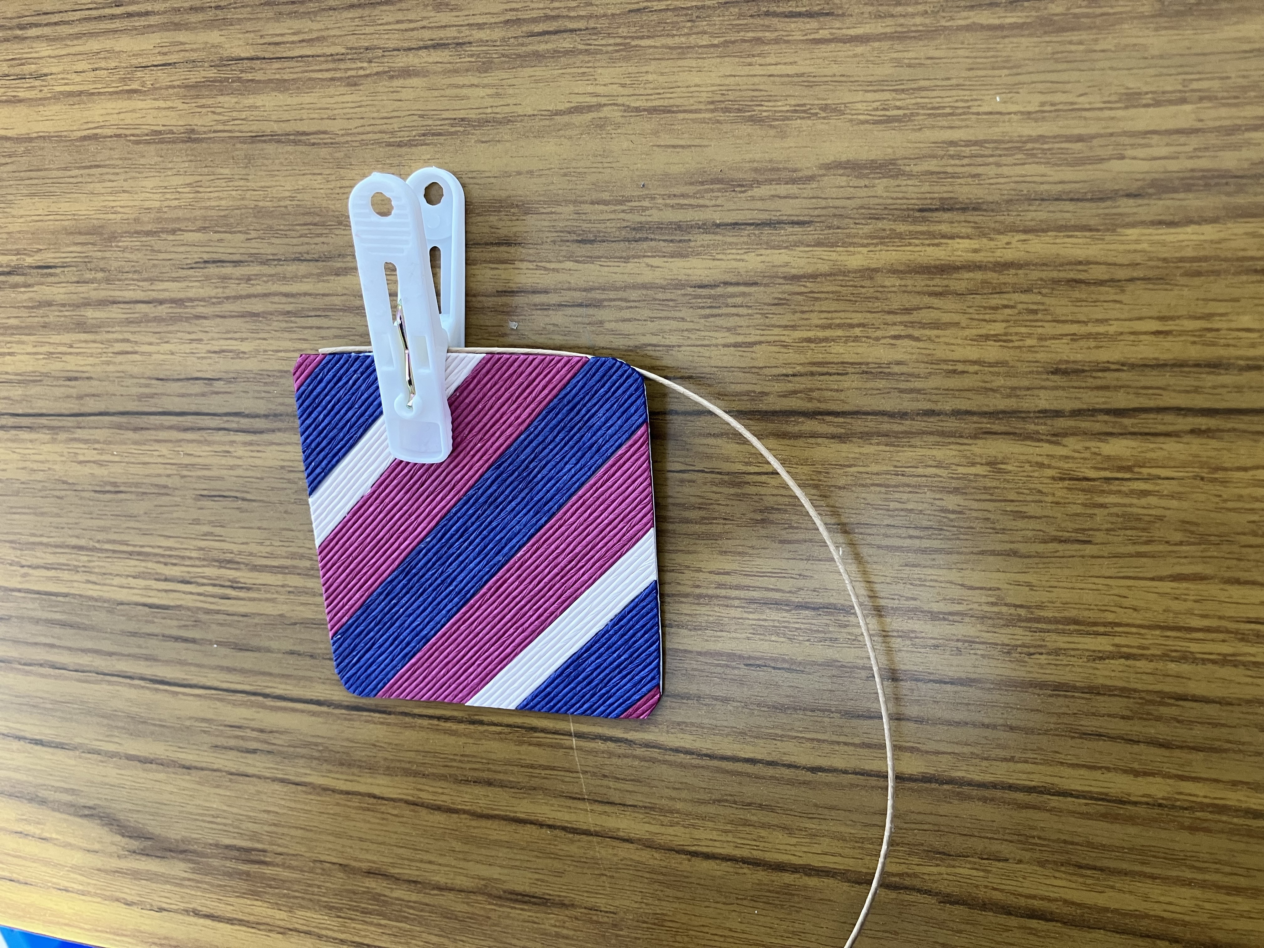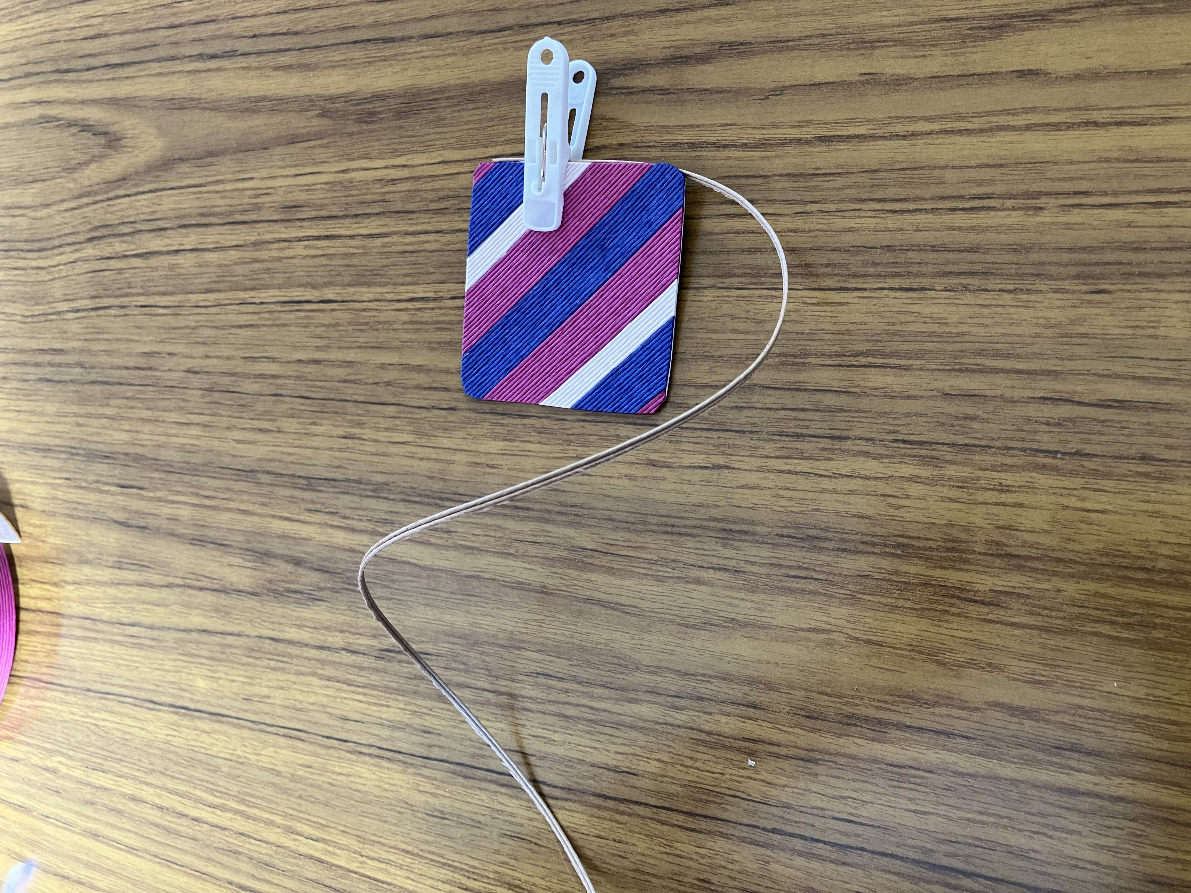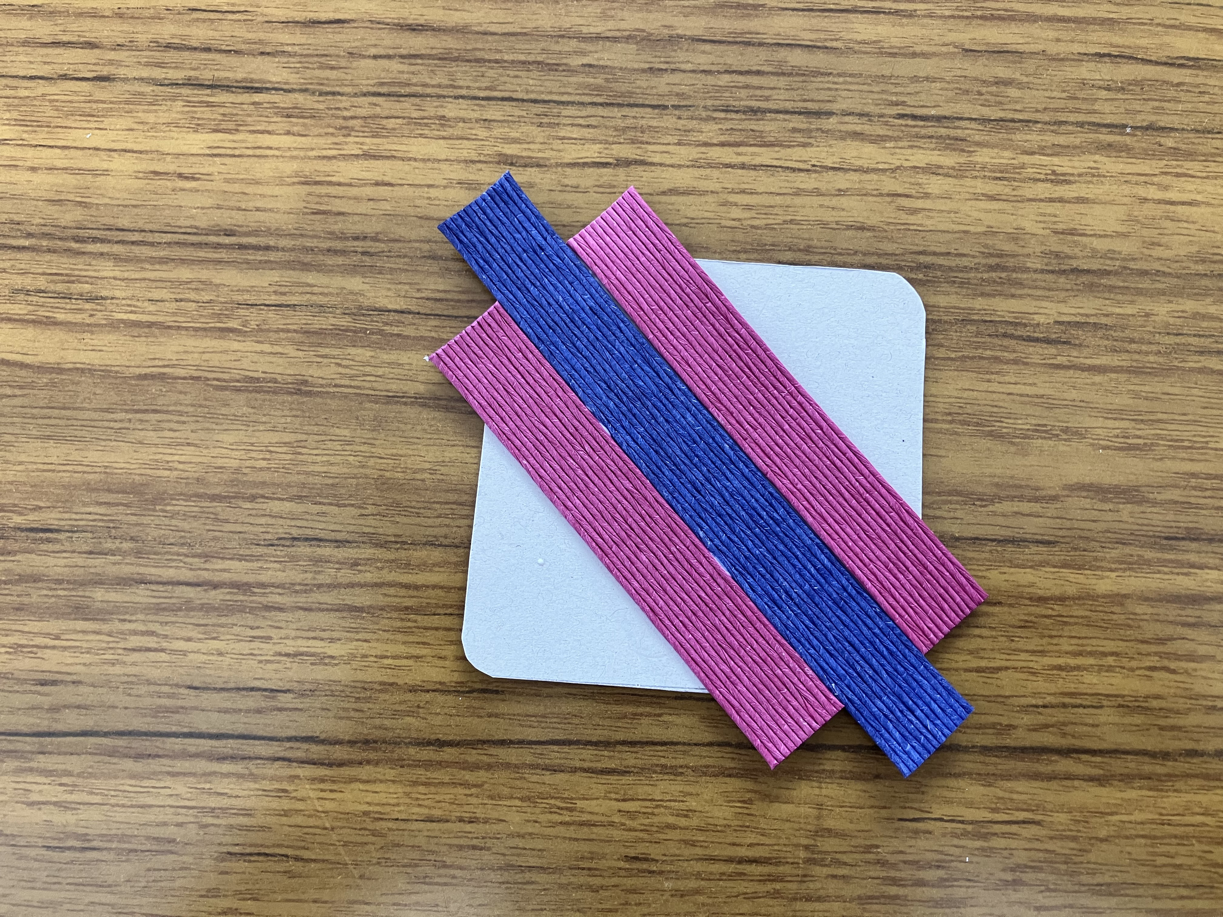 ③台紙の側面部にボンドを貼り、クラフトバンド(2本幅に裂く)をつければ完成です✨✨