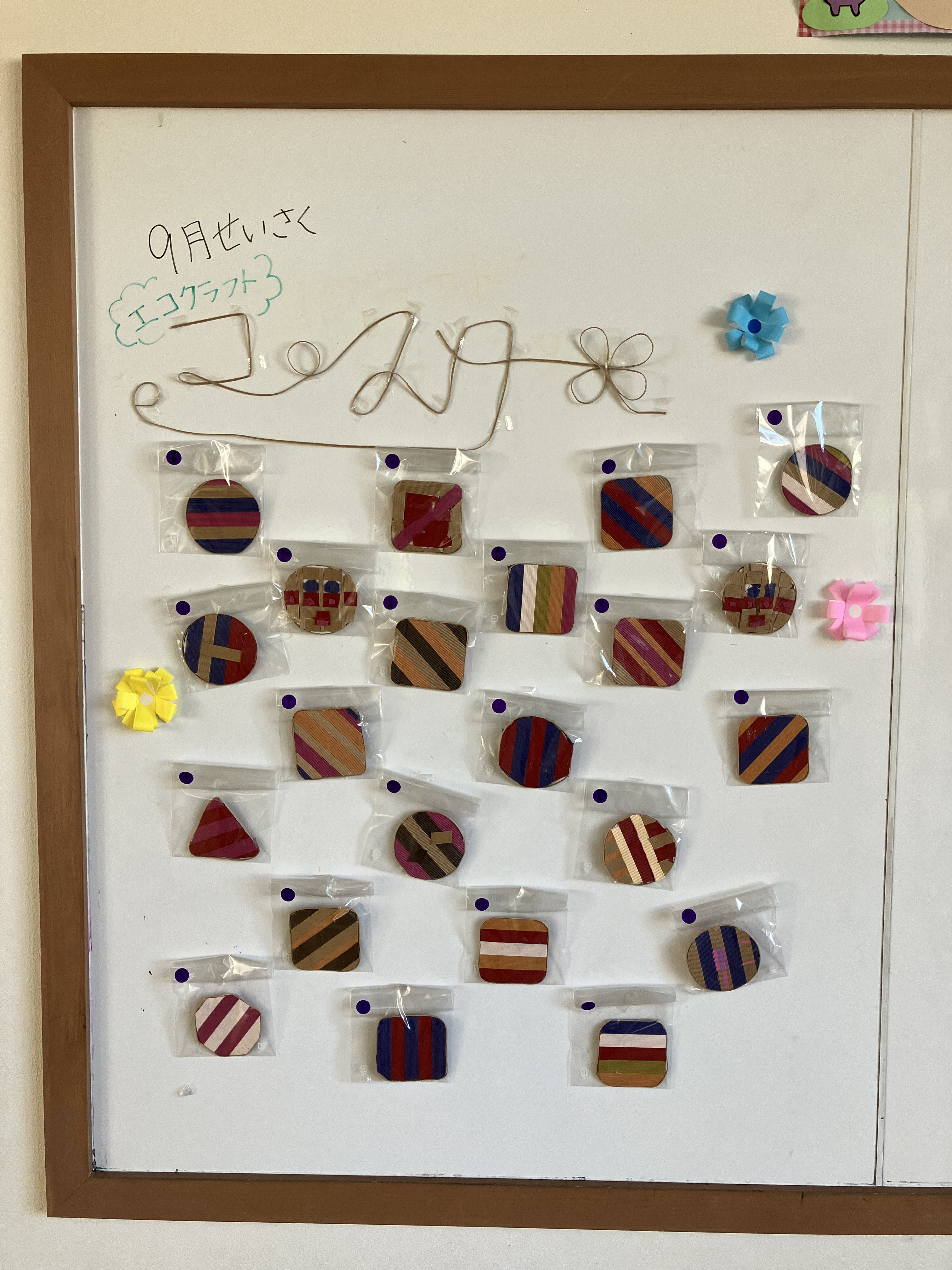 9月の制作は、いろんな色のクラフトバンドを使用して、コースターを制作しました😄
