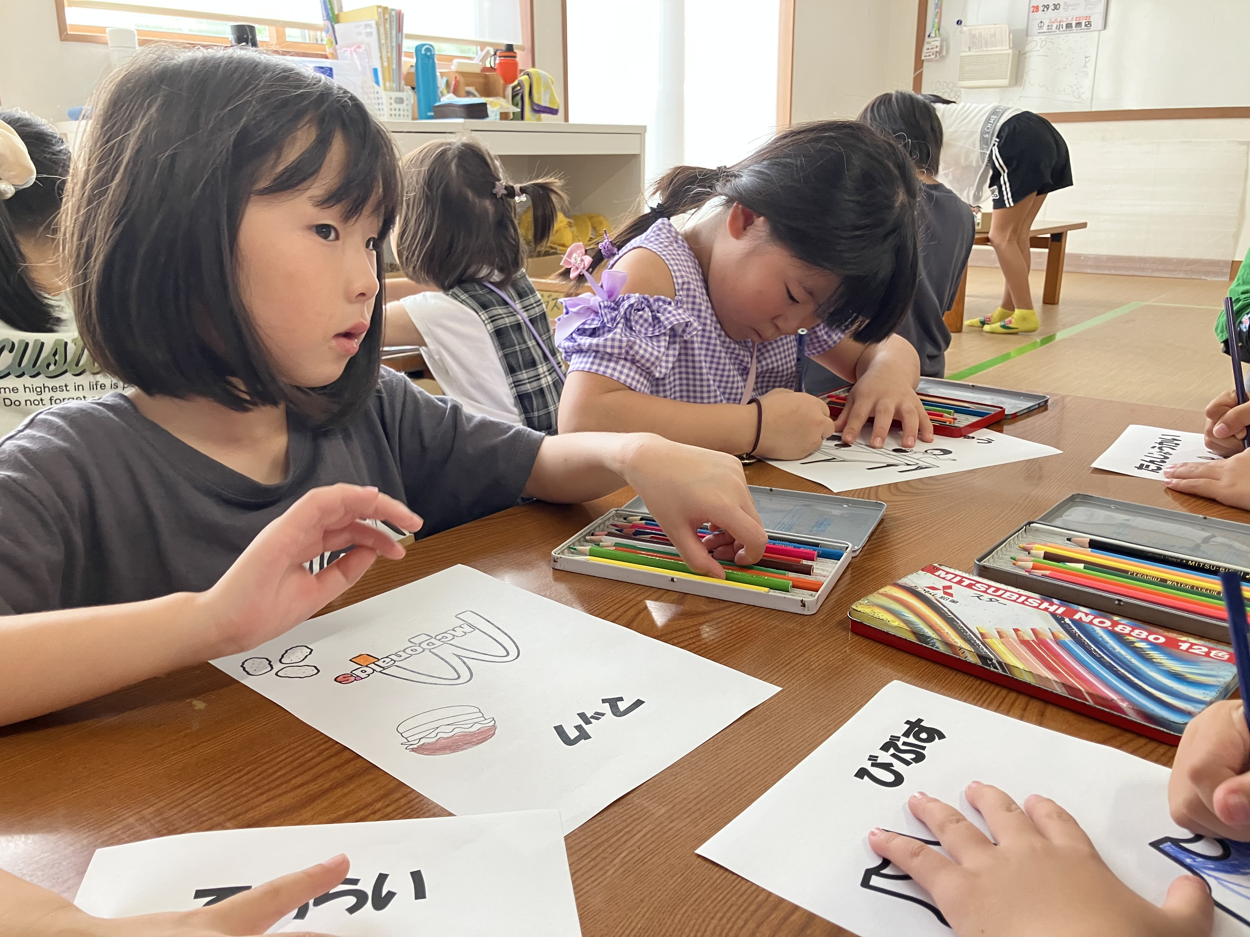 9月の誕生日会で使う、JS版かるたの色染めをしてくれました✍