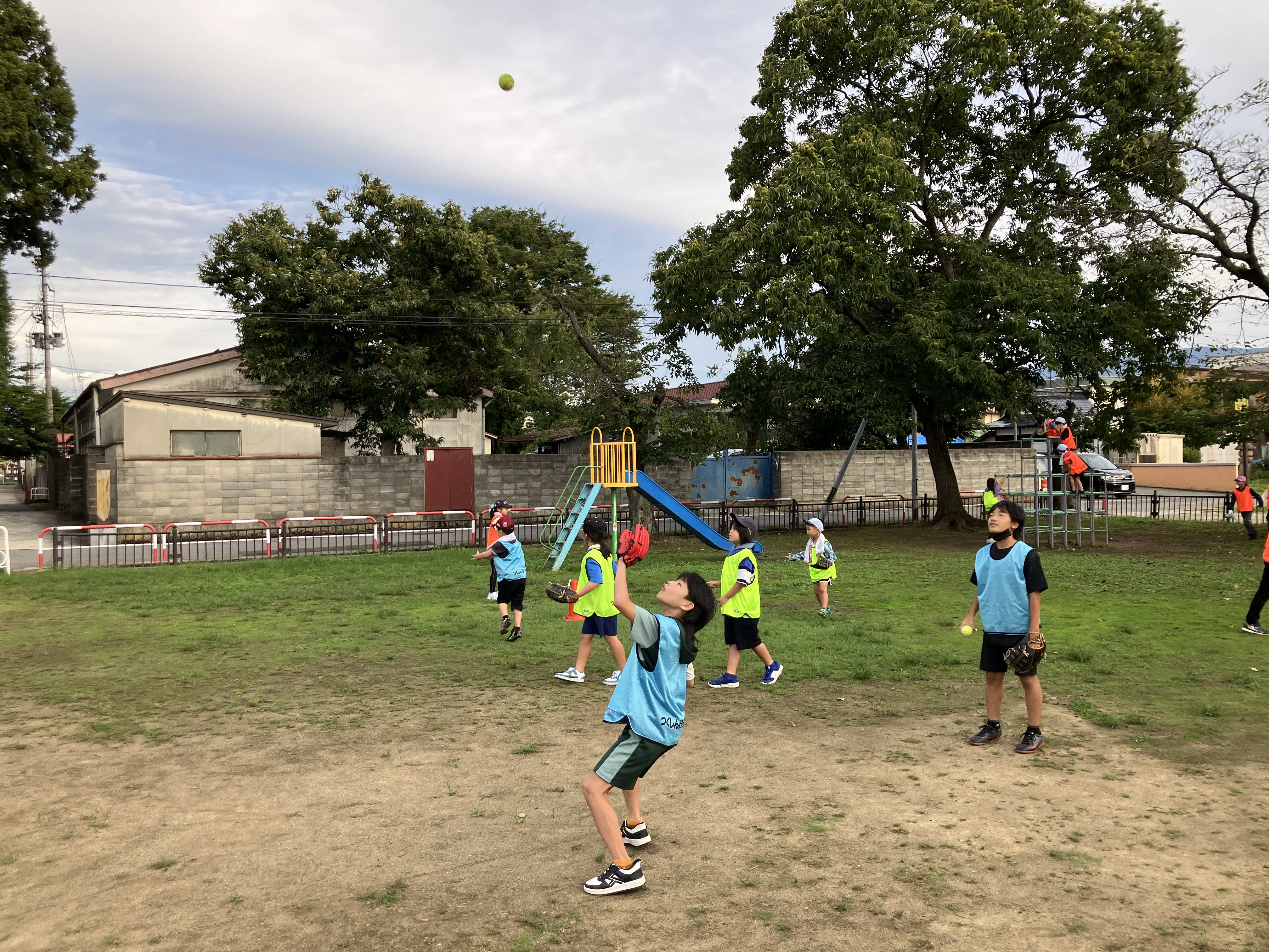 公園の真ん中は日替わりで遊びが変わります☺️この日は⚾キャッチボール⚾の日