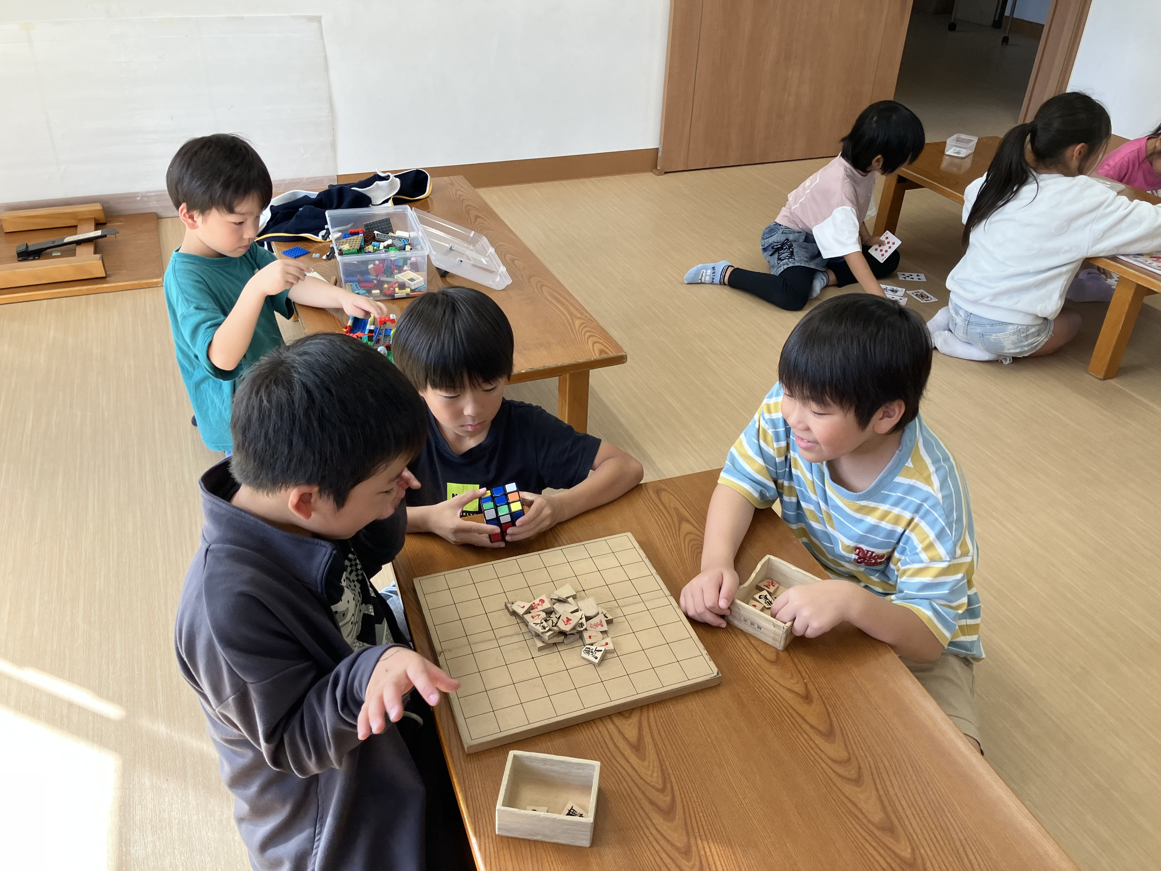 カッタン将棋にナインタイルにボードゲームに…いつでも子どもたちは真剣勝負!!