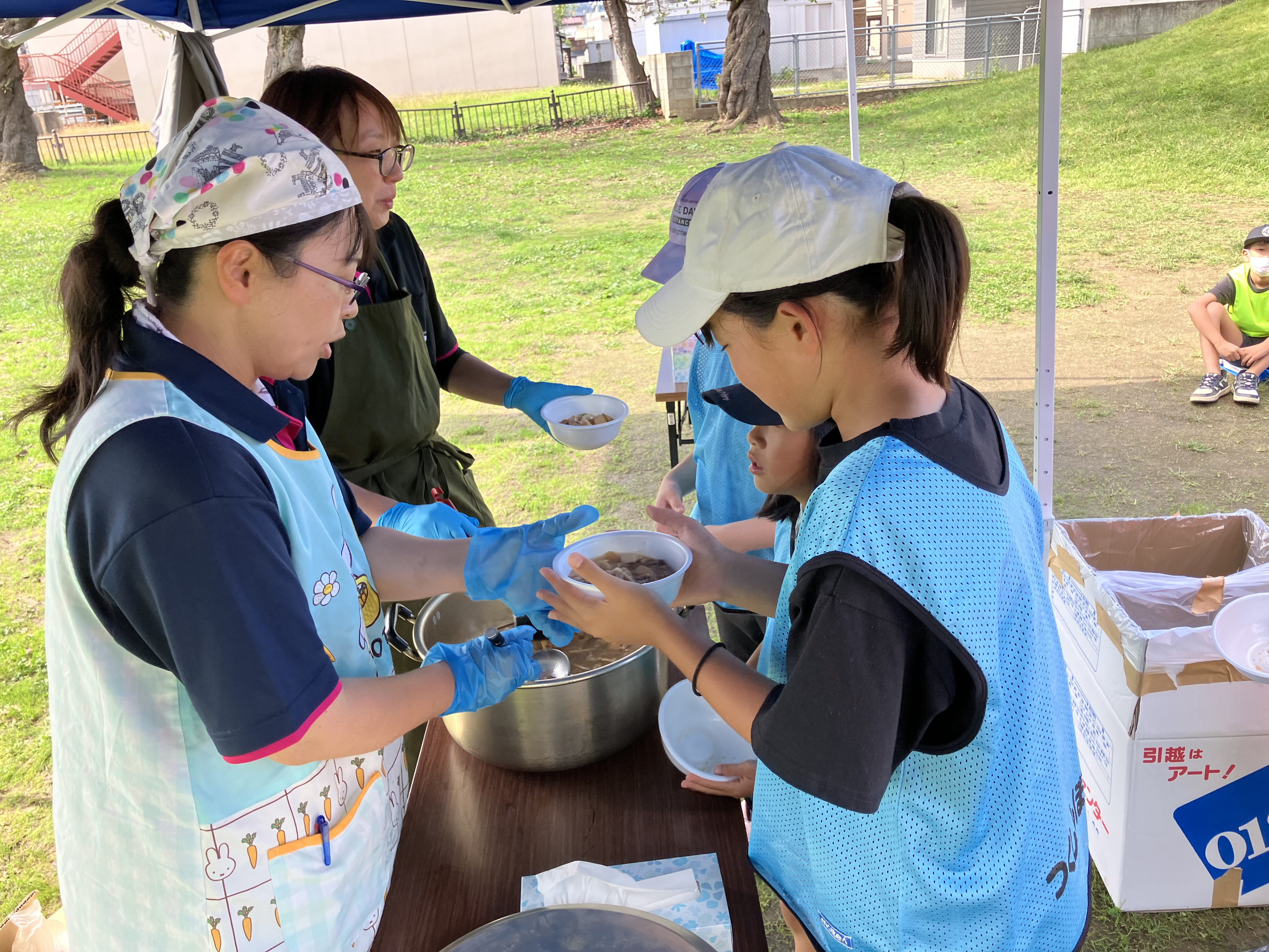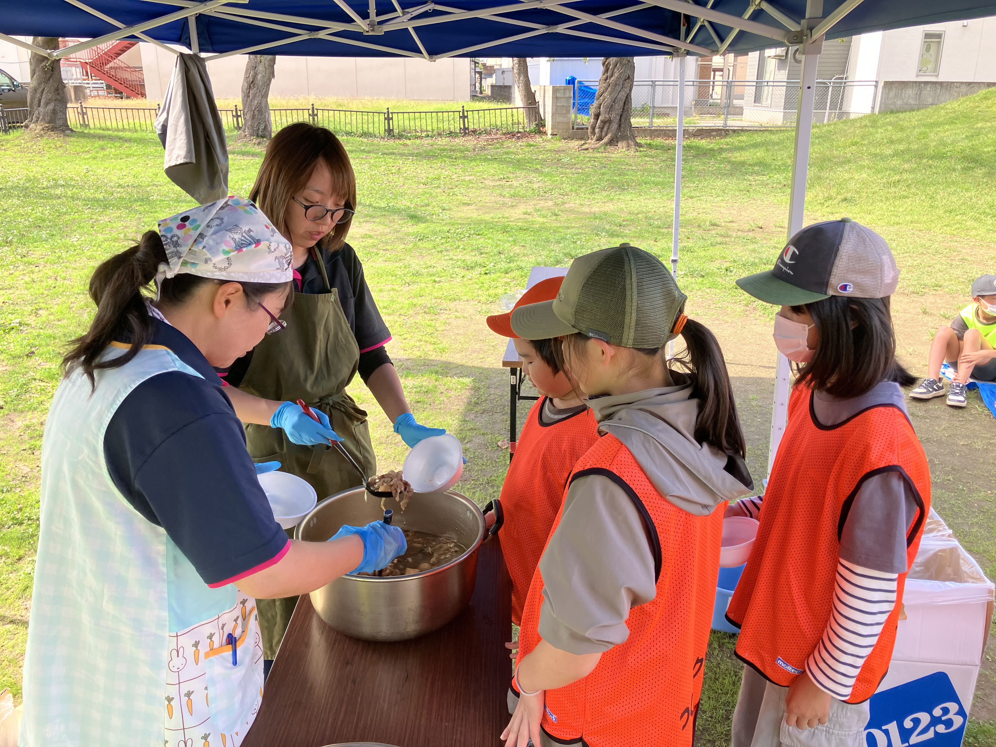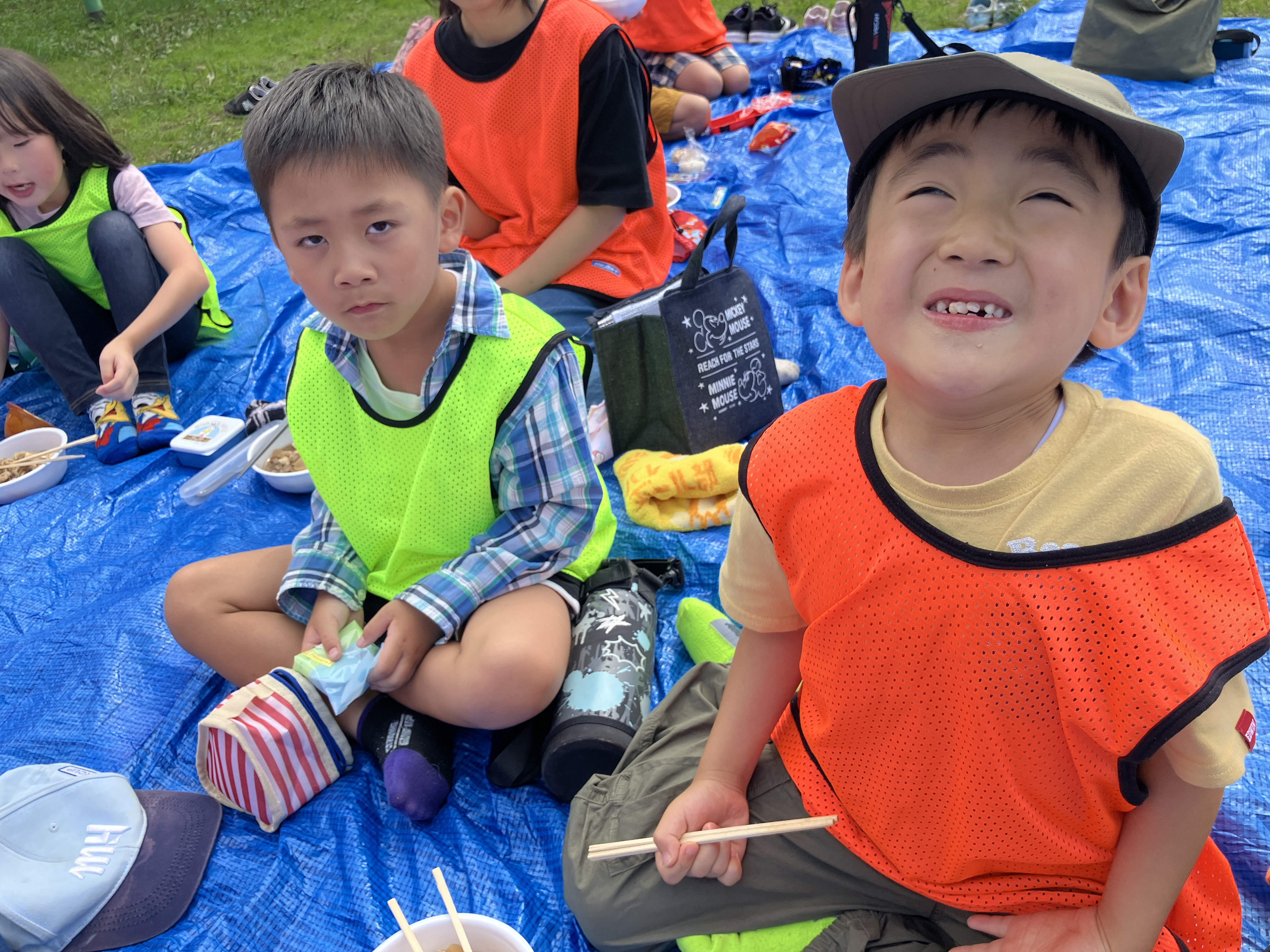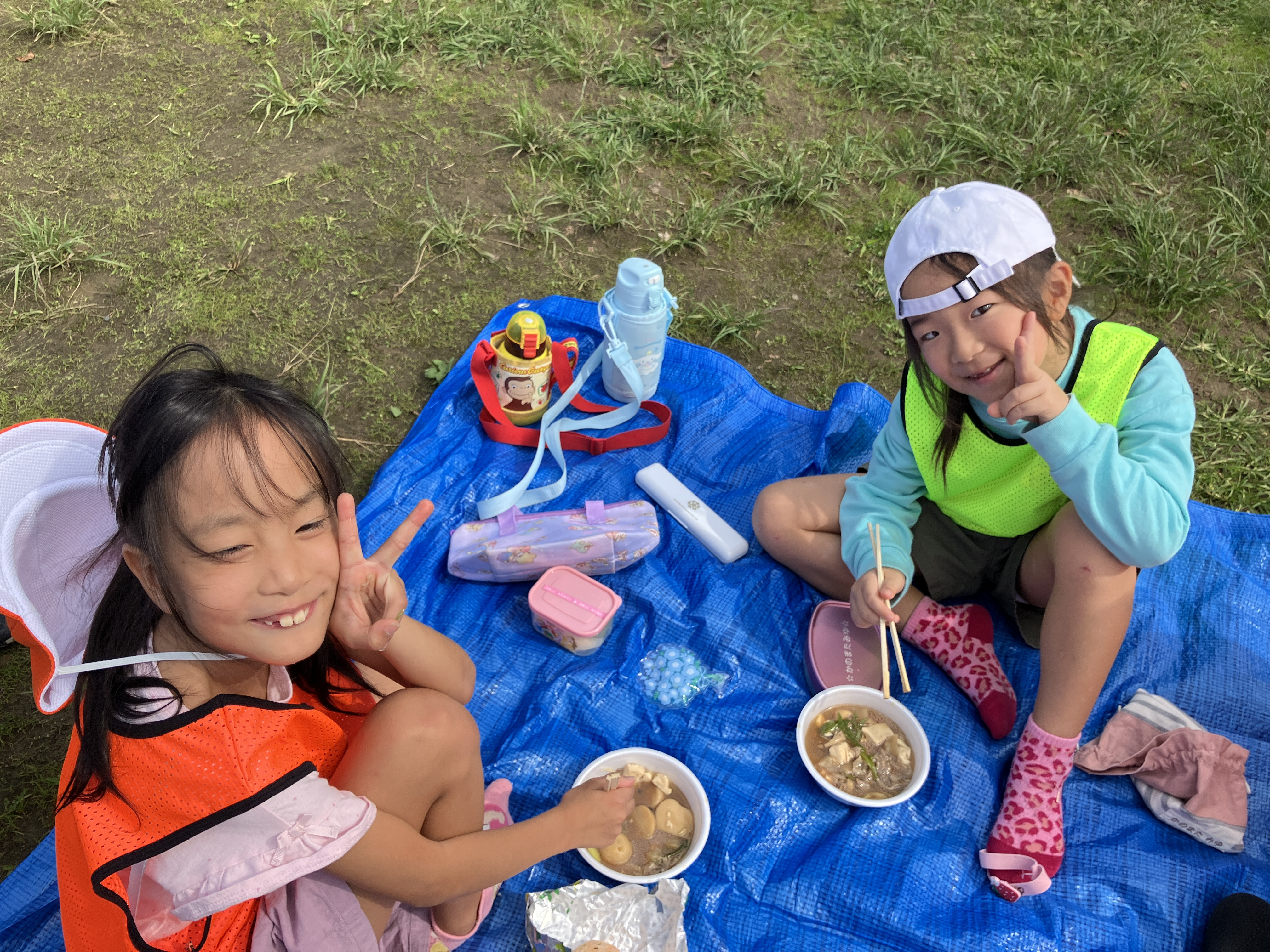 お昼は4施設集まり、秀公園にブルーシートを敷き、芋煮会を行いました😄