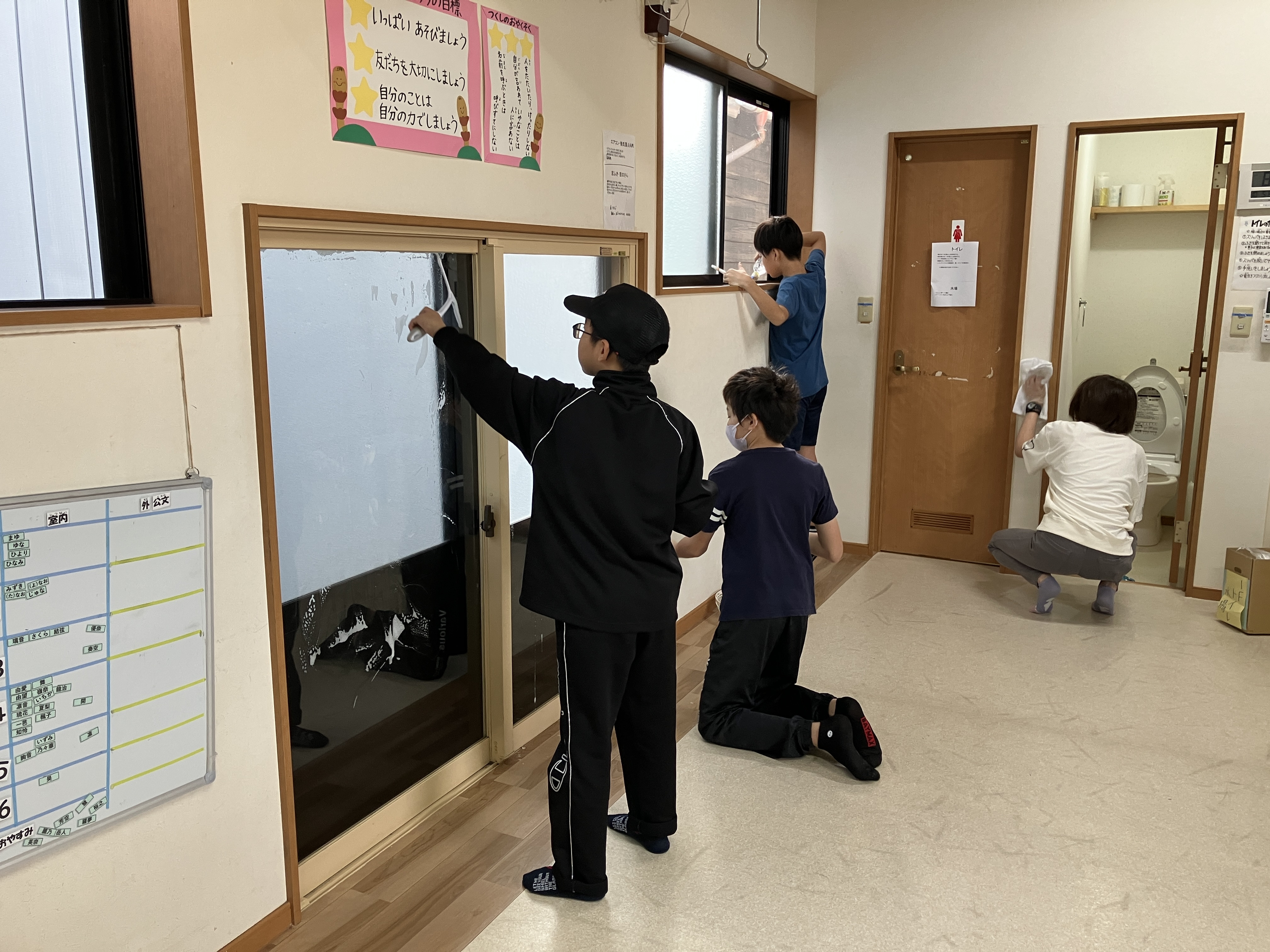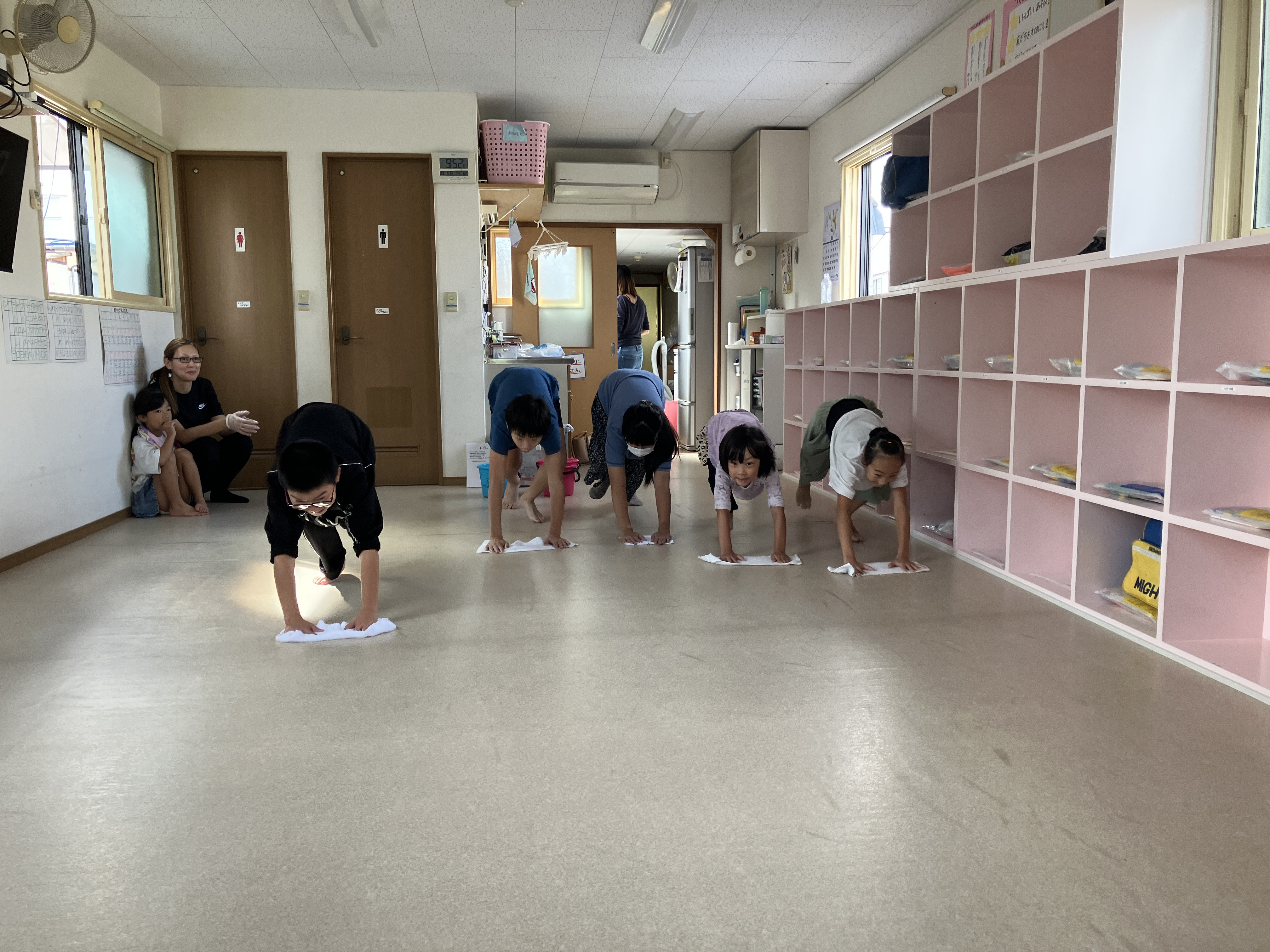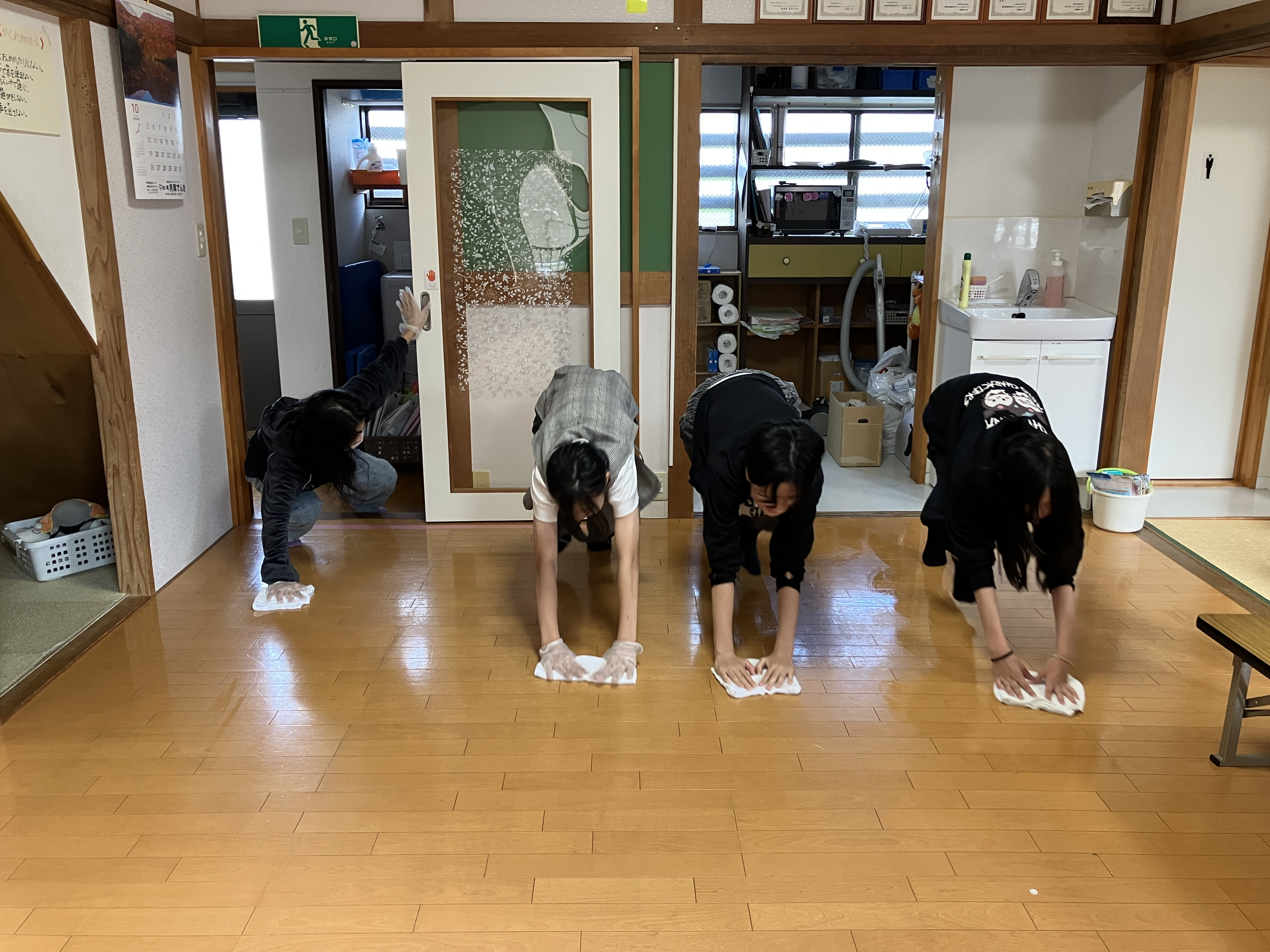 みんなで一斉に雑巾がけ💦