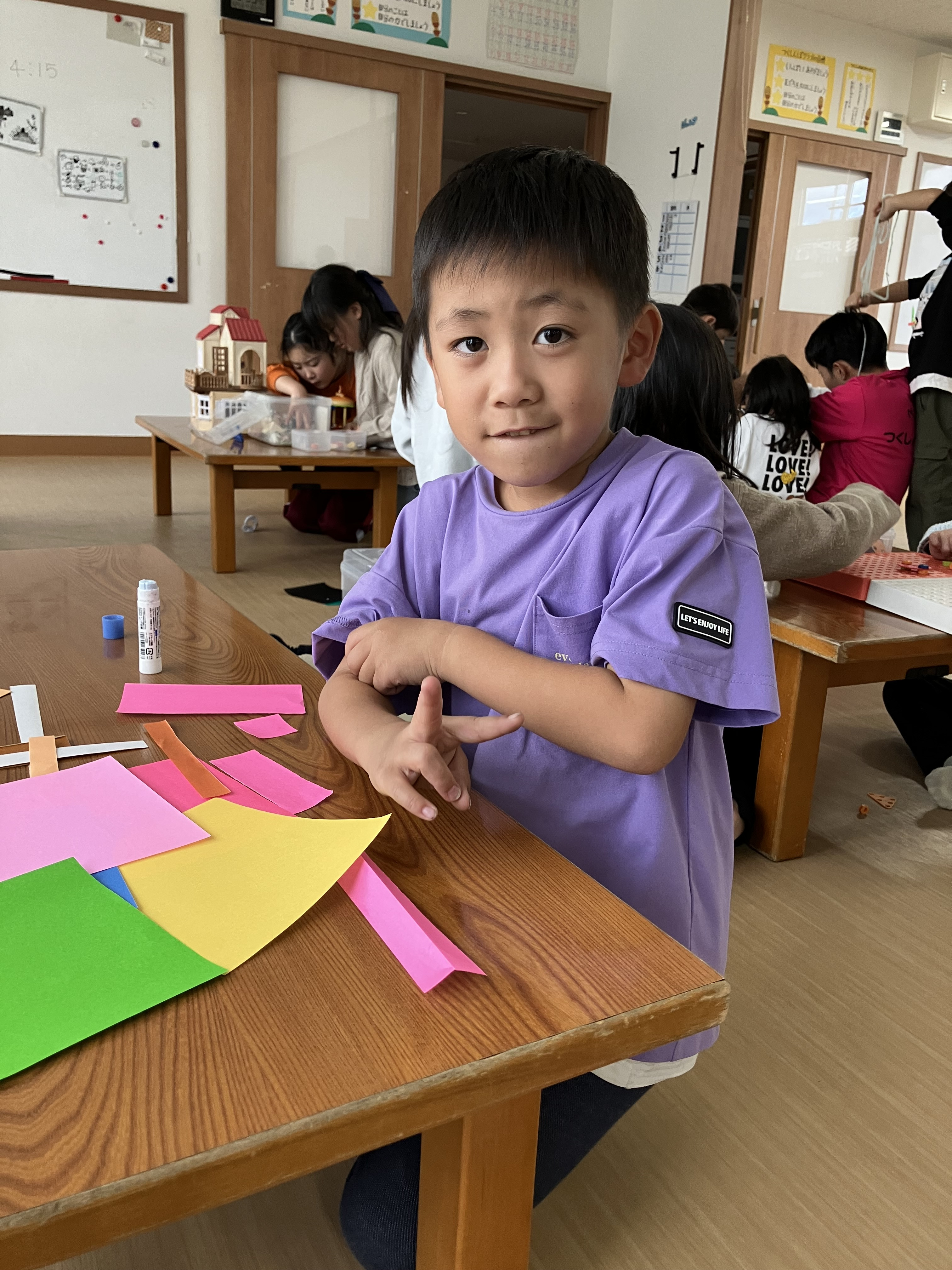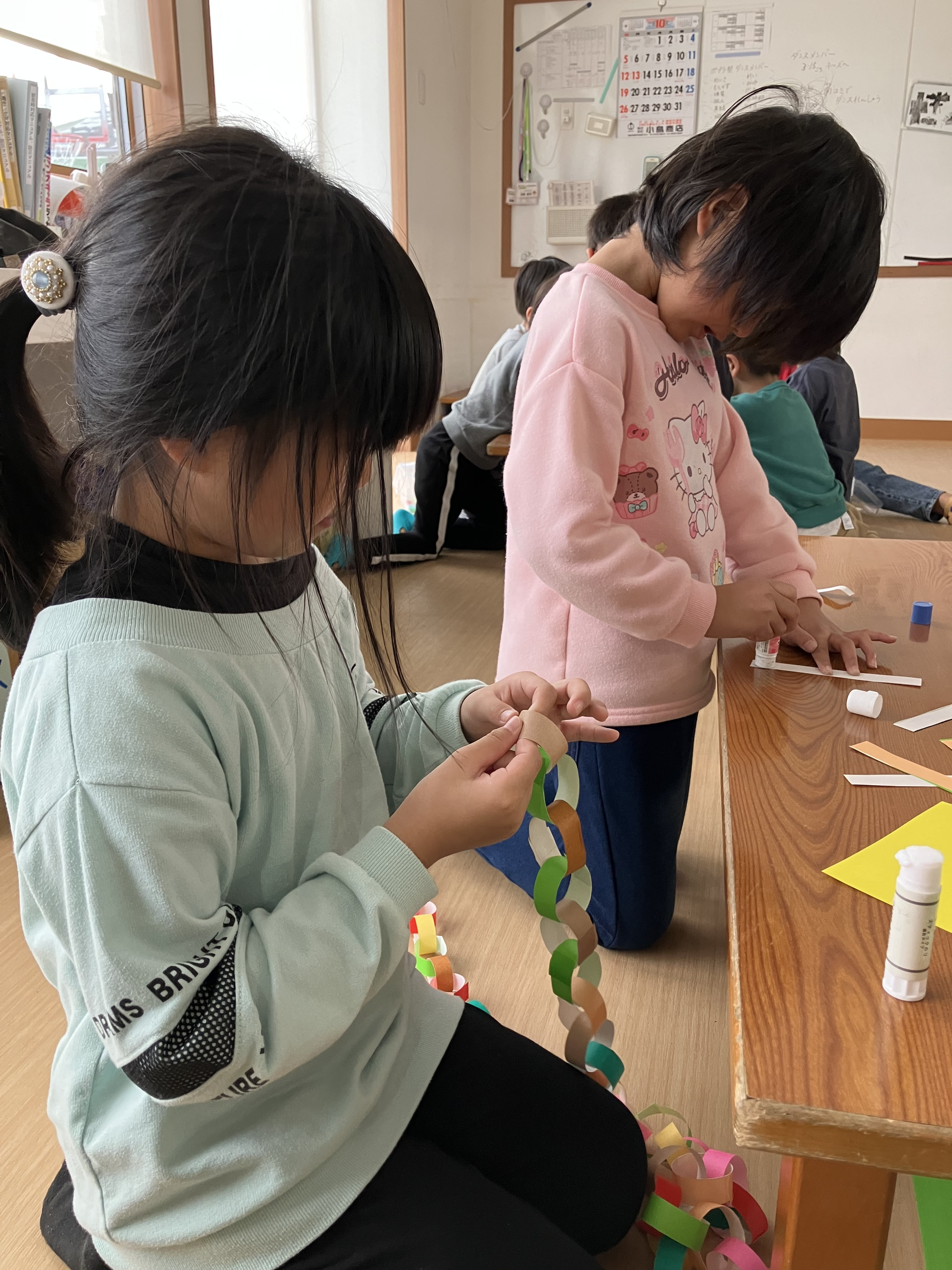 秋まつりのリングづくり🔴🟠🔵🟡🟣🟢を手伝ってくれました