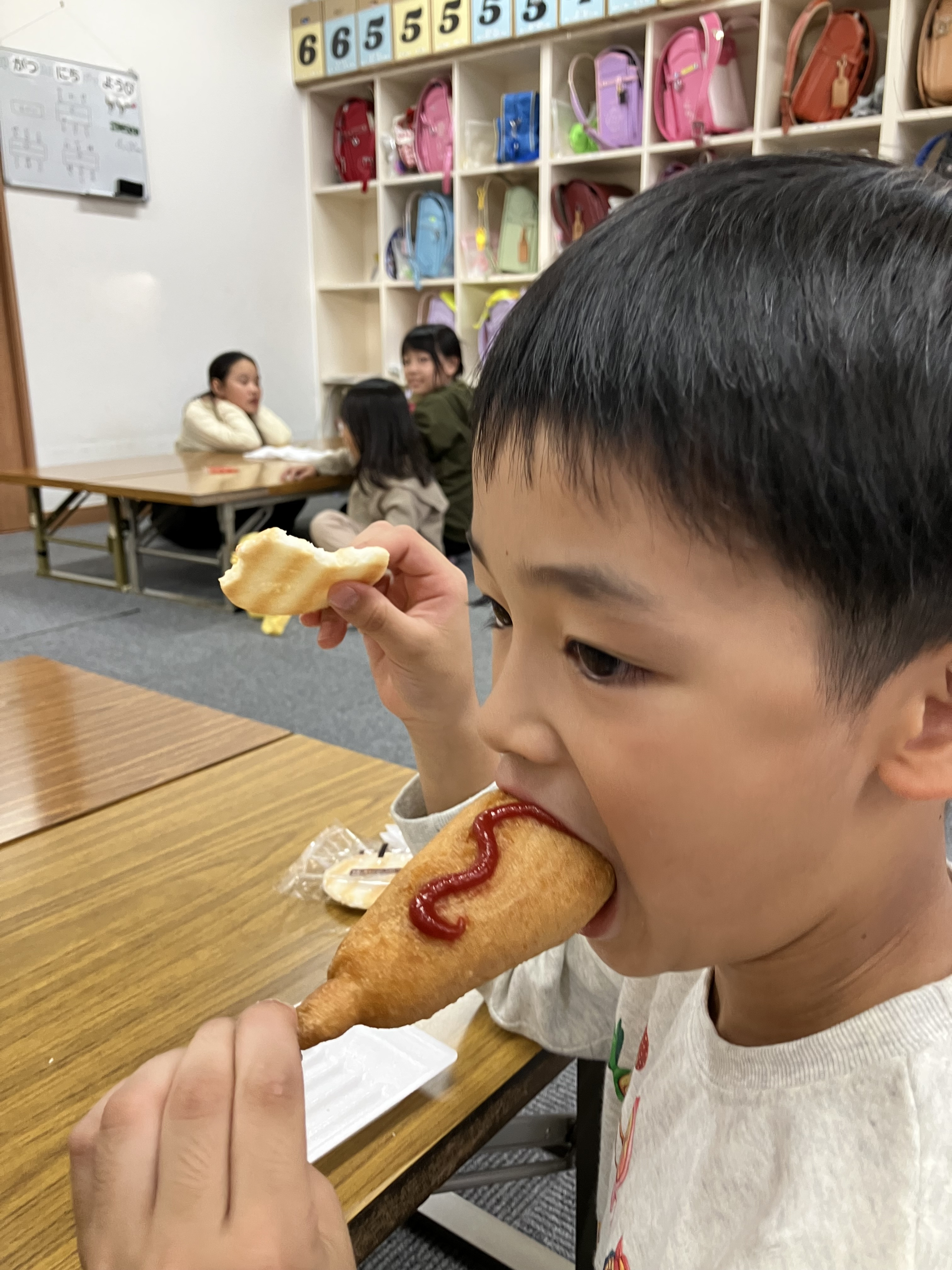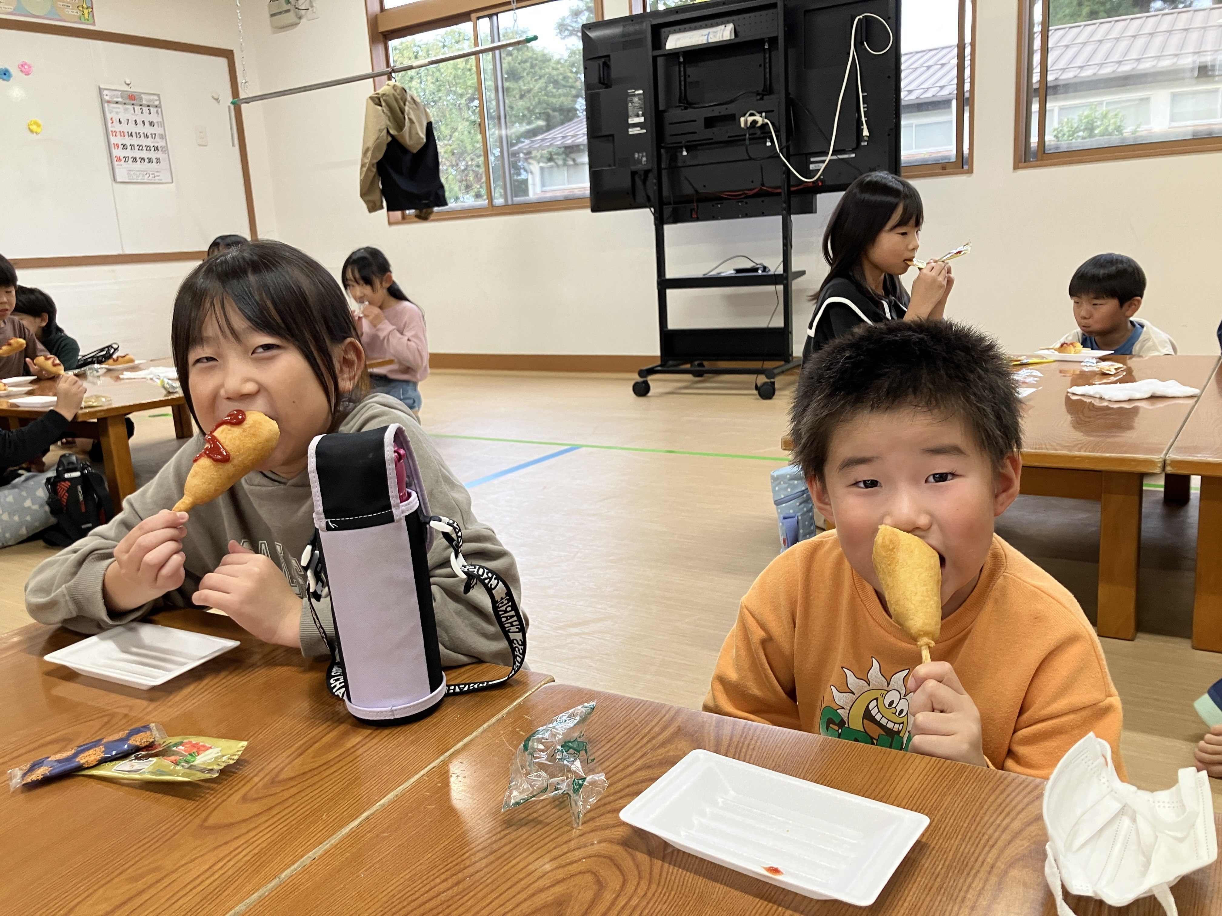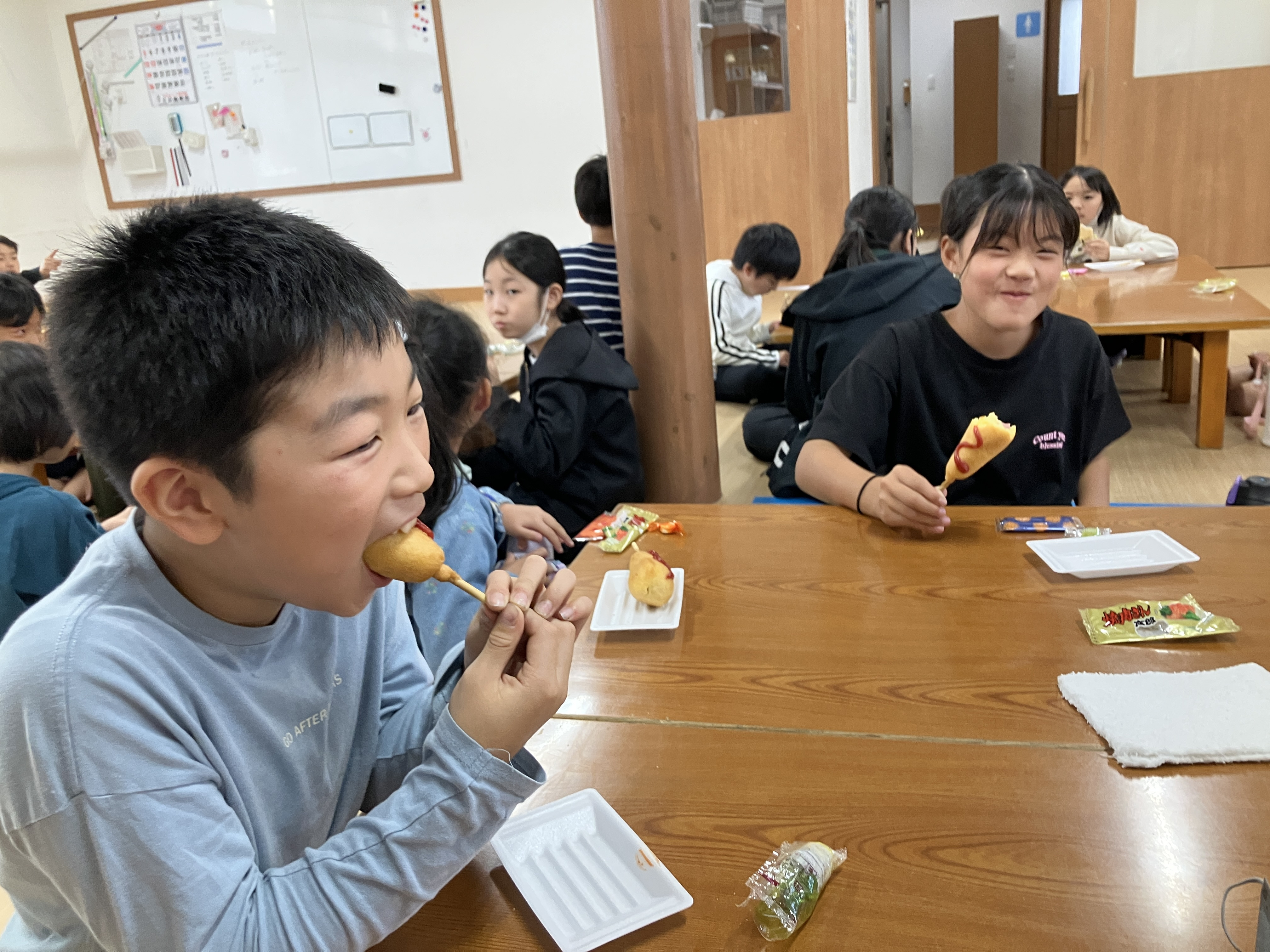 10月からあったかおやつが始まりました✨アメリカンドッグ、温かくておいしいね~😋