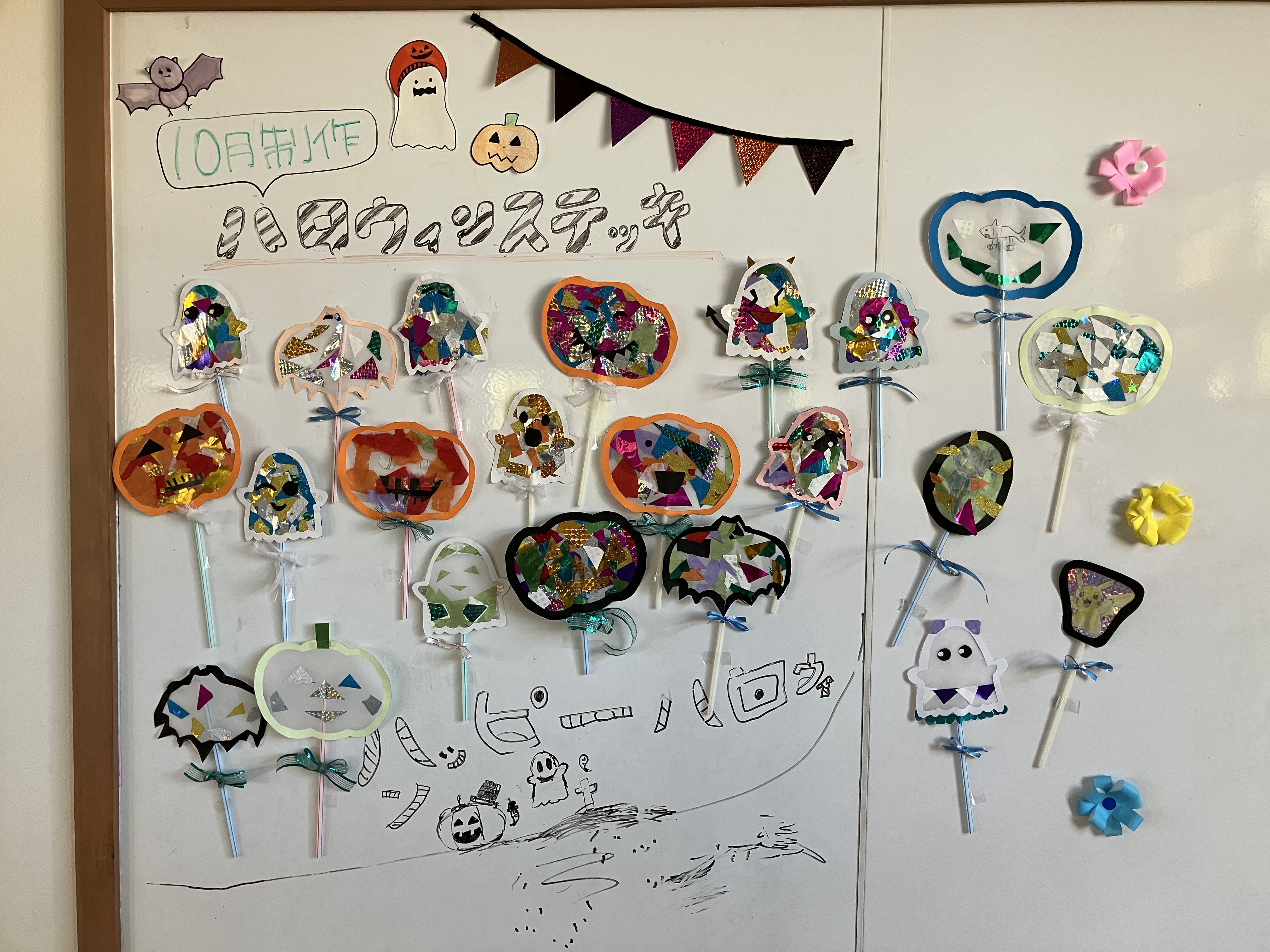 10月は、キラキラの折り紙を使って、ハロウィンにぴったりなかわいいステッキを作りました✨✨