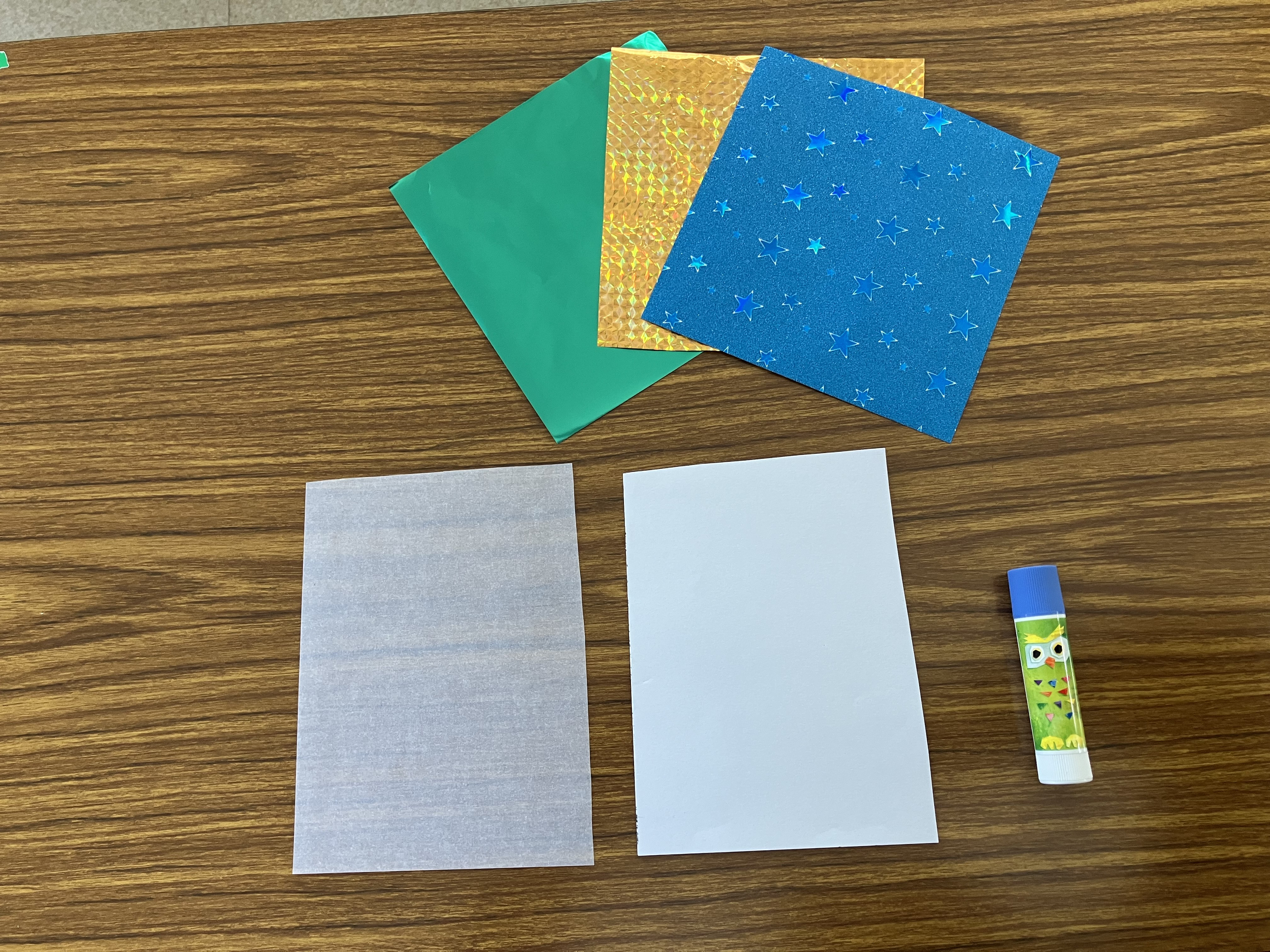 ☆折り紙をカラーセロファンに変えれば、ステンドグラス風に仕上がります☆