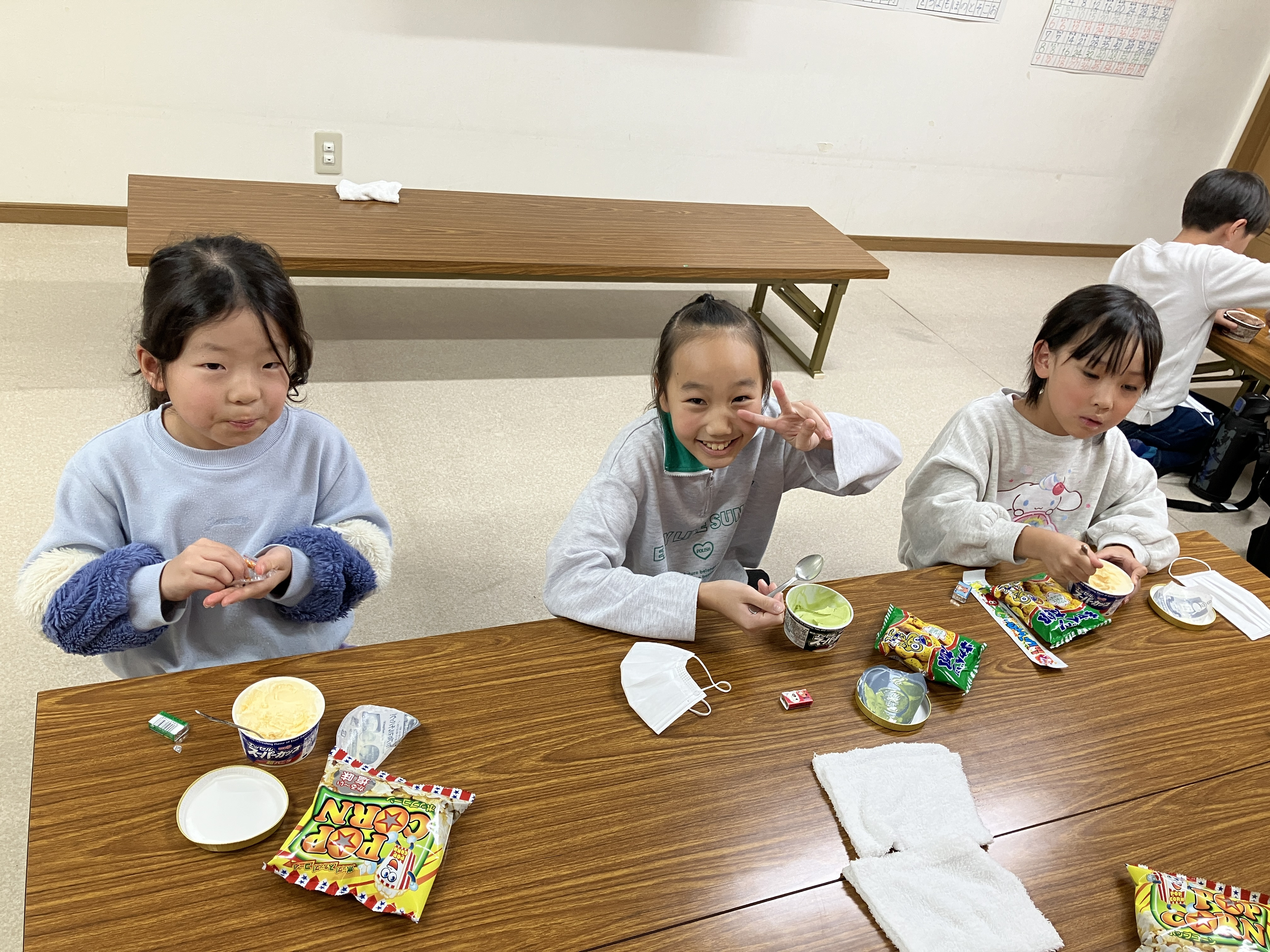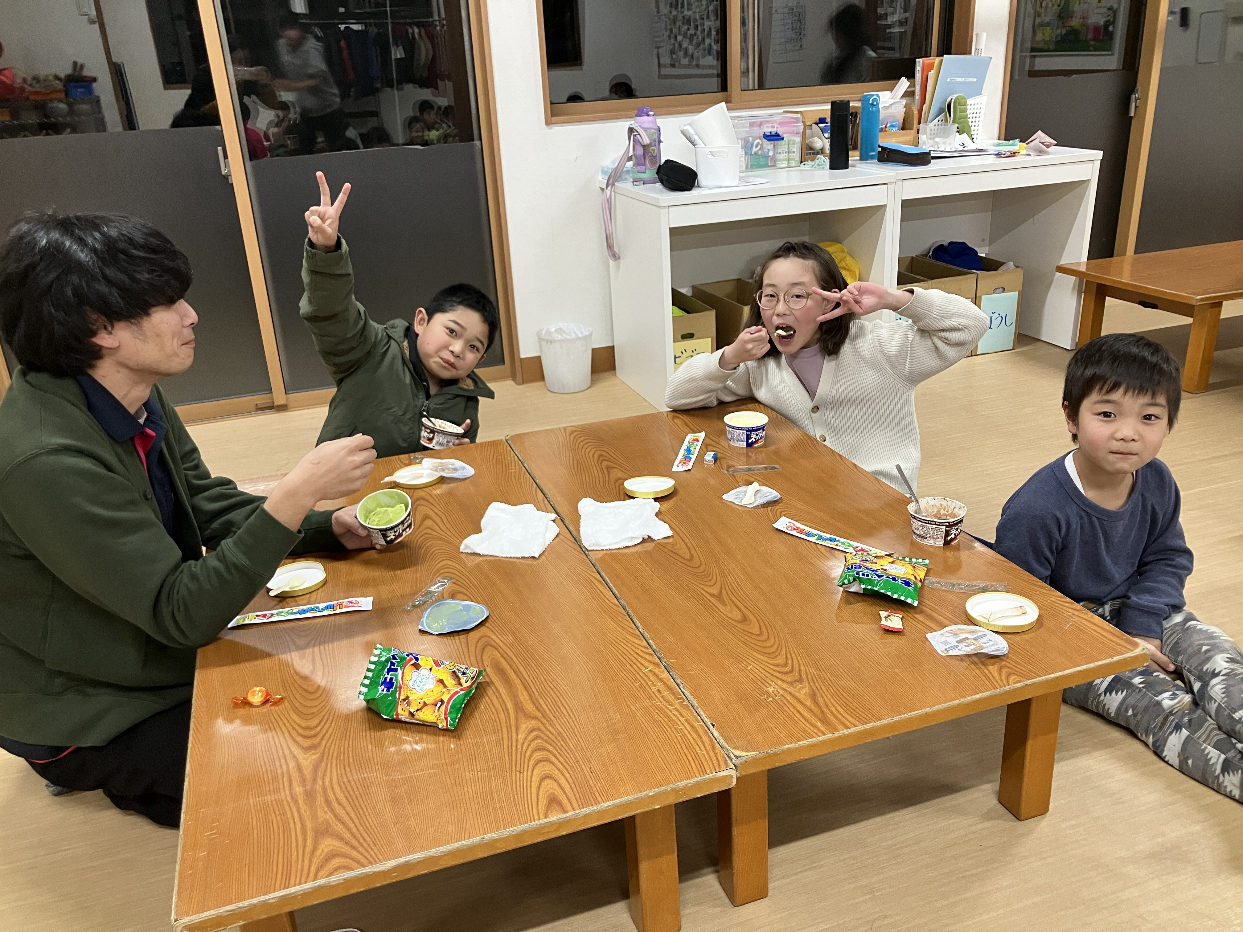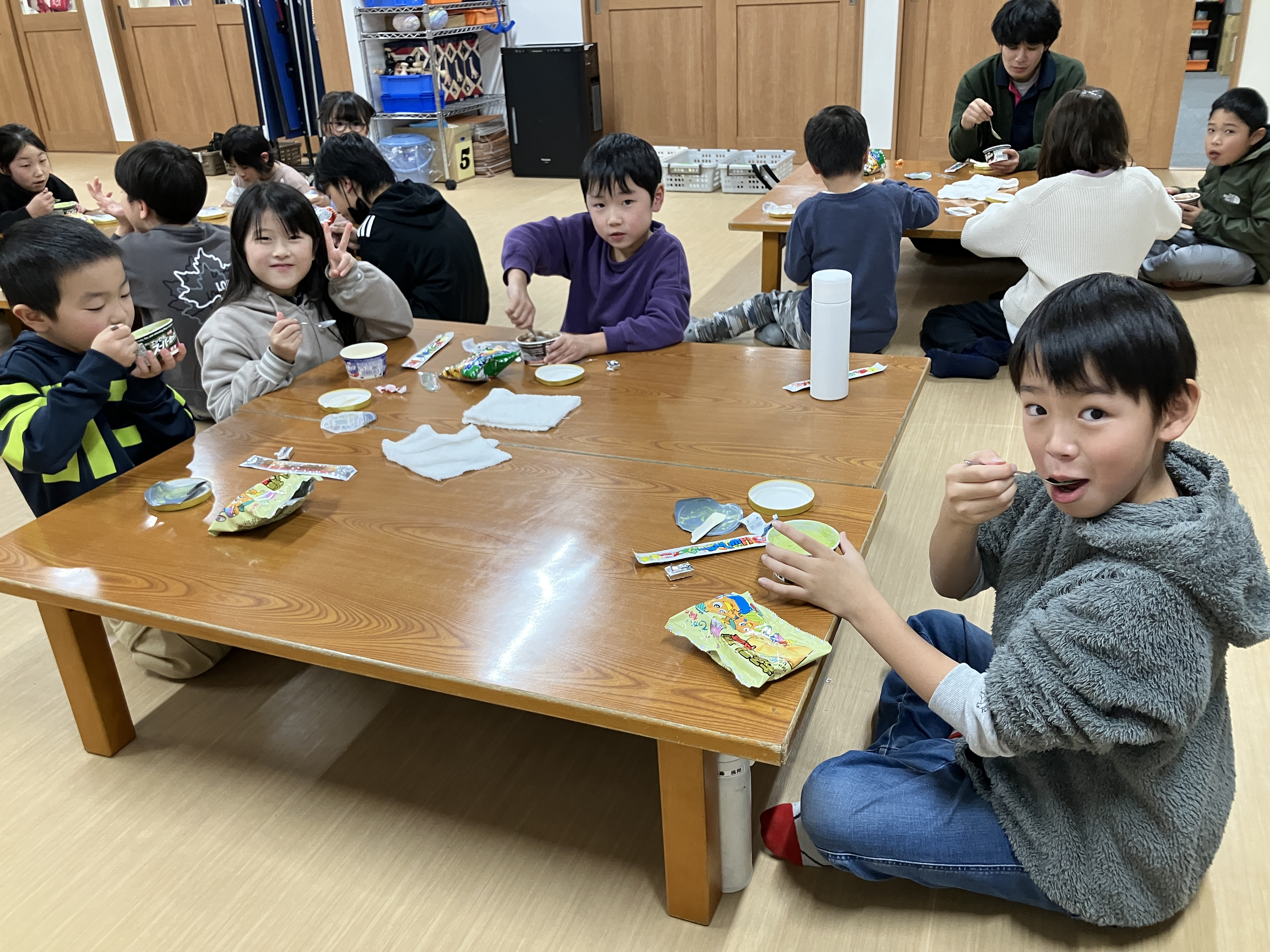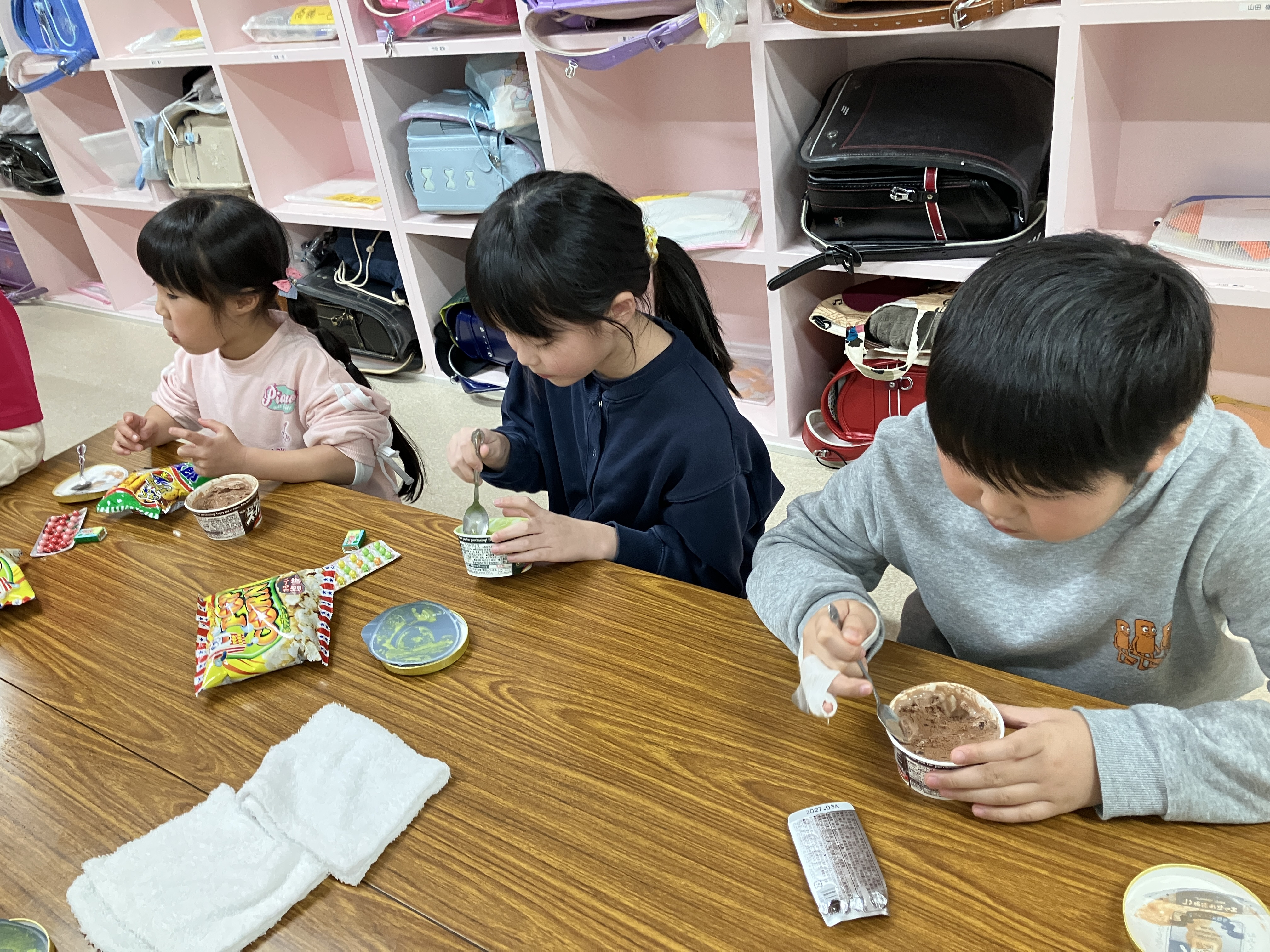 アイスでしたが、盛り上がってアツアツに体温が上がり切った子ども達には丁度良いおやつでした(笑)