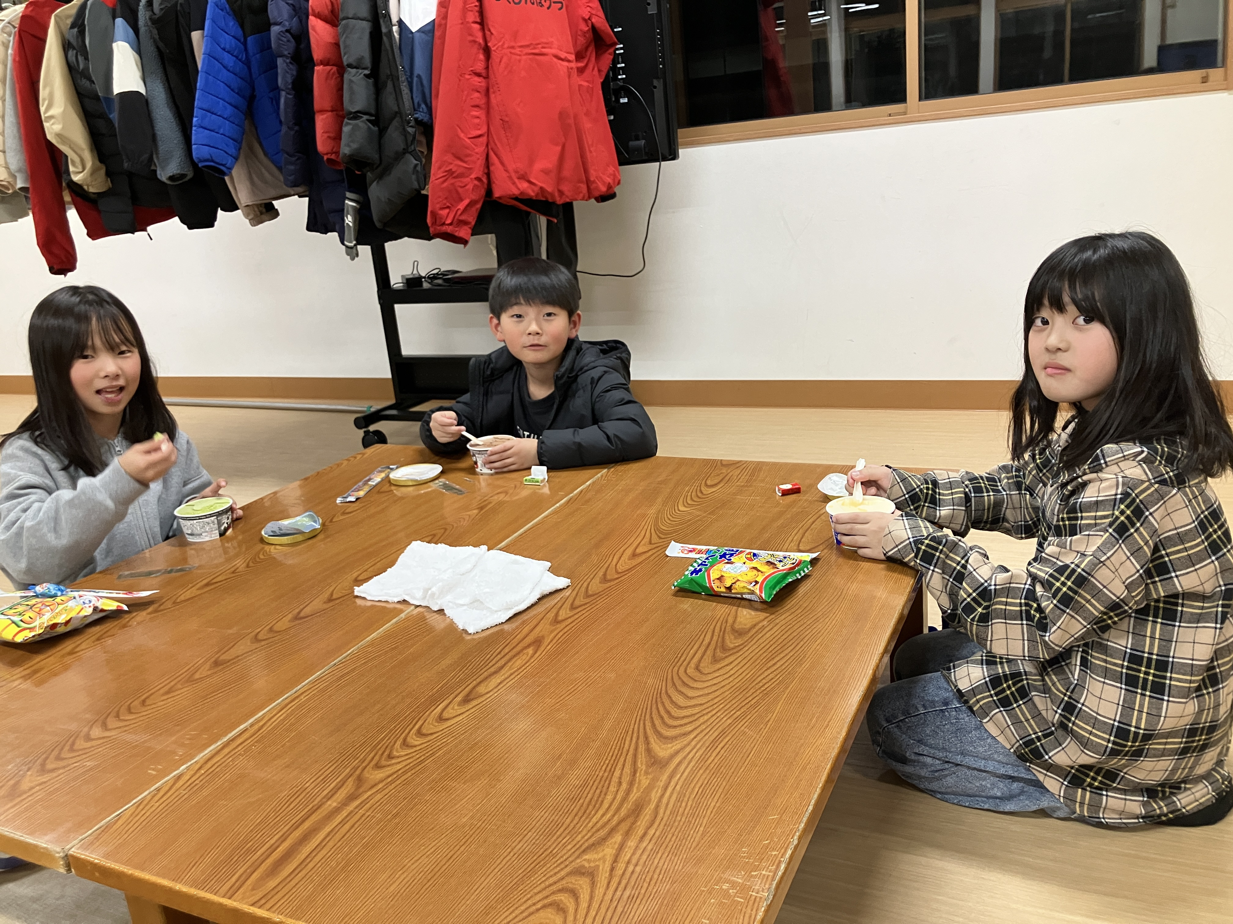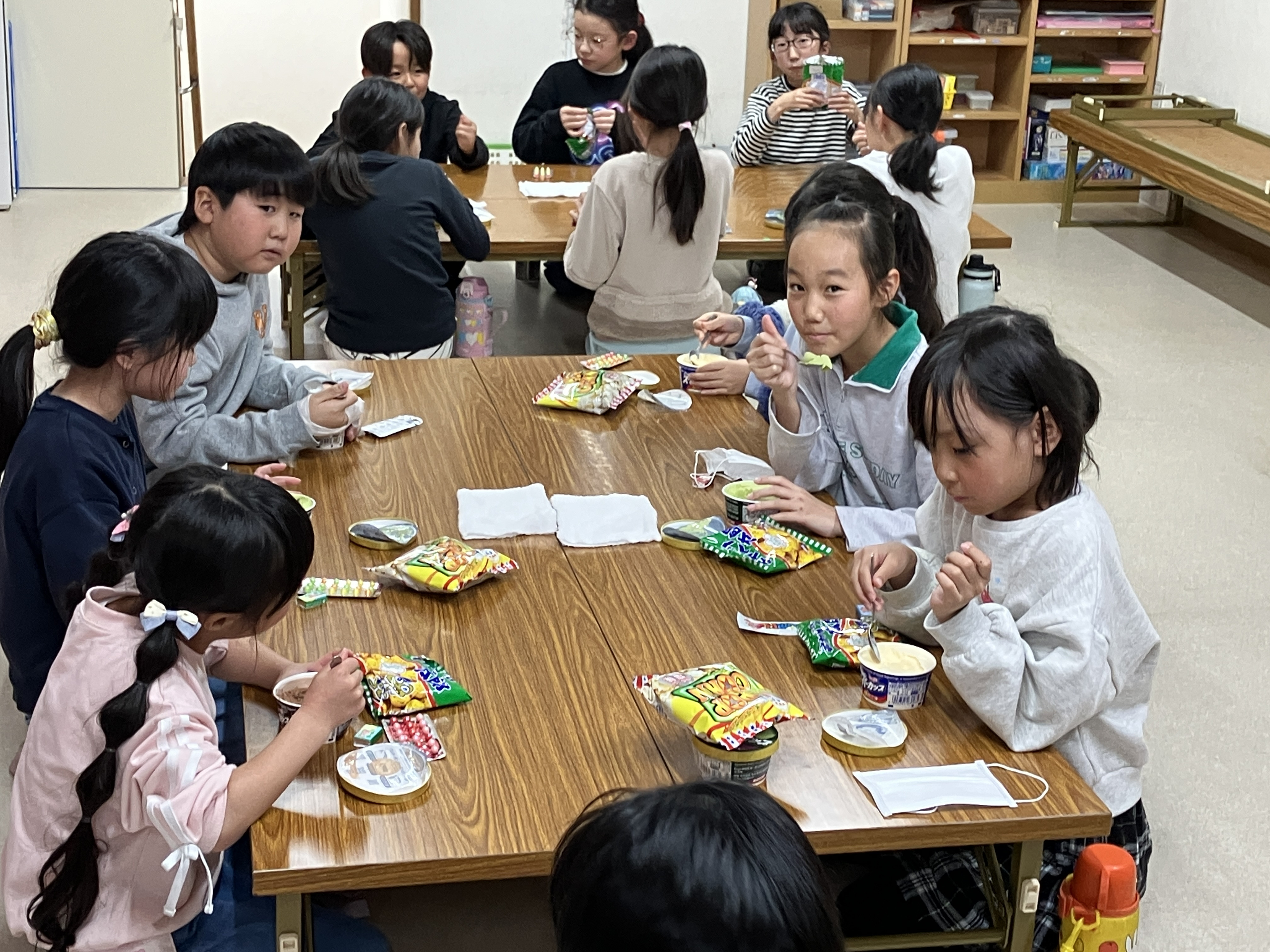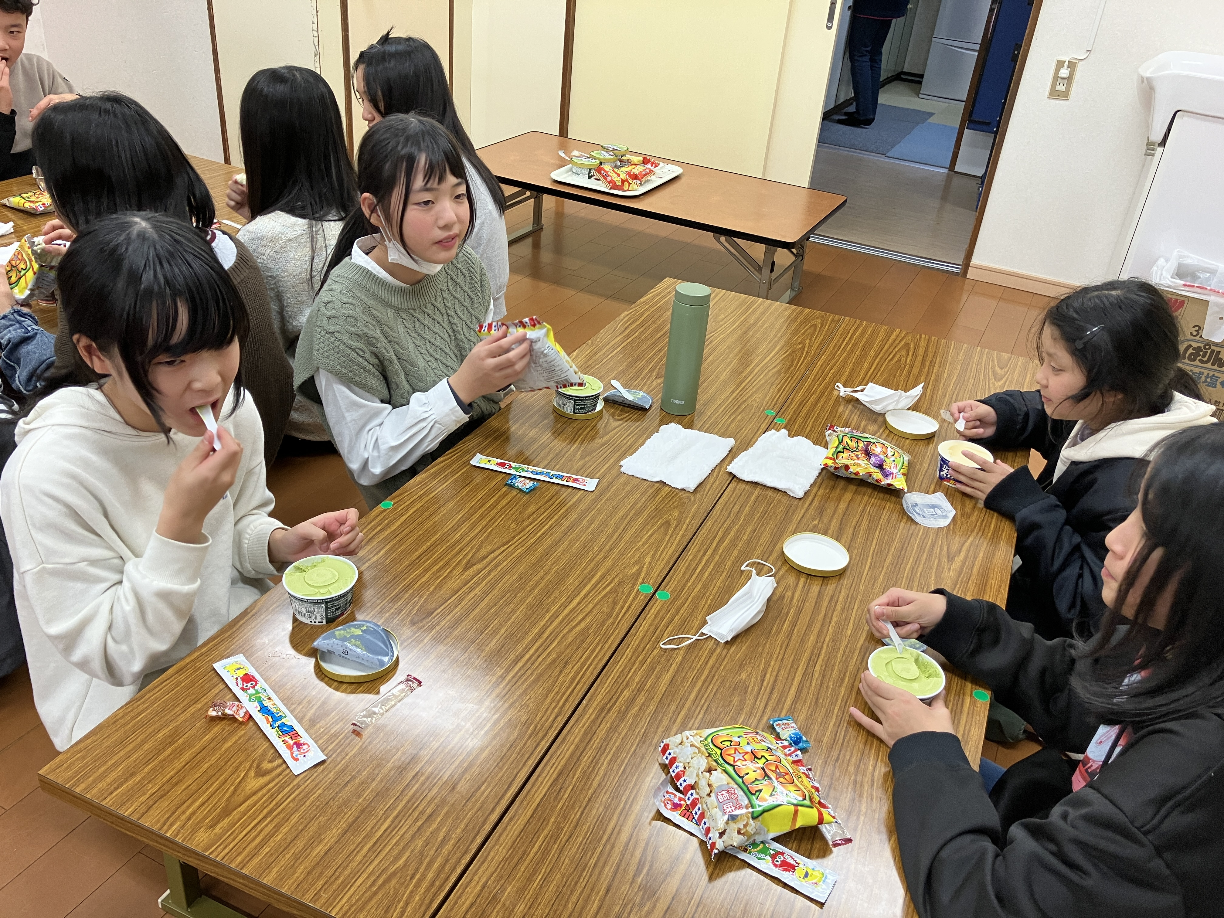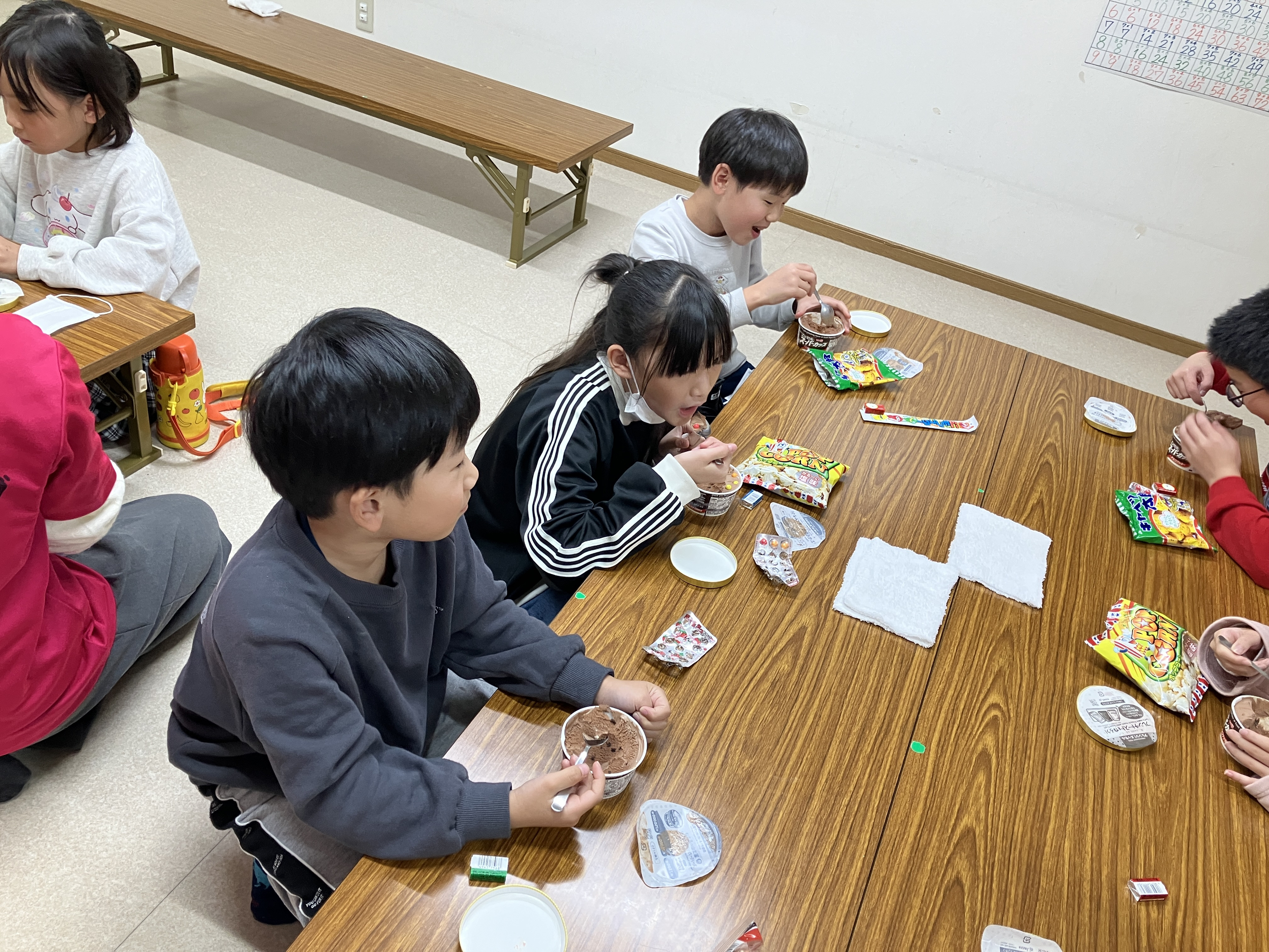 アイスでしたが、盛り上がってアツアツに体温が上がり切った子ども達には丁度良いおやつでした(笑)