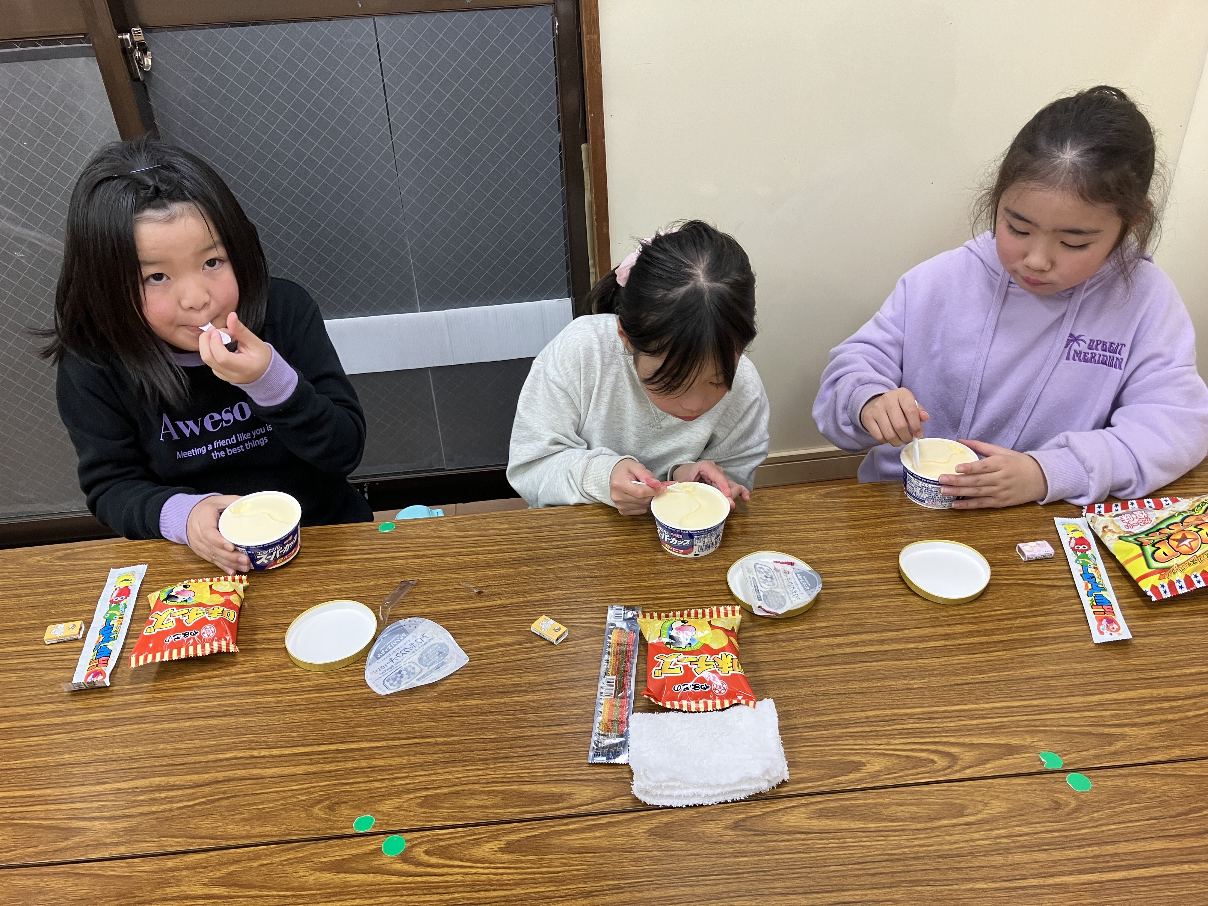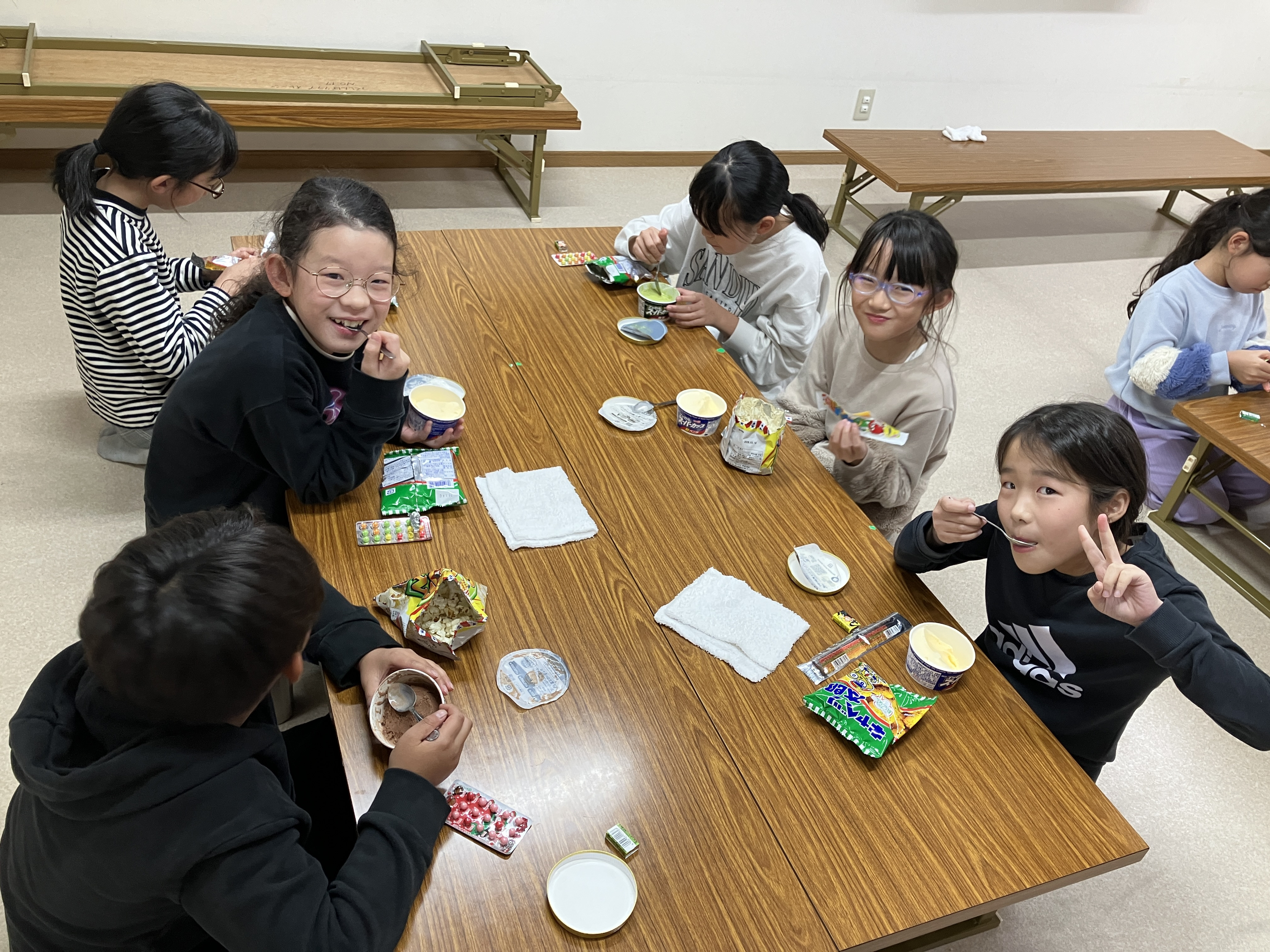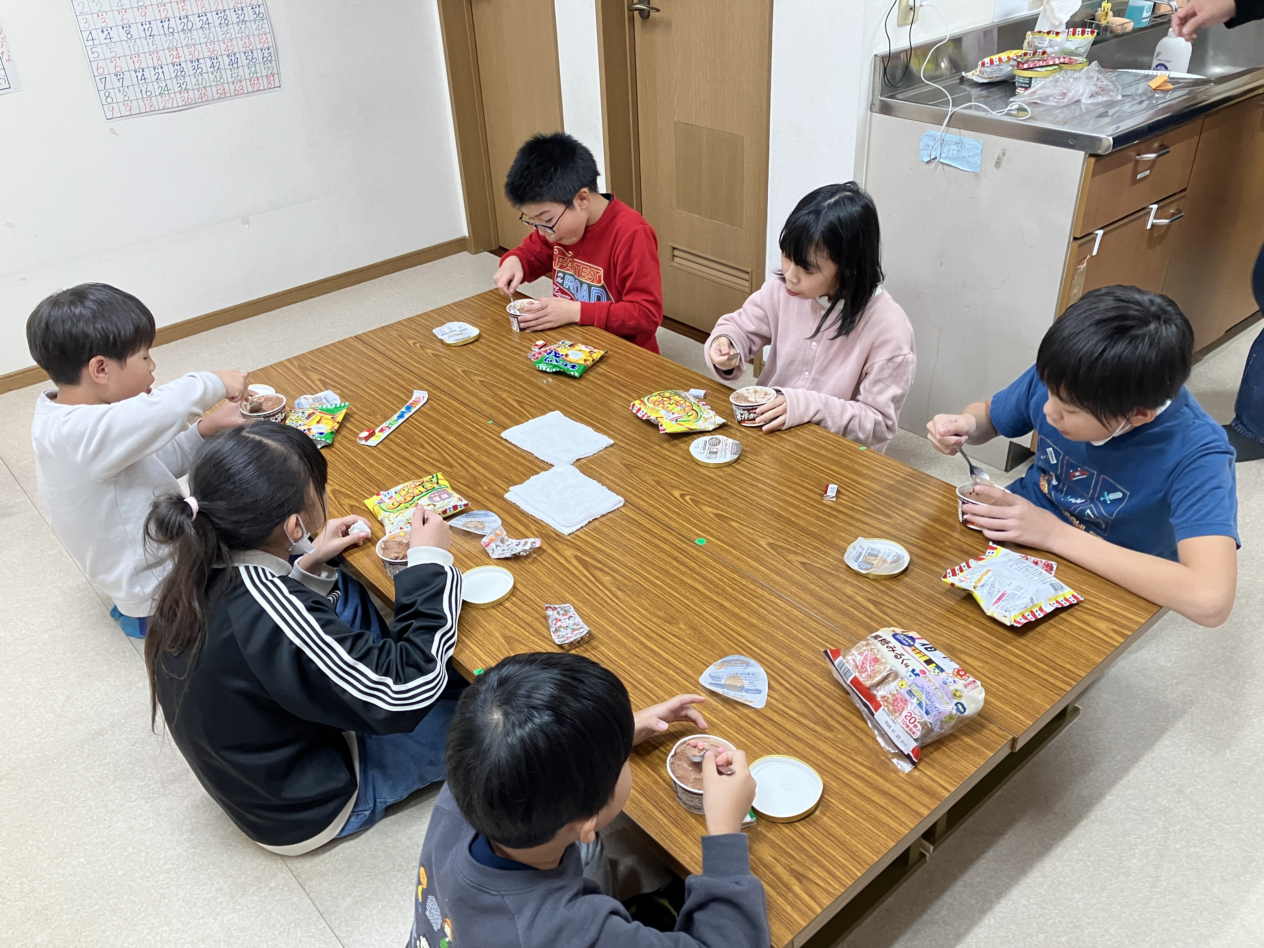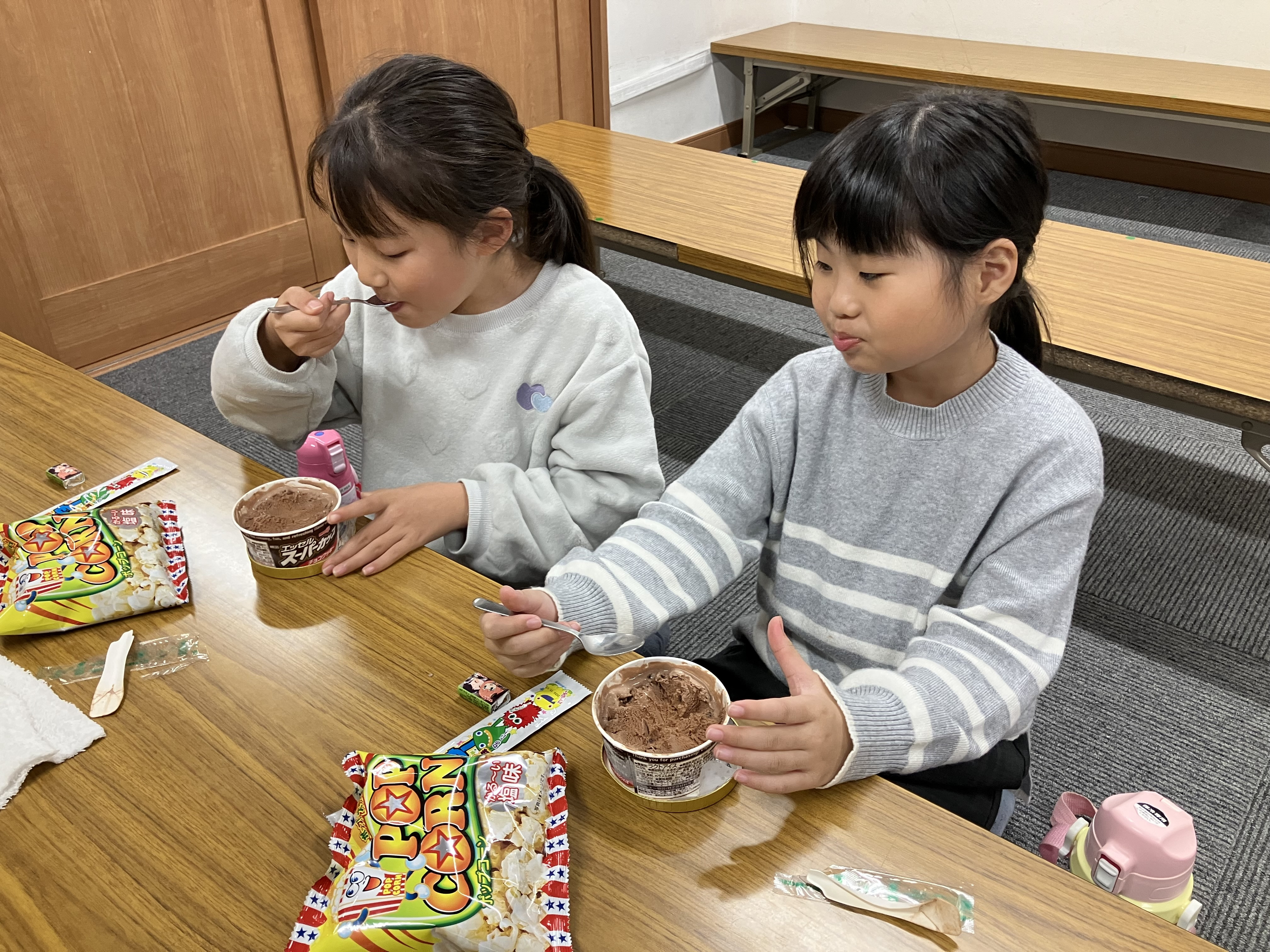 アイスでしたが、盛り上がってアツアツに体温が上がり切った子ども達には丁度良いおやつでした(笑)
