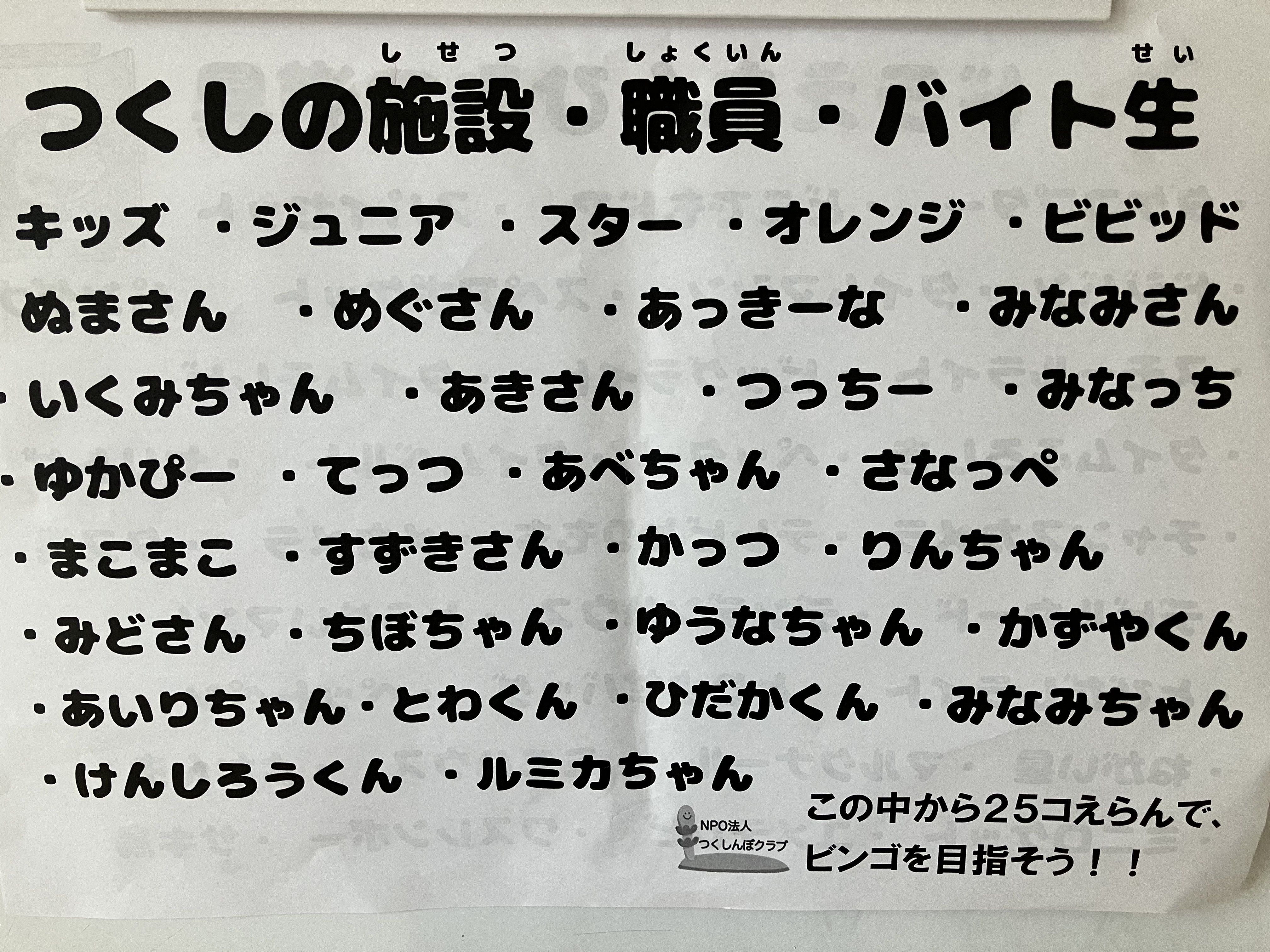 一回戦は、つくしの施設・職員・バイト生👫