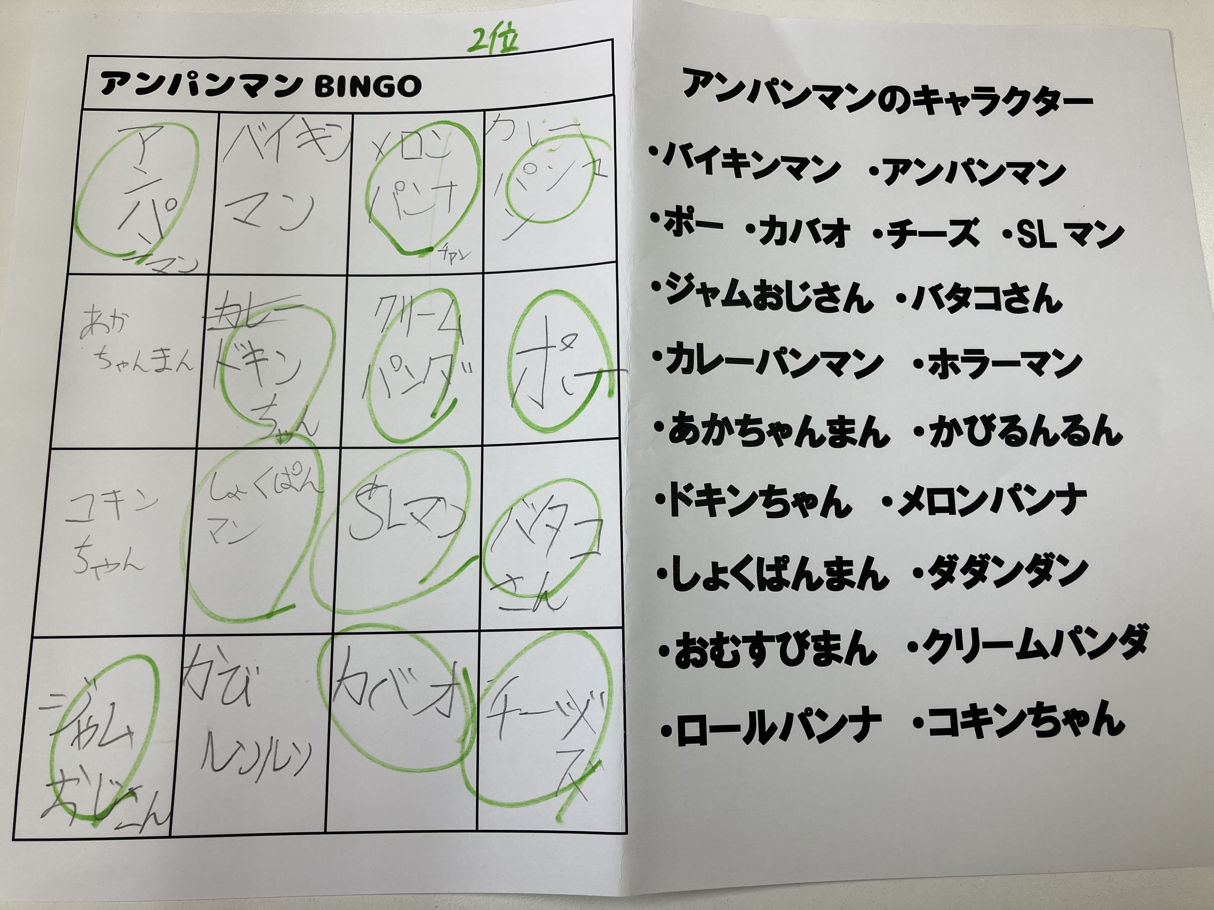 EXTRA問題として、アンパンマンのビンゴにもチャレンジ😏