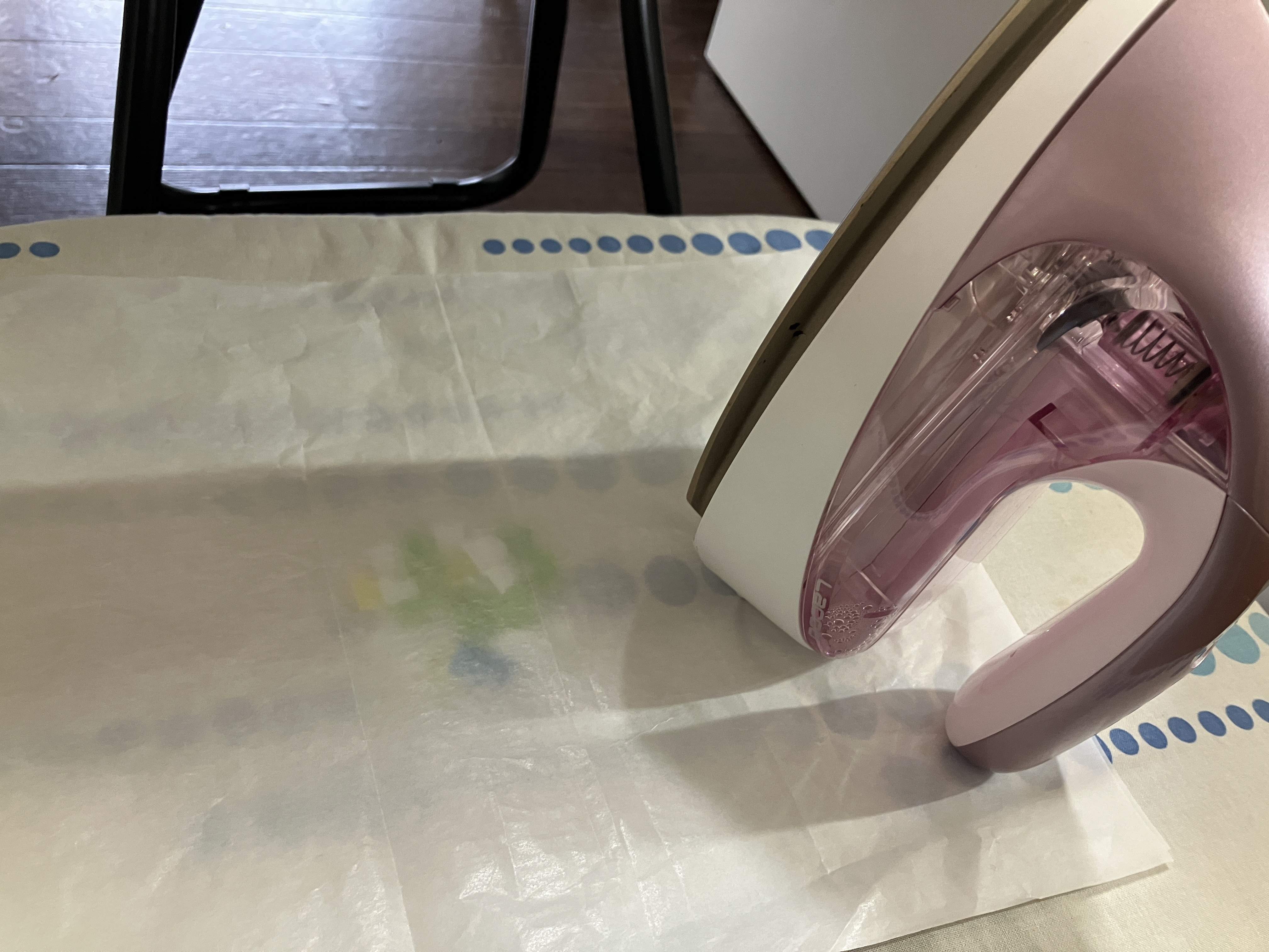 クッキングシートに挟んでアイロンをかけます😄この時、押し付けずに優しくかけるといいです