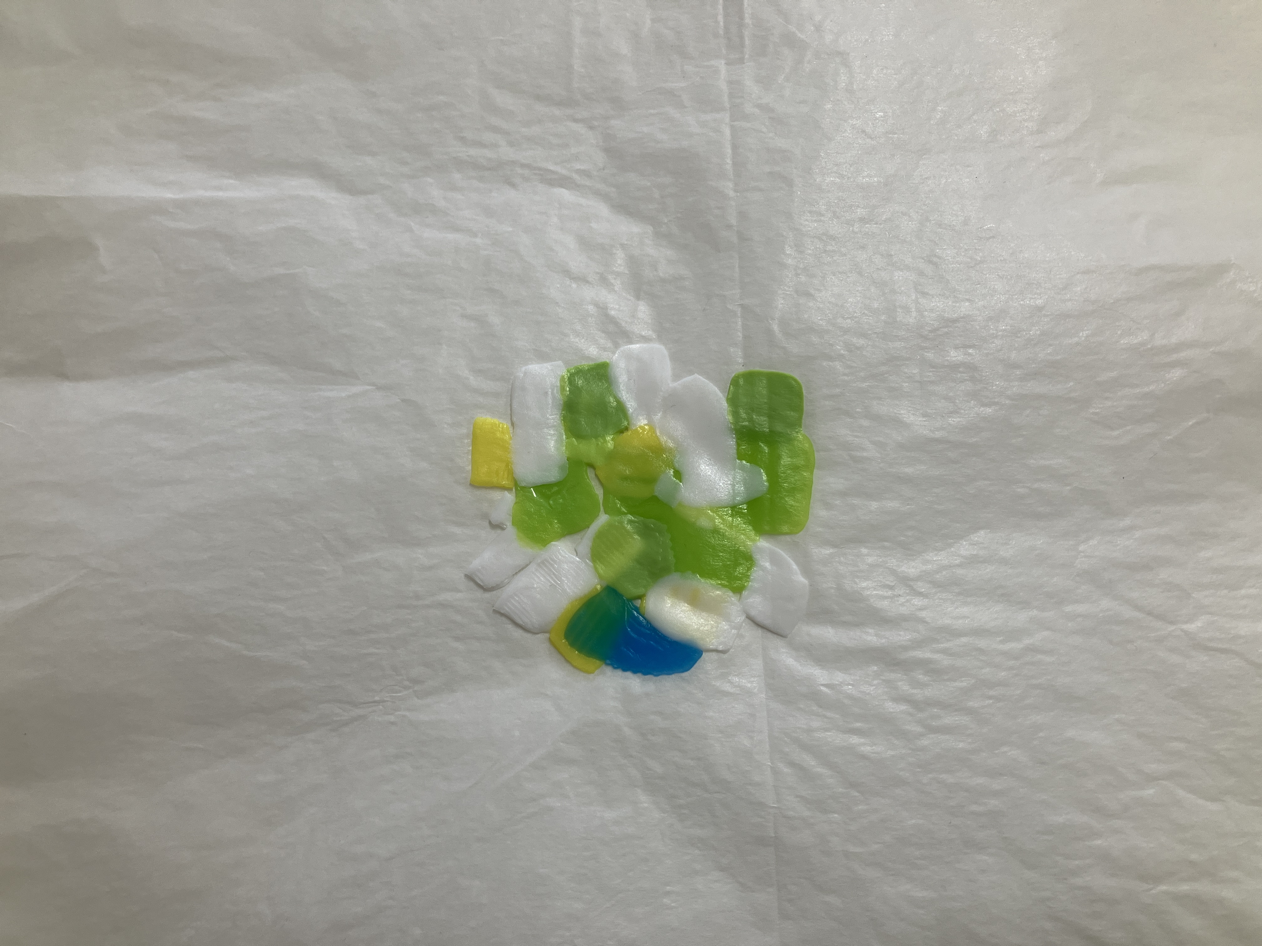 集めたら、クッキングシートではさみ、アイロンをかけます✨✨アイロンを押し当てながら外側に伸ばす感じでかけるといいです