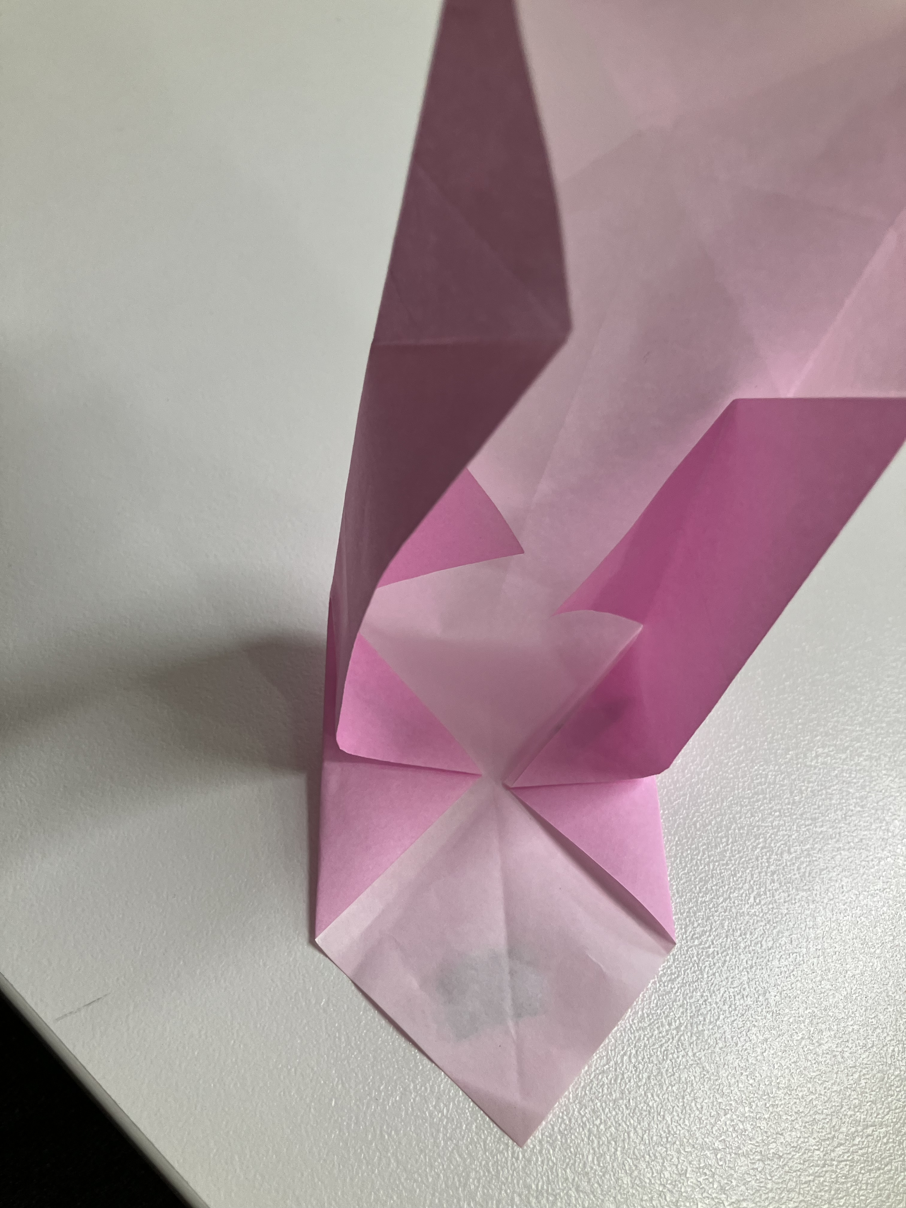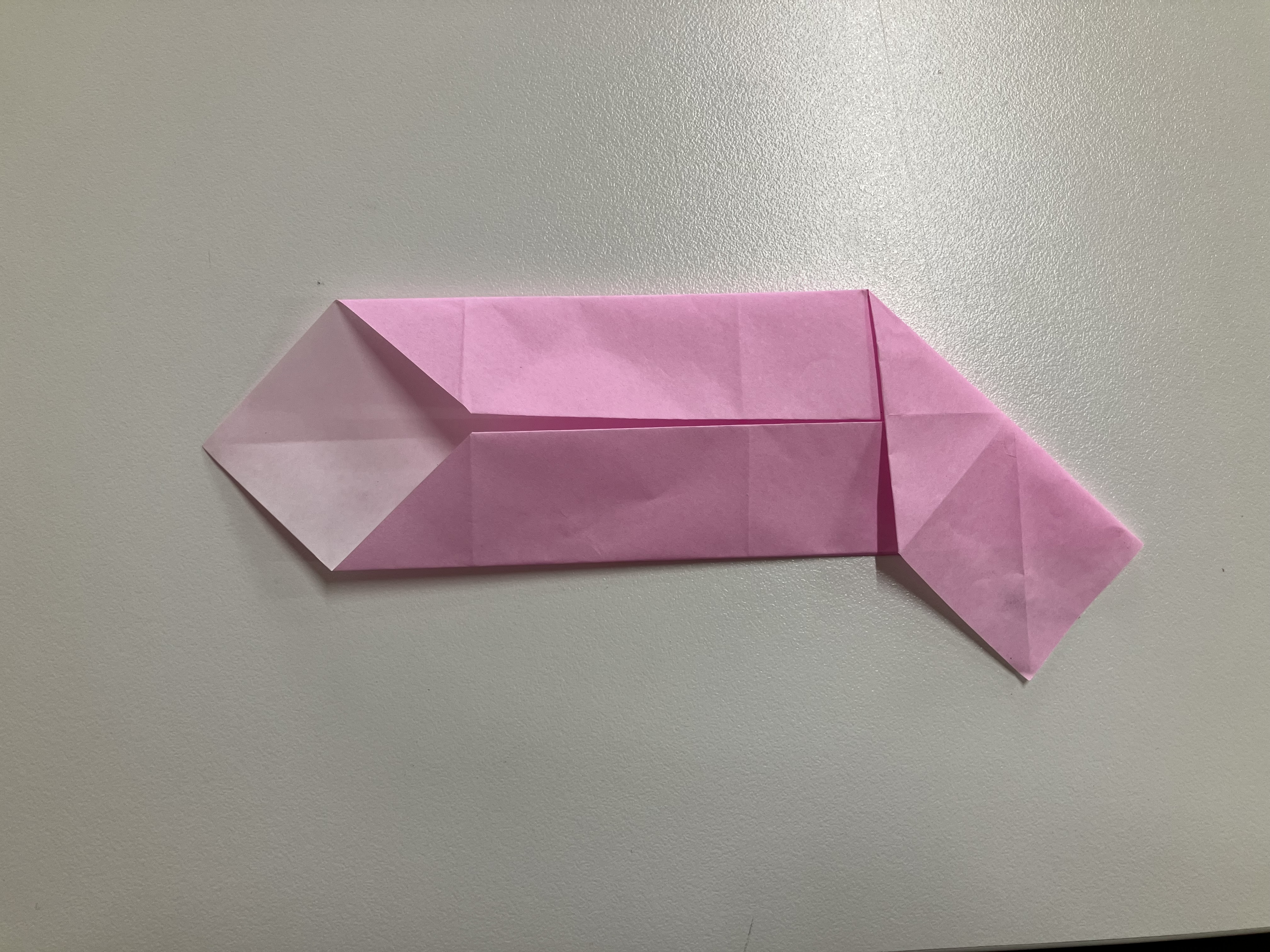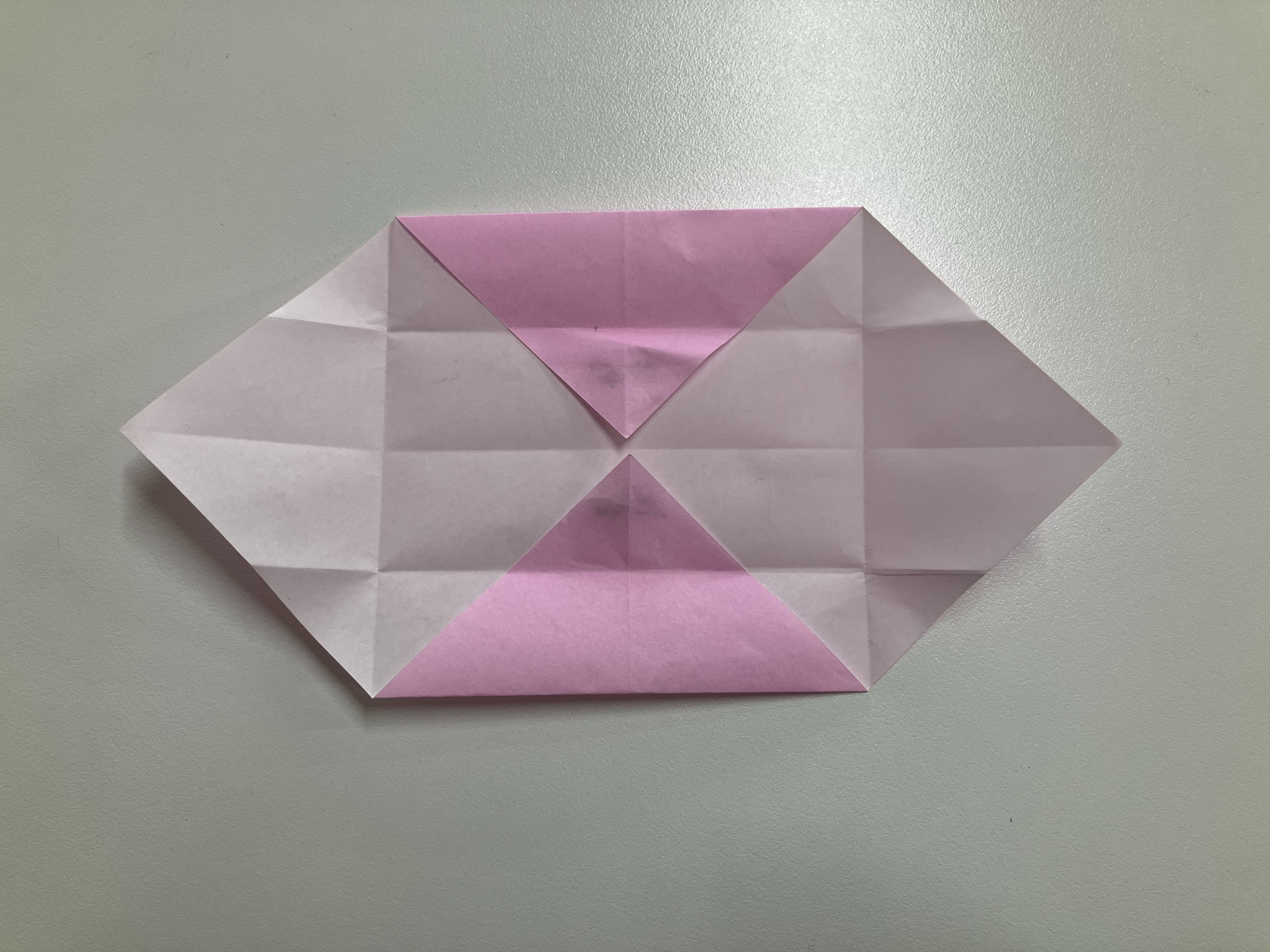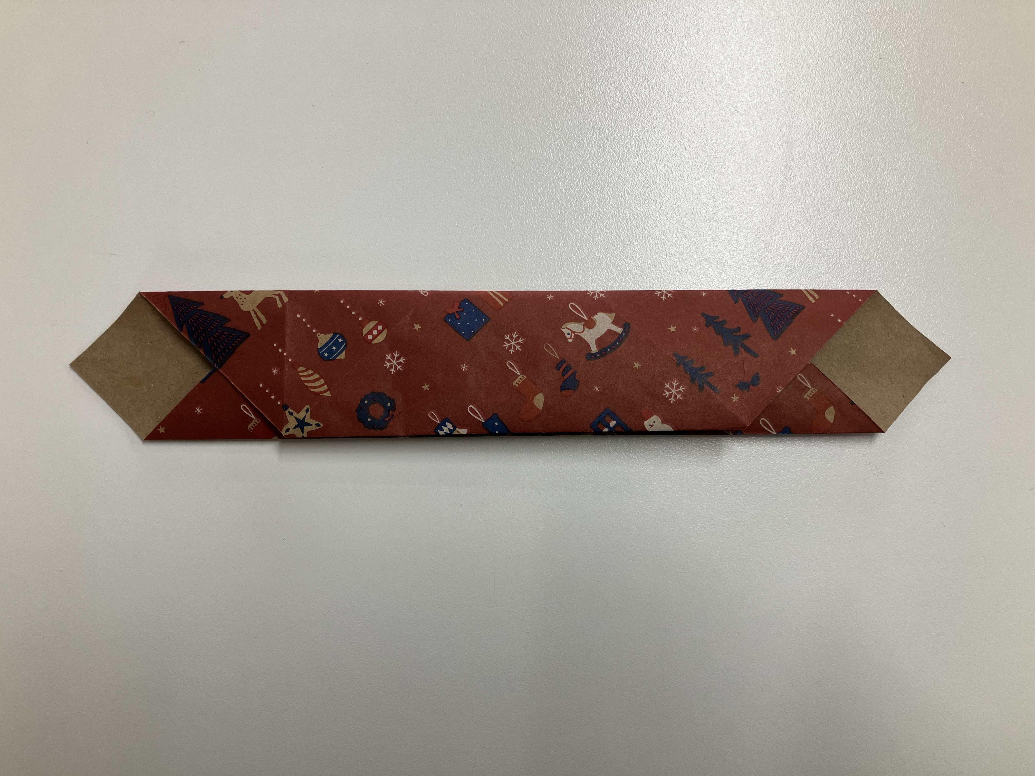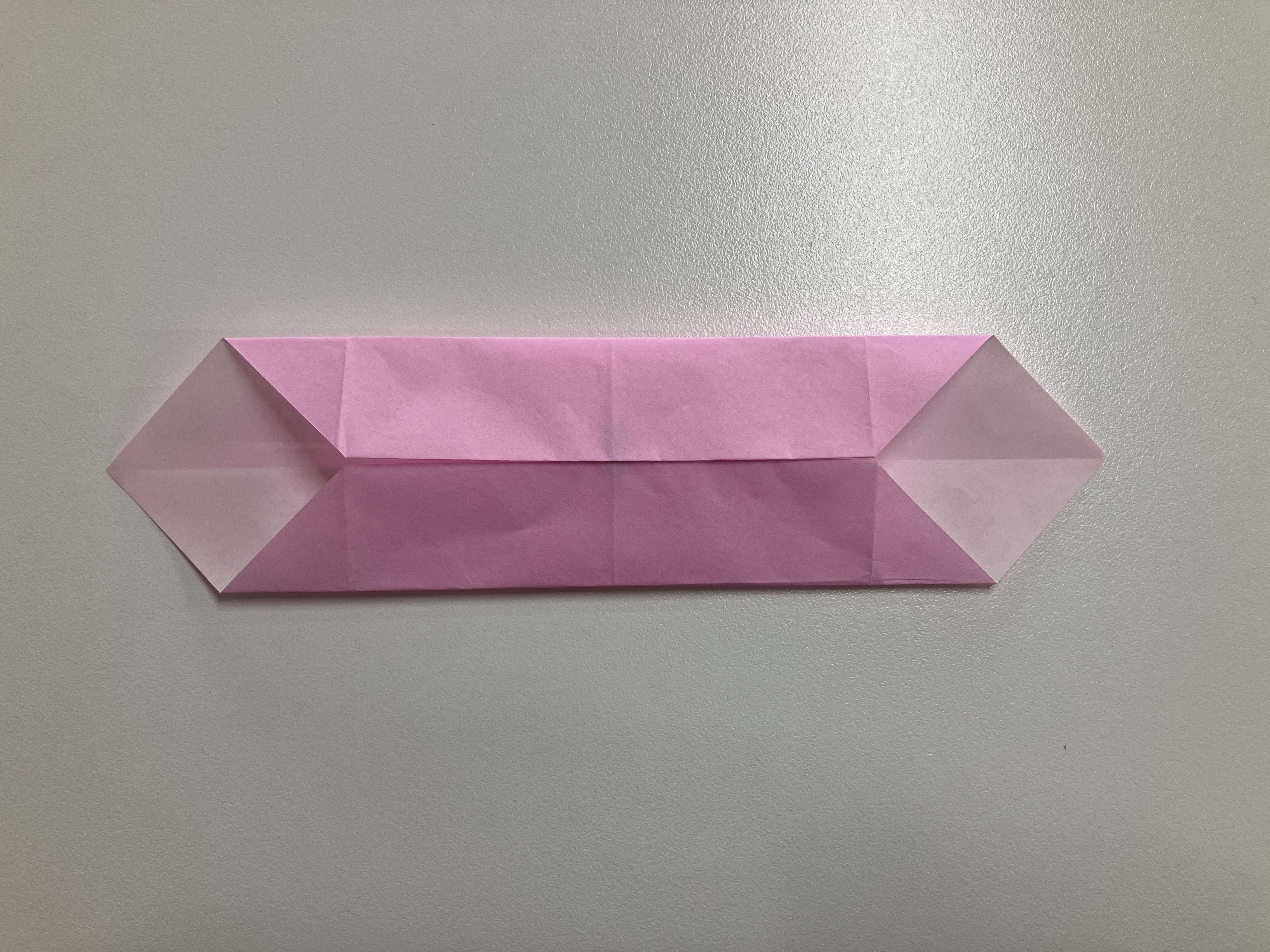 ⑥線に沿って内側に折ります。逆側も同じように折れば完成です。