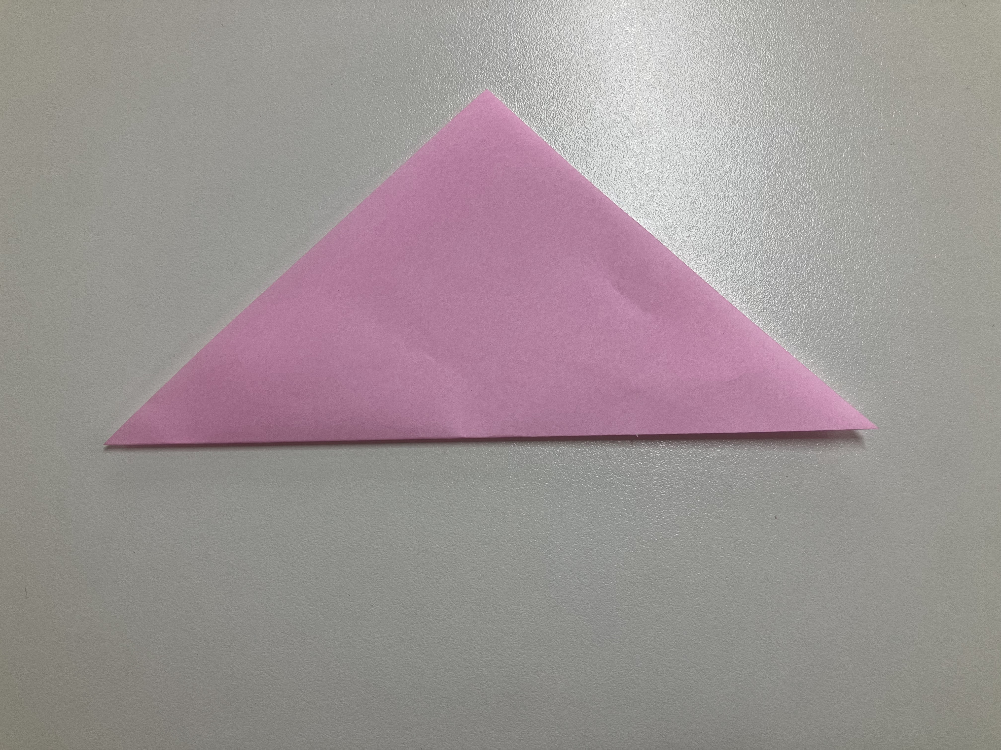 ②1/4サイズの折り紙を4等分に折り、ハサミで切ります。