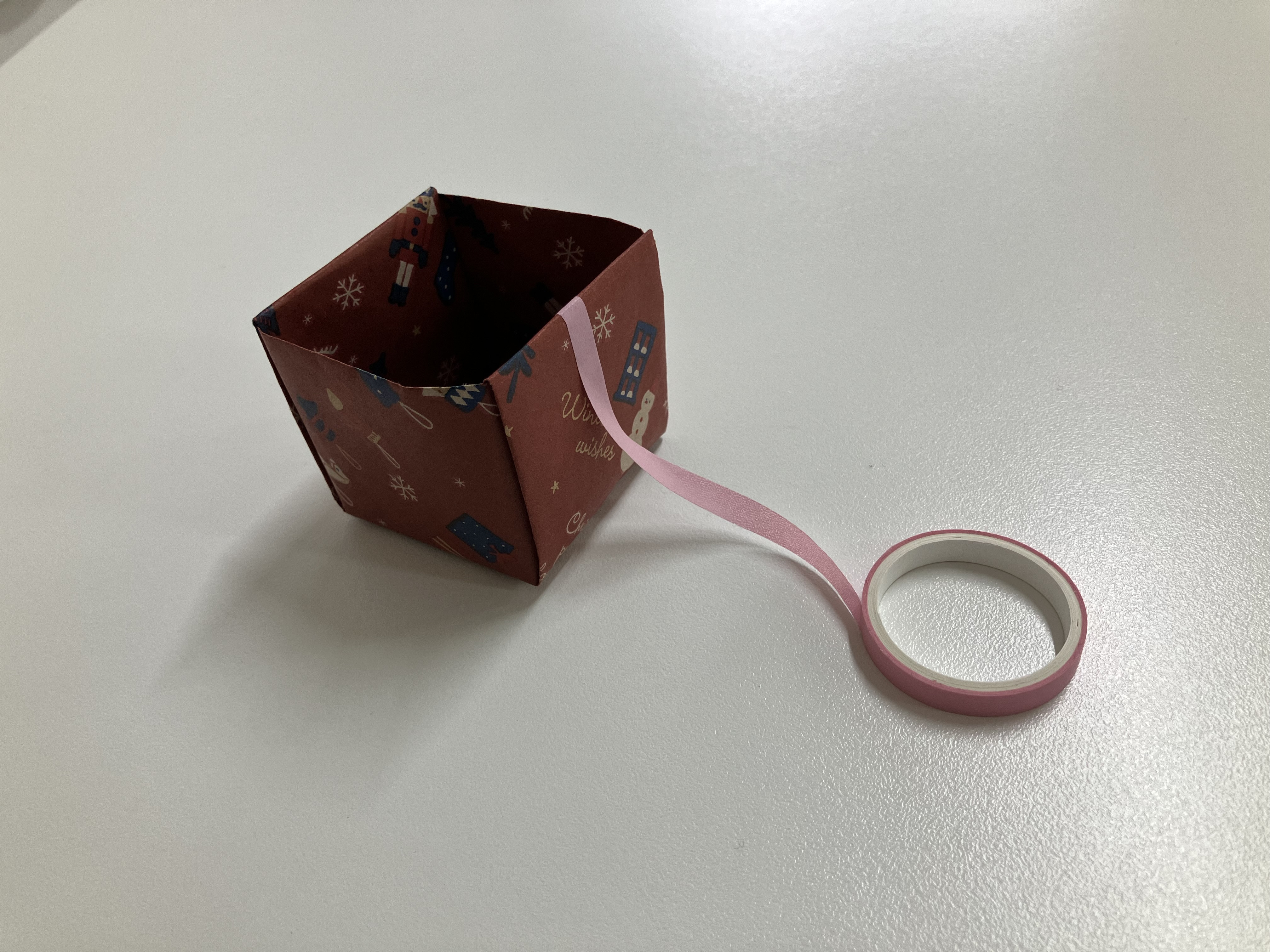 このギフトボックスの箱とふたは、のりなど使わずに折るだけで完成します☺️