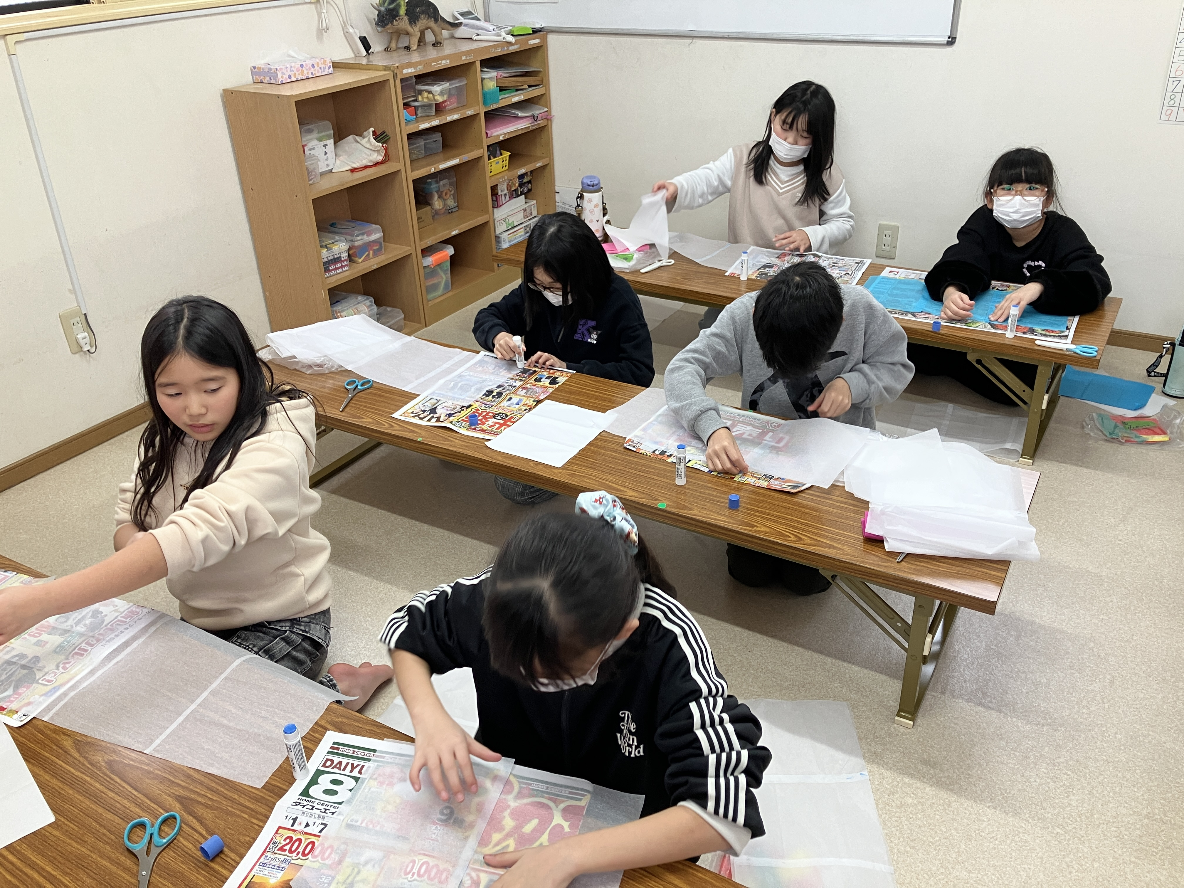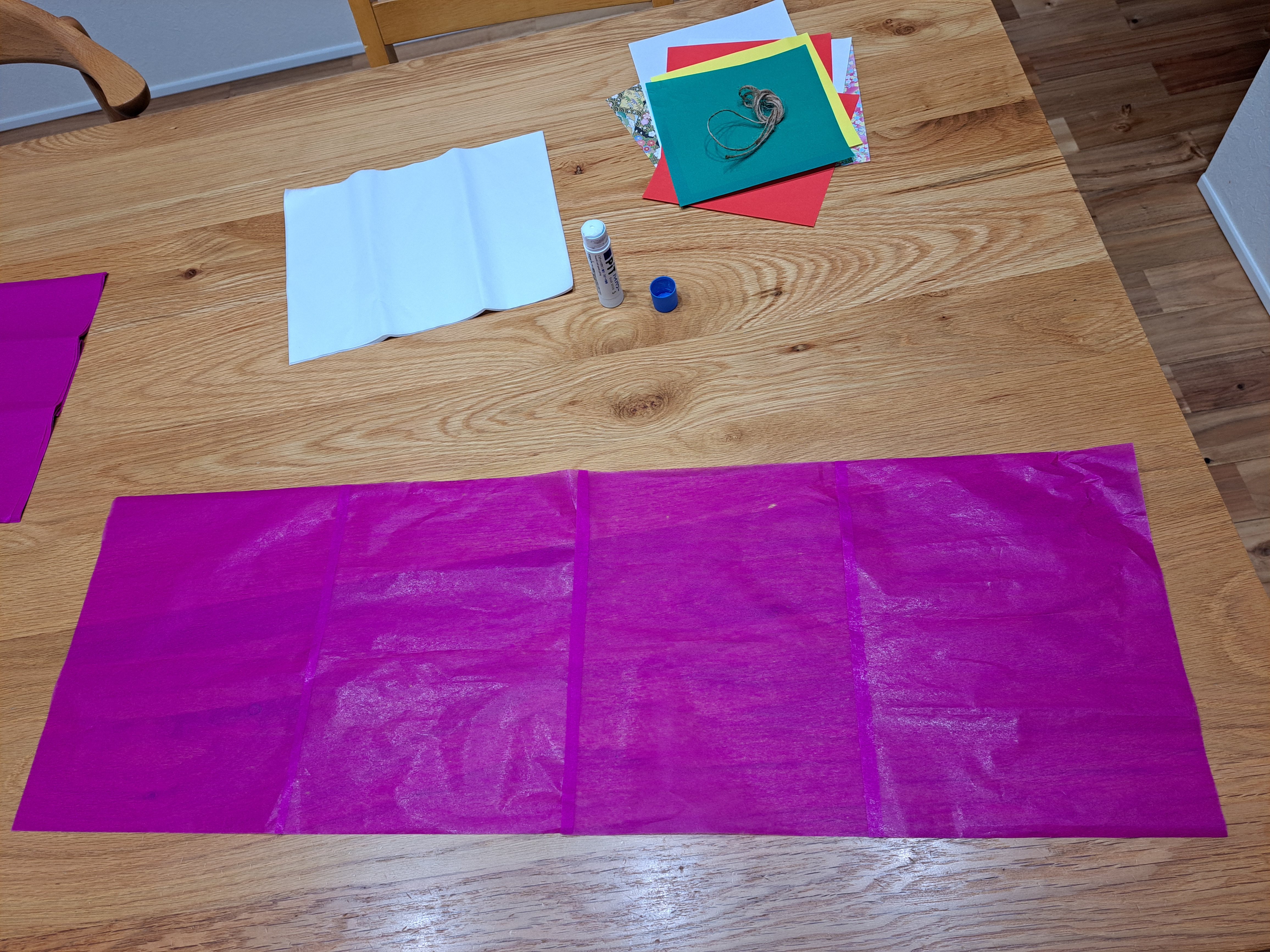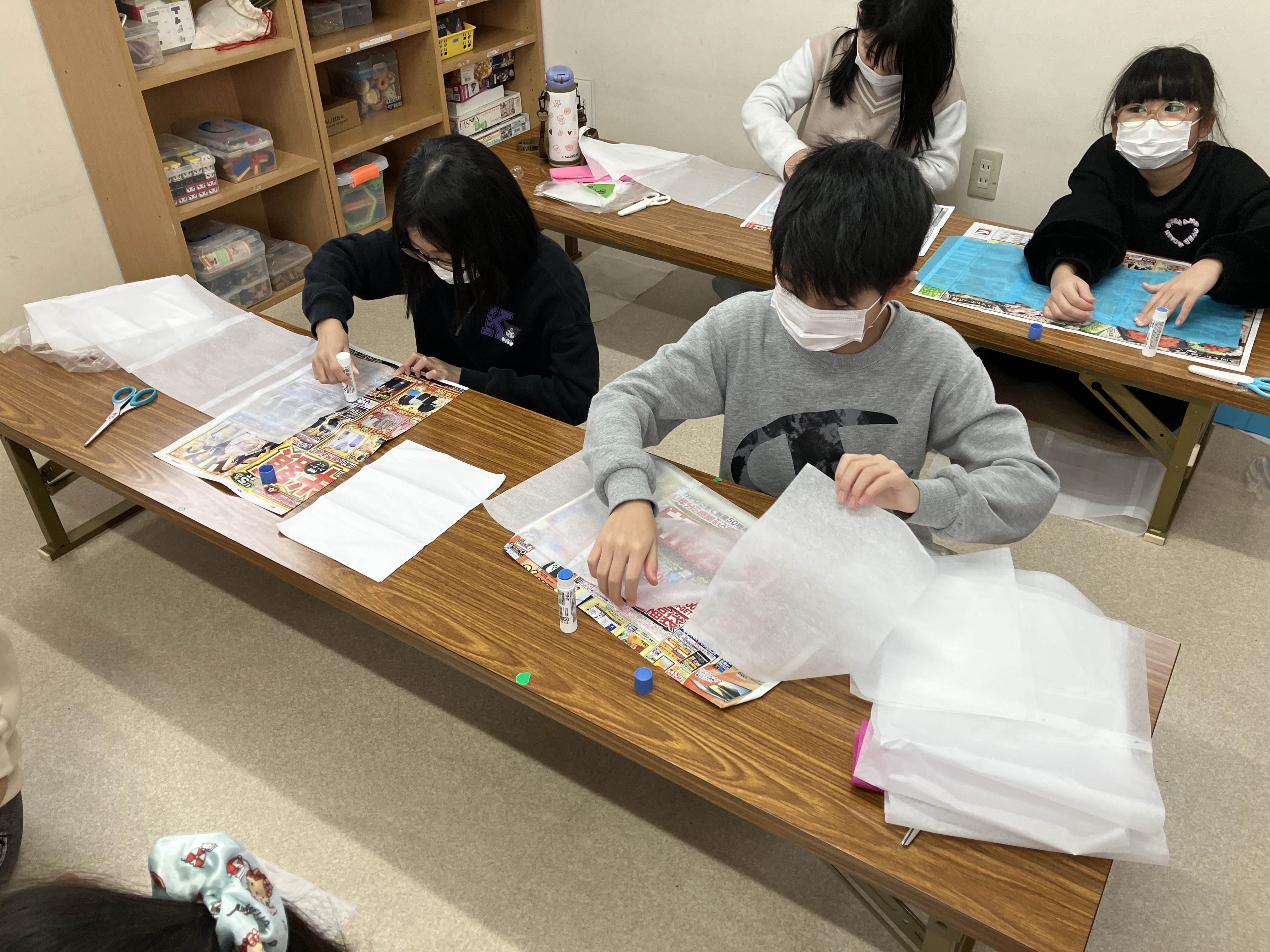 まずはお花紙を一枚ずつのりで貼る作業から…😄✨✨