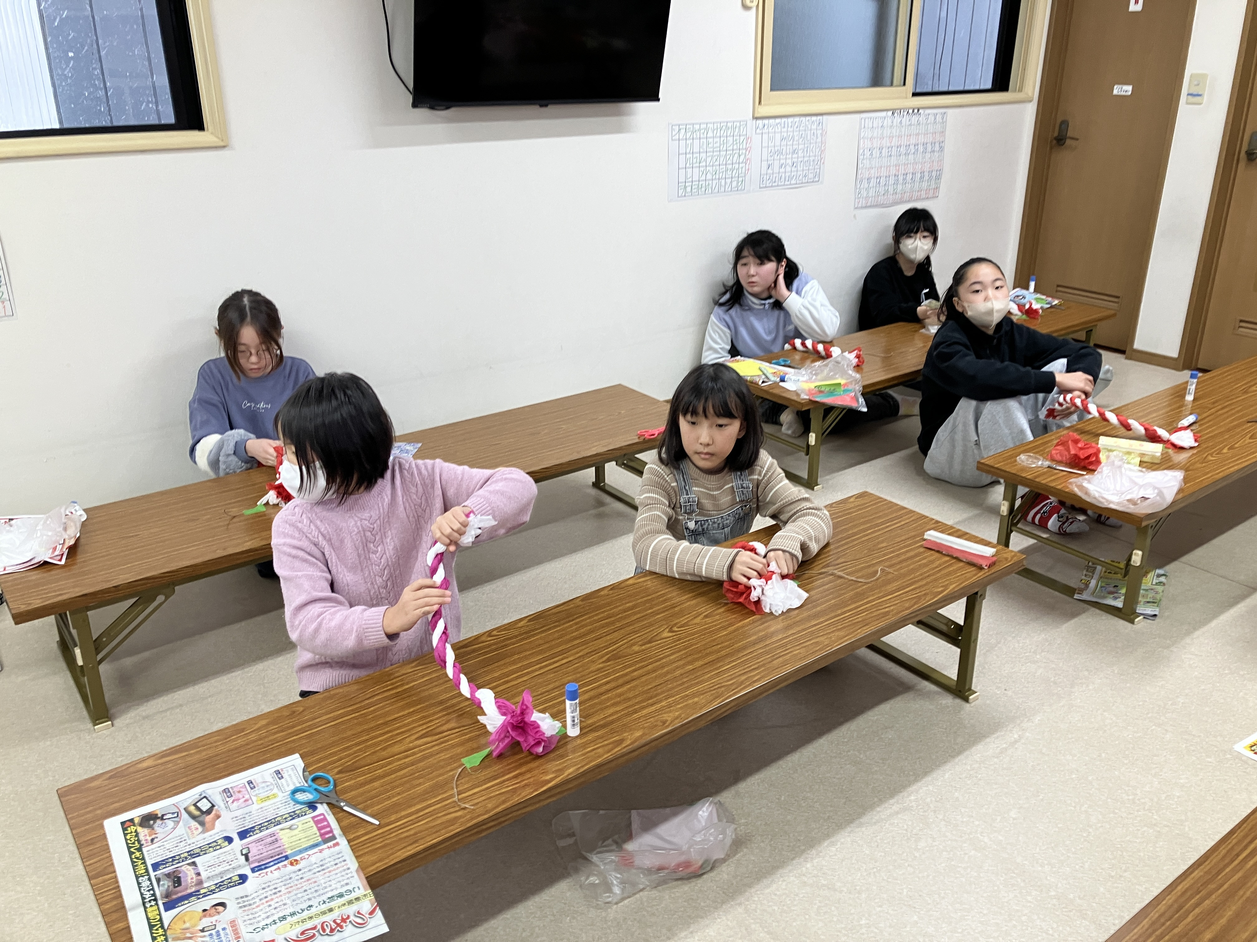 冬休み制作【お花紙で作るしめ縄】(学童)