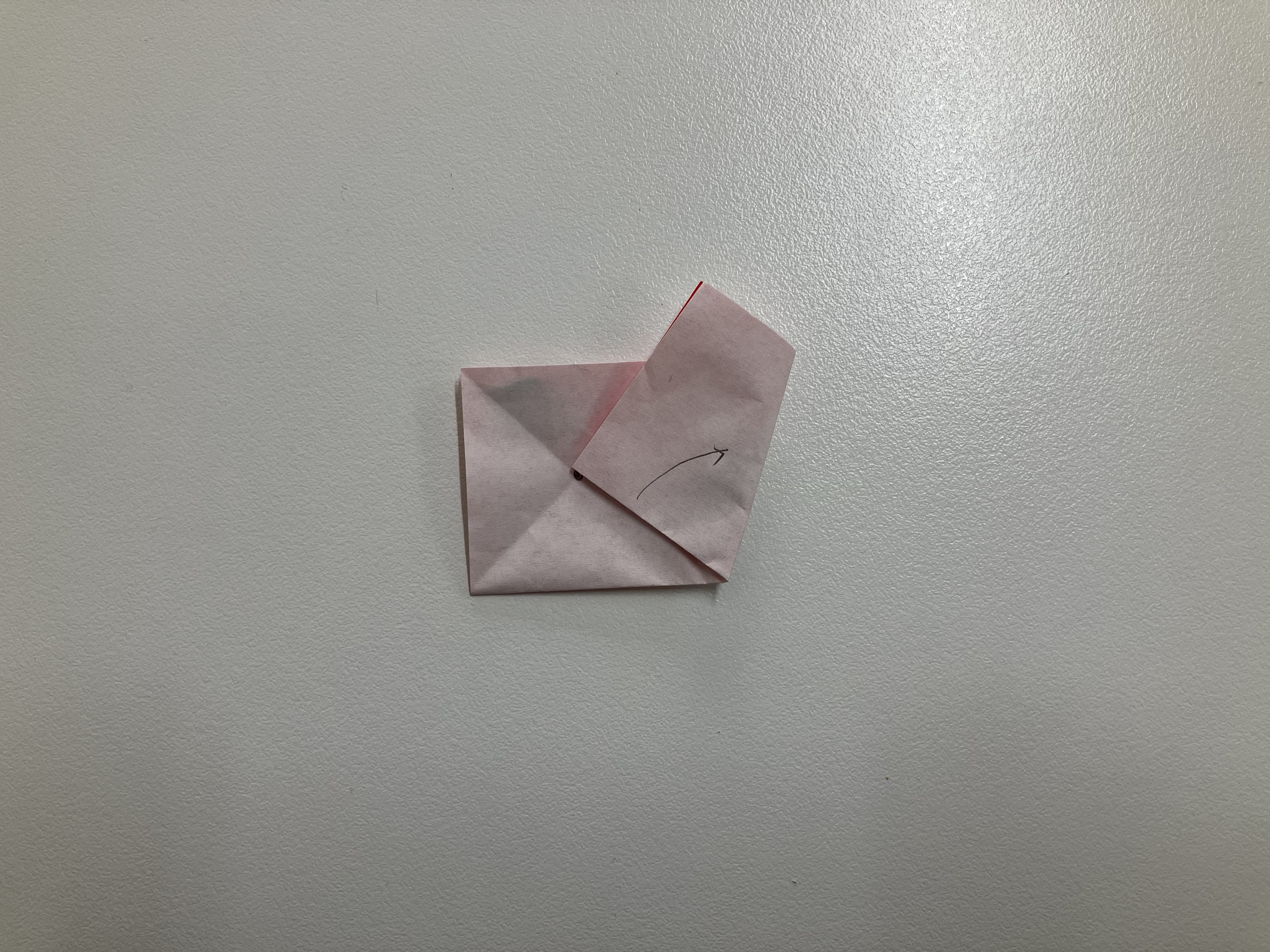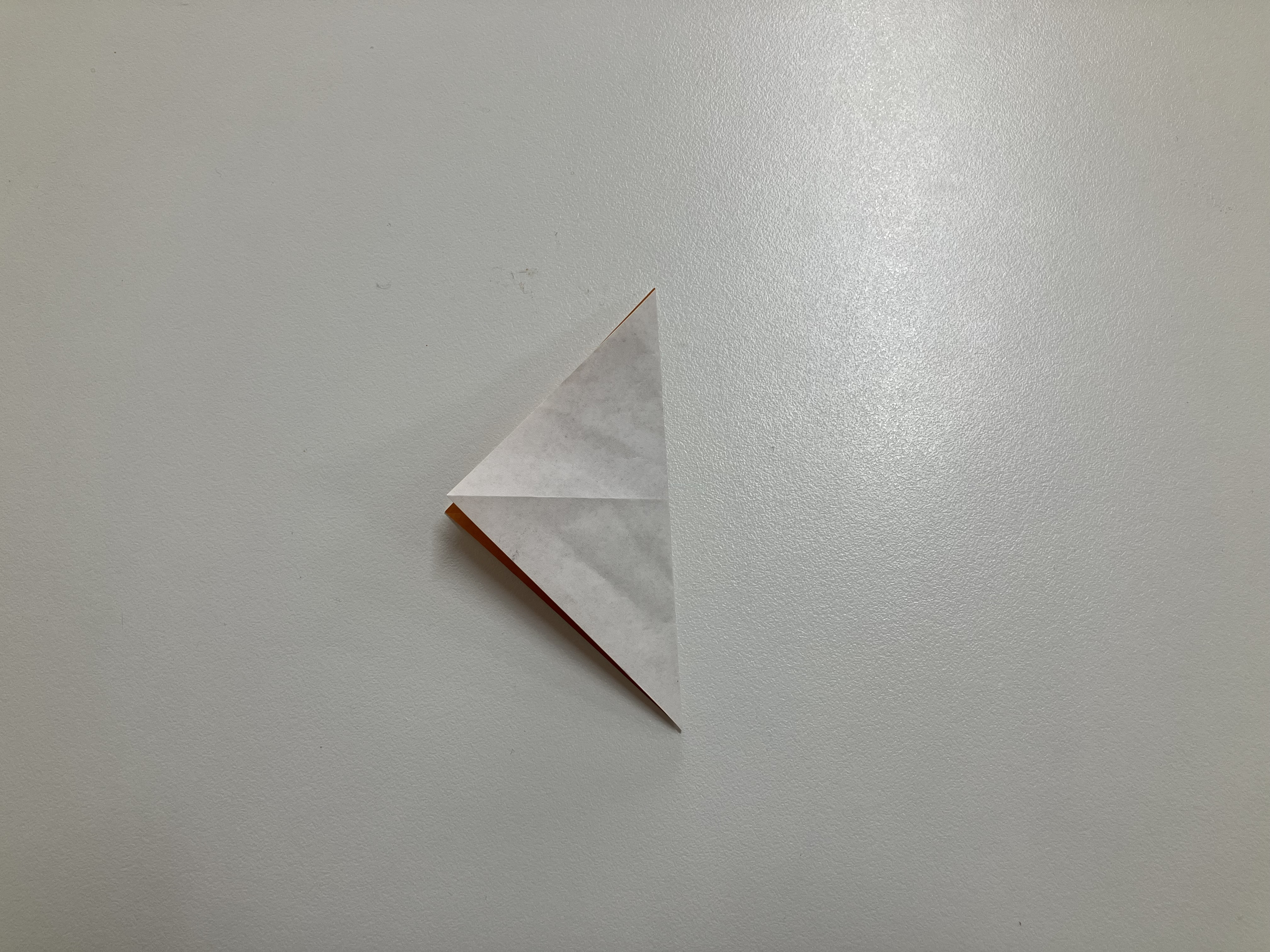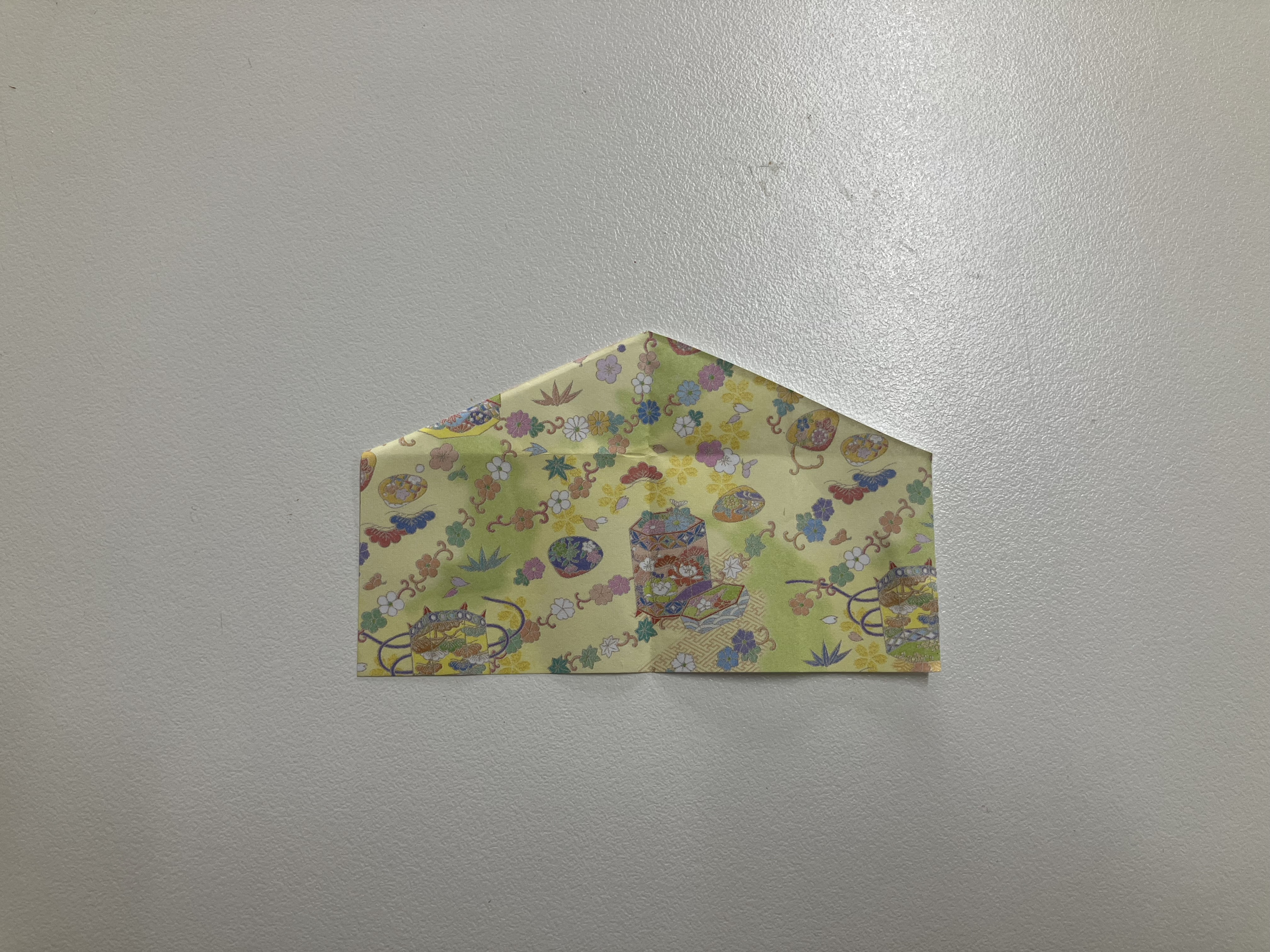 ⑧図のように中心に向かって折り、下の角を少し折って丸みを出せば完成です。