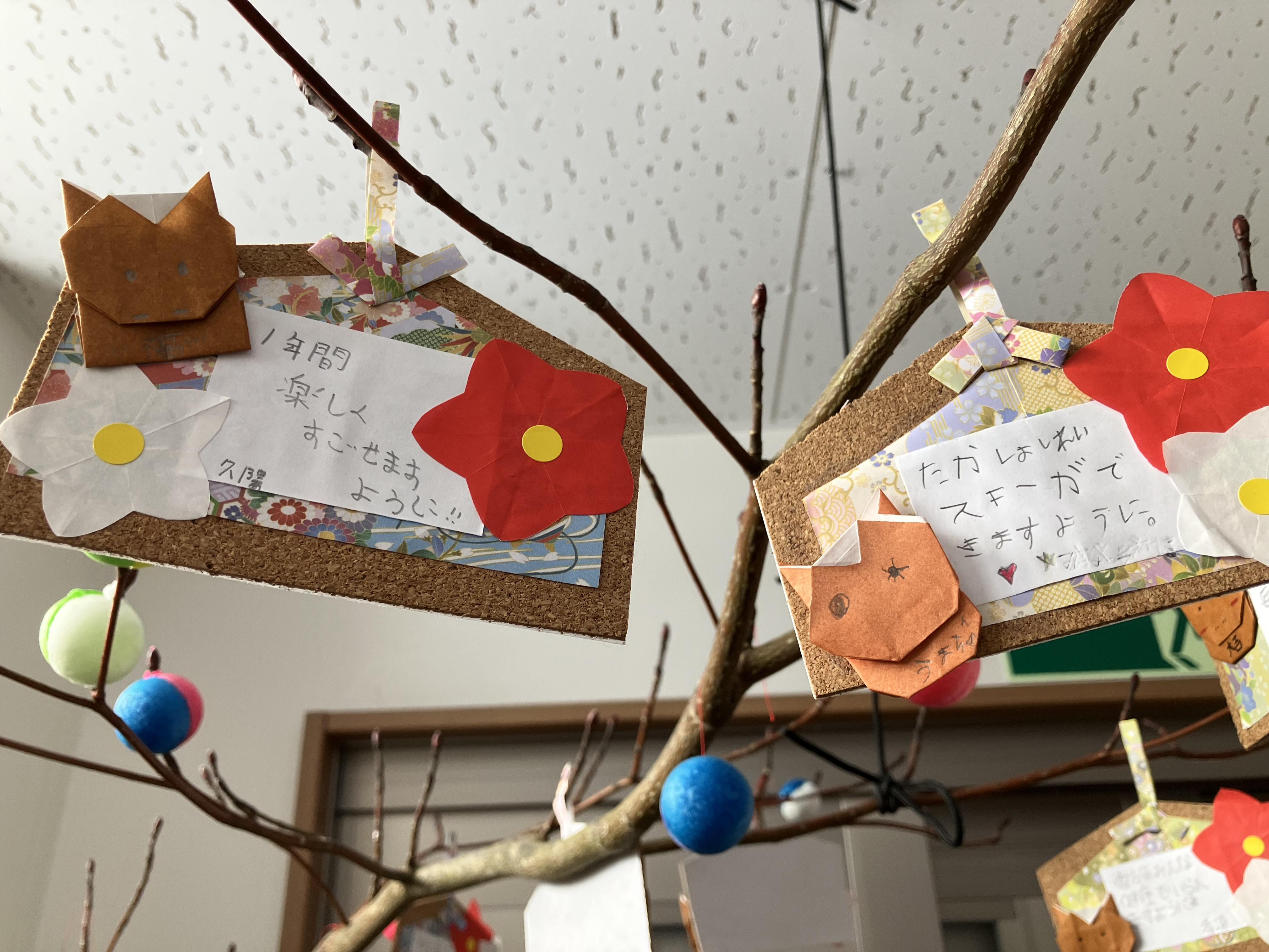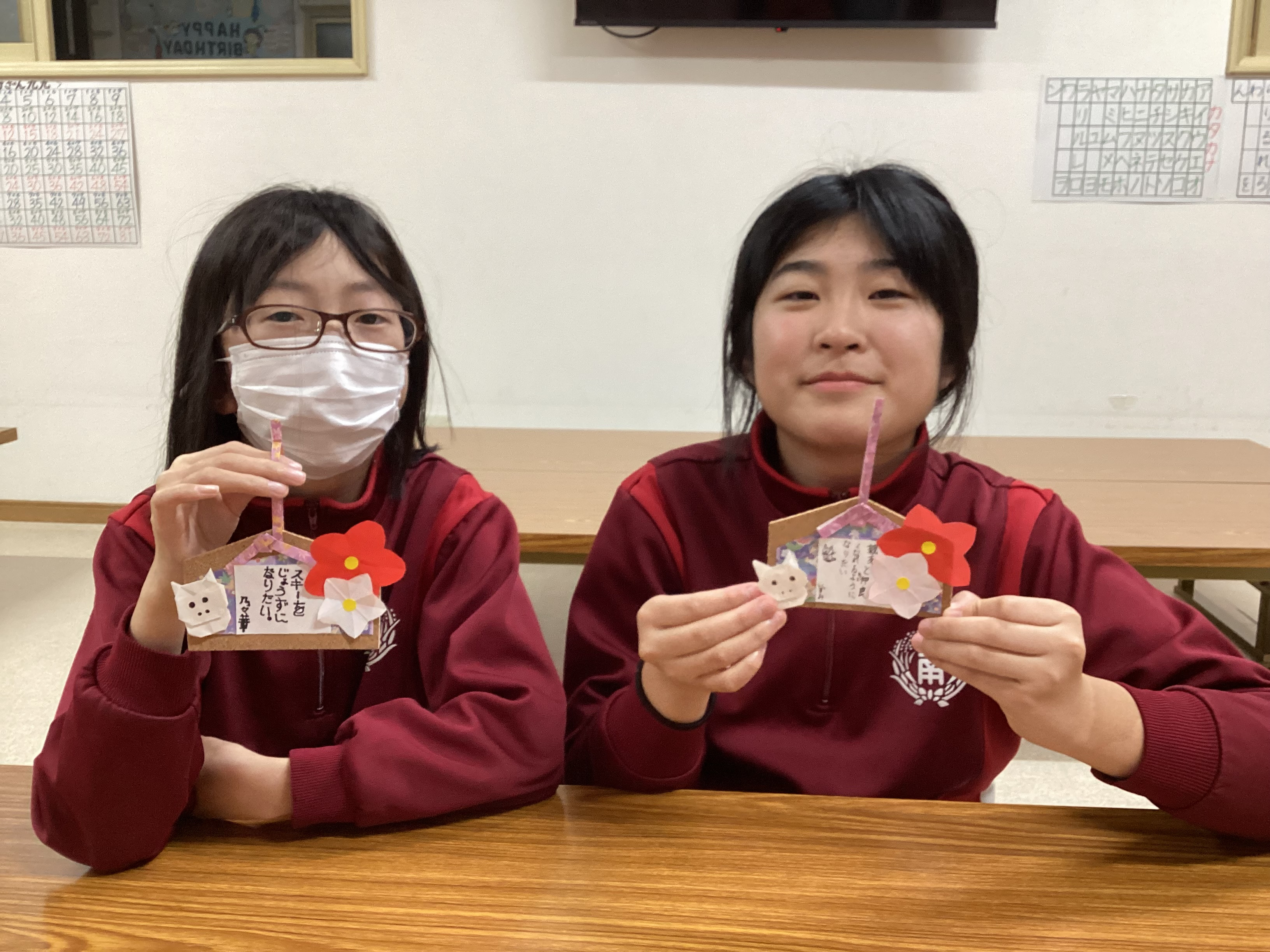 そこで、だるまの形をしたかわいい馬を貼った絵馬を作り、新年の抱負や将来の夢を書いて飾りました✨✨