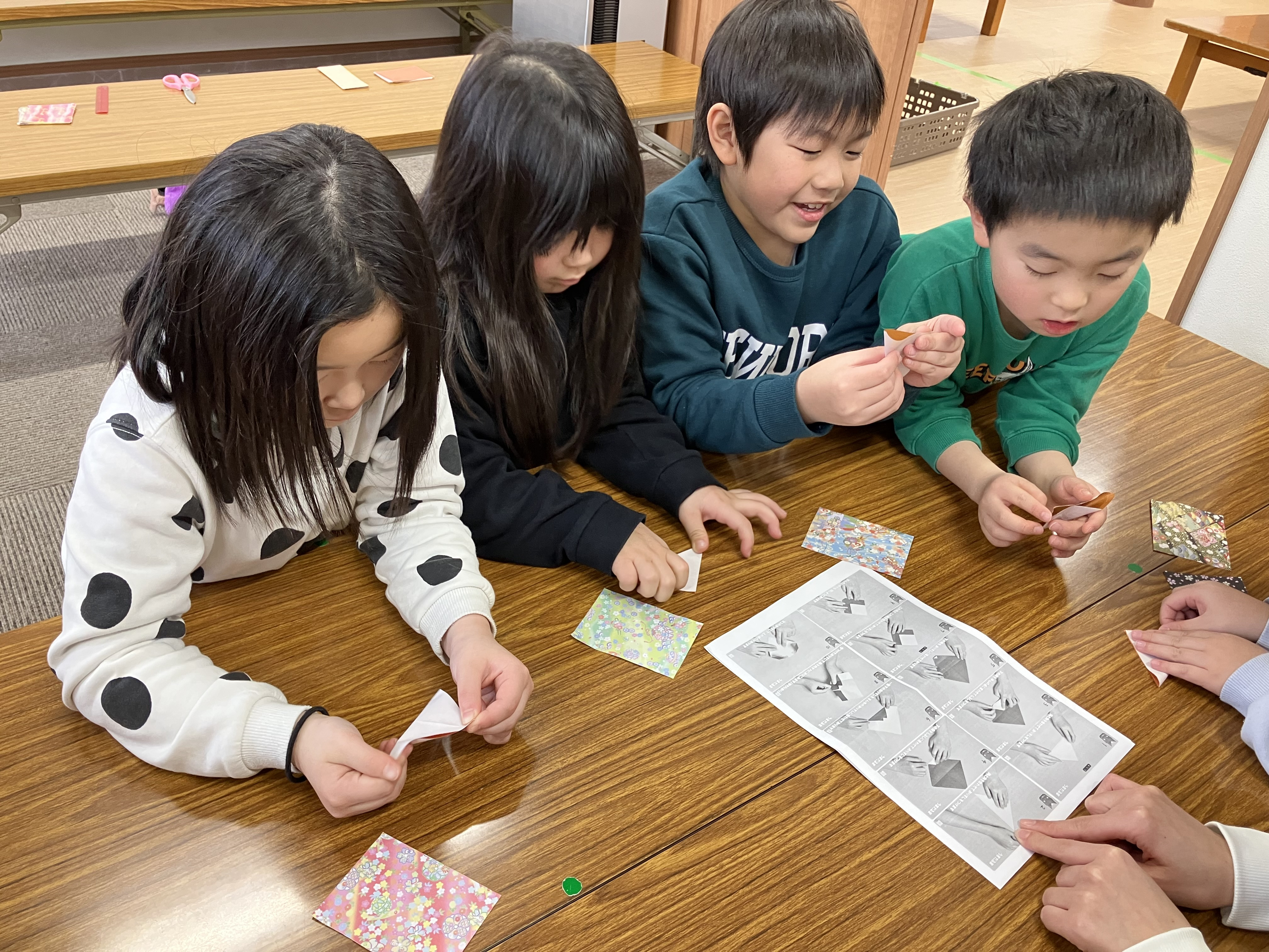 ①和折り紙を半分に2回折ります