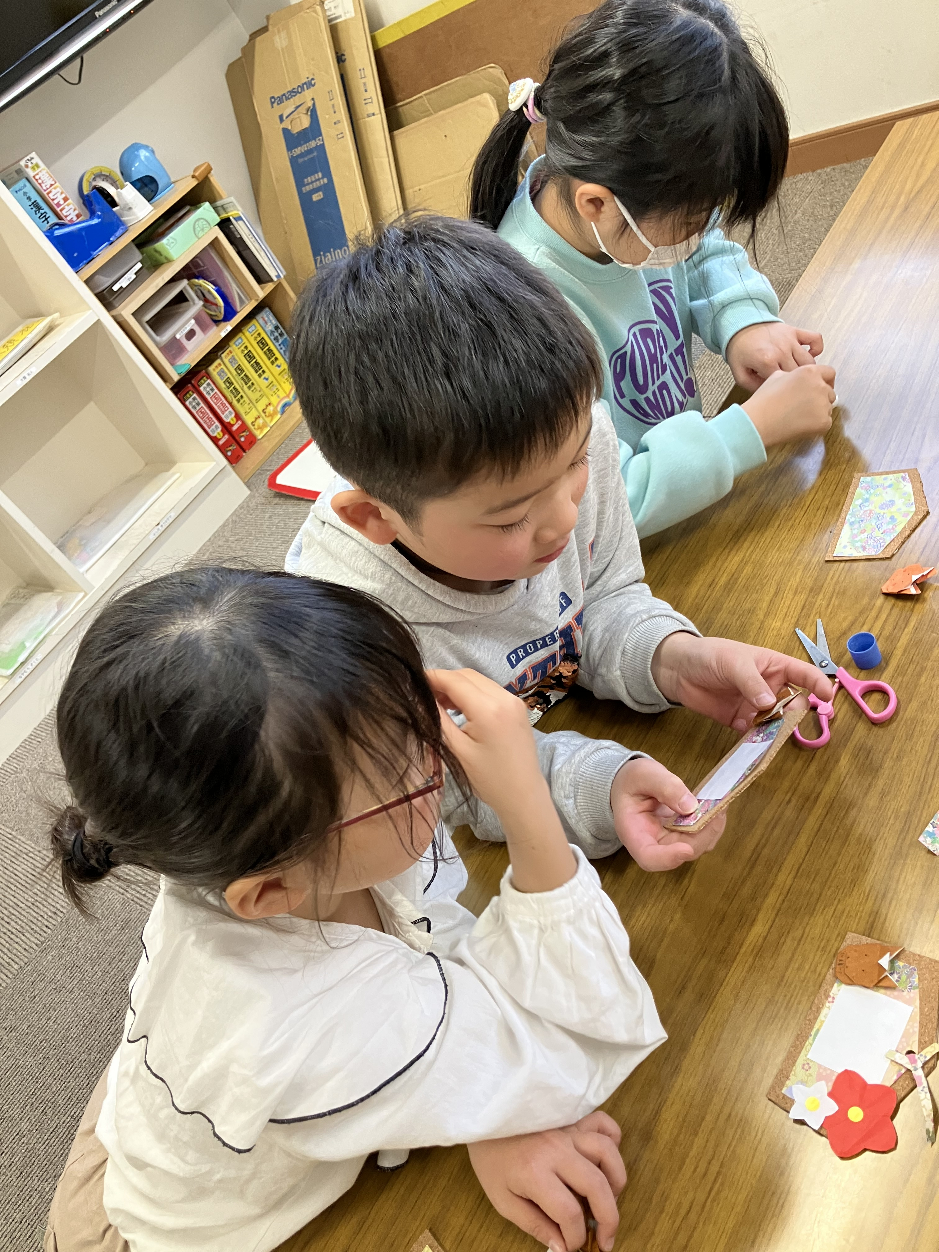 好きなようにコルクシートにのり付けしていきます😄