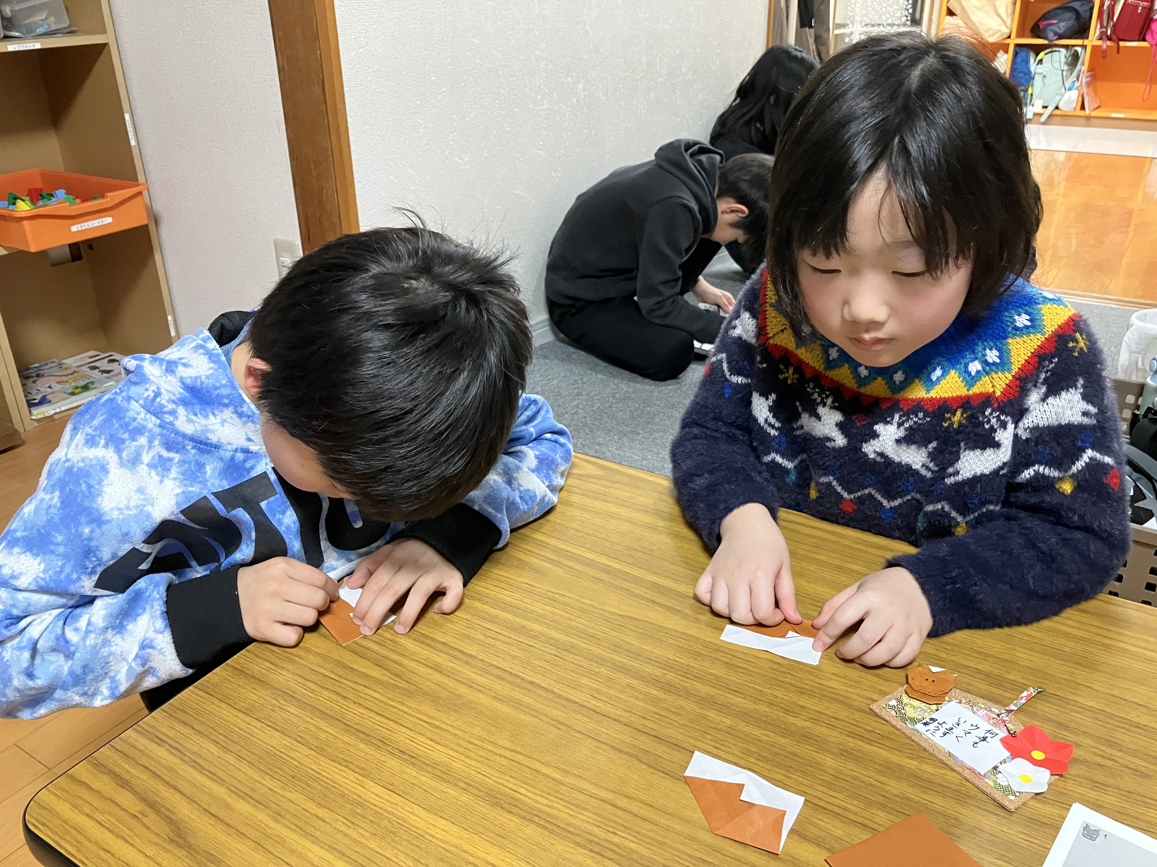 ・茶色、赤、白折り紙(1/4サイズ)