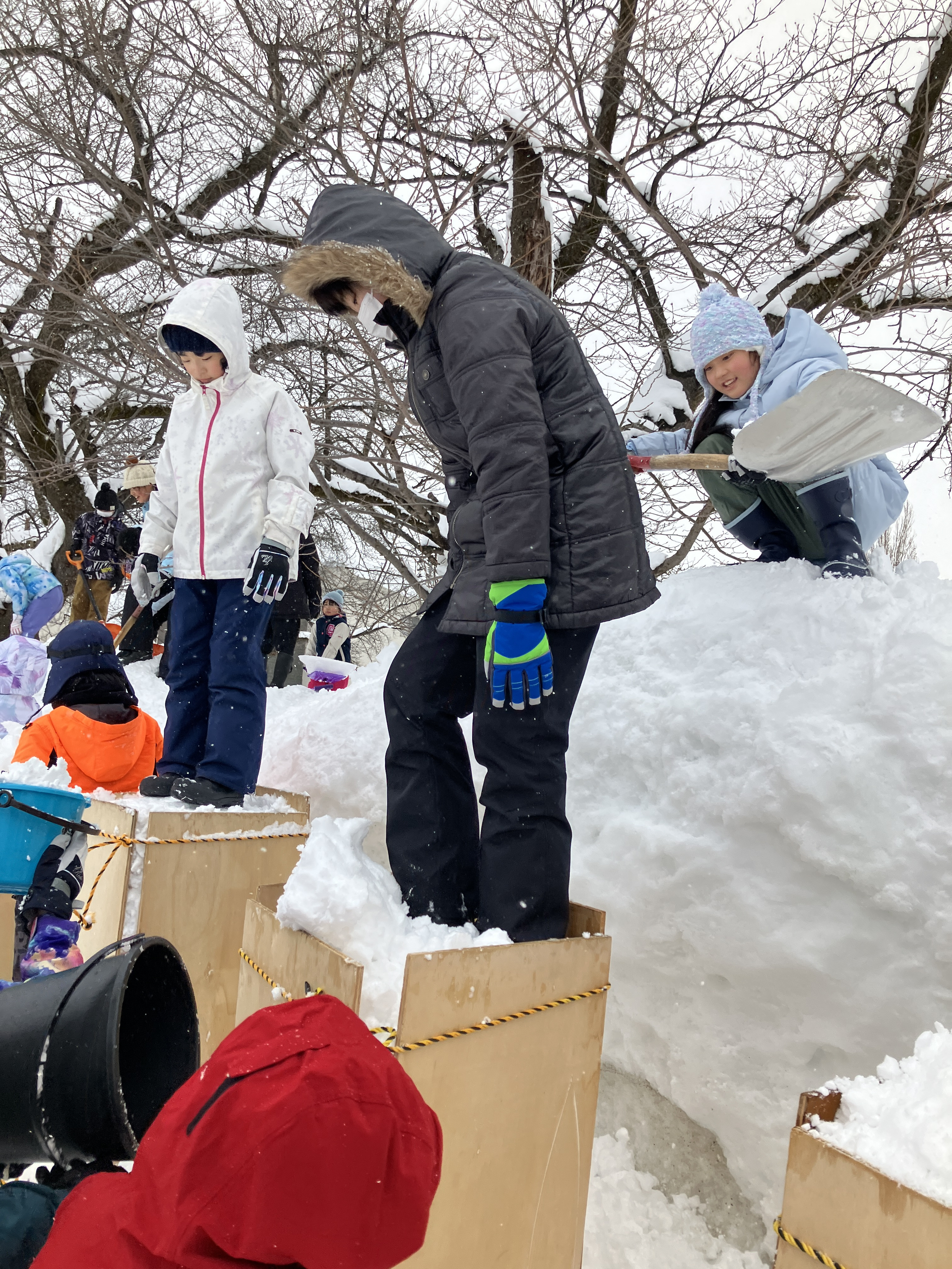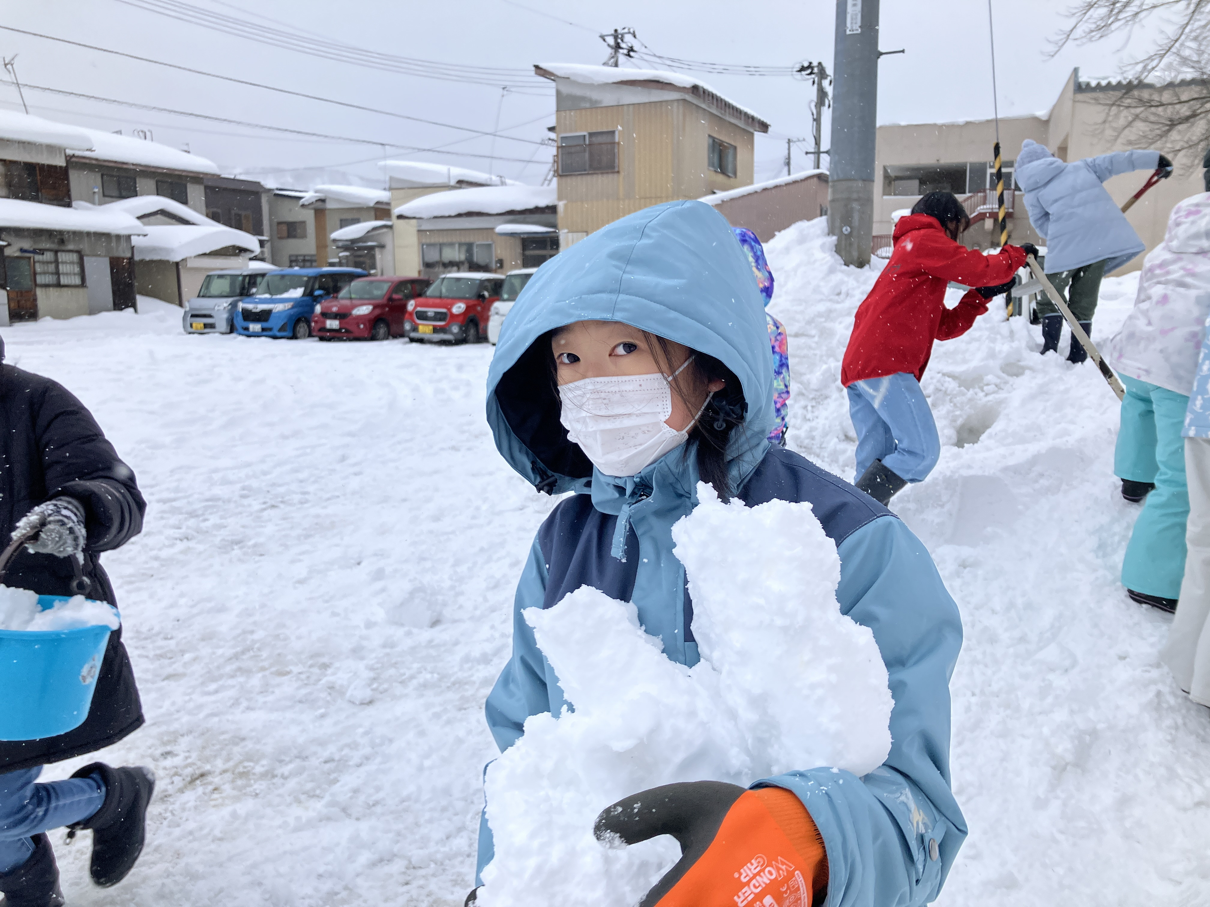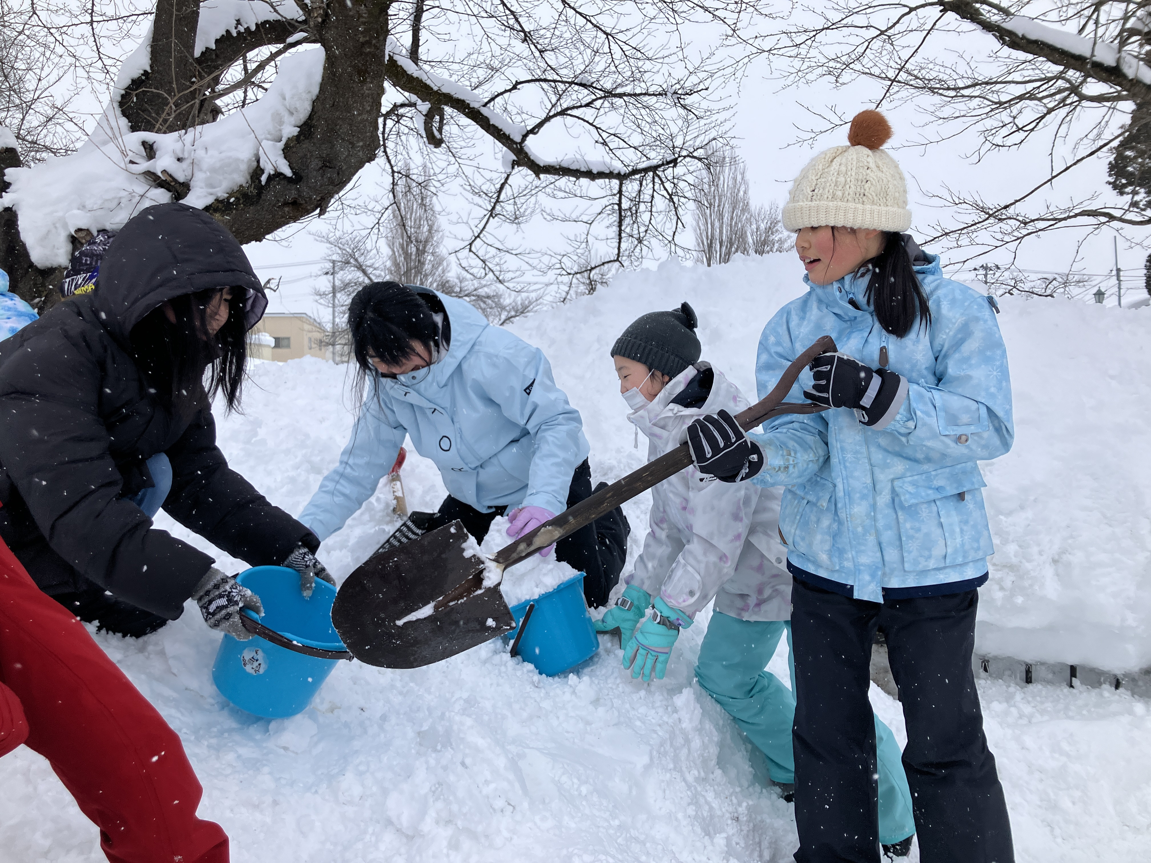 みんなで力を合わせて雪を運びます!