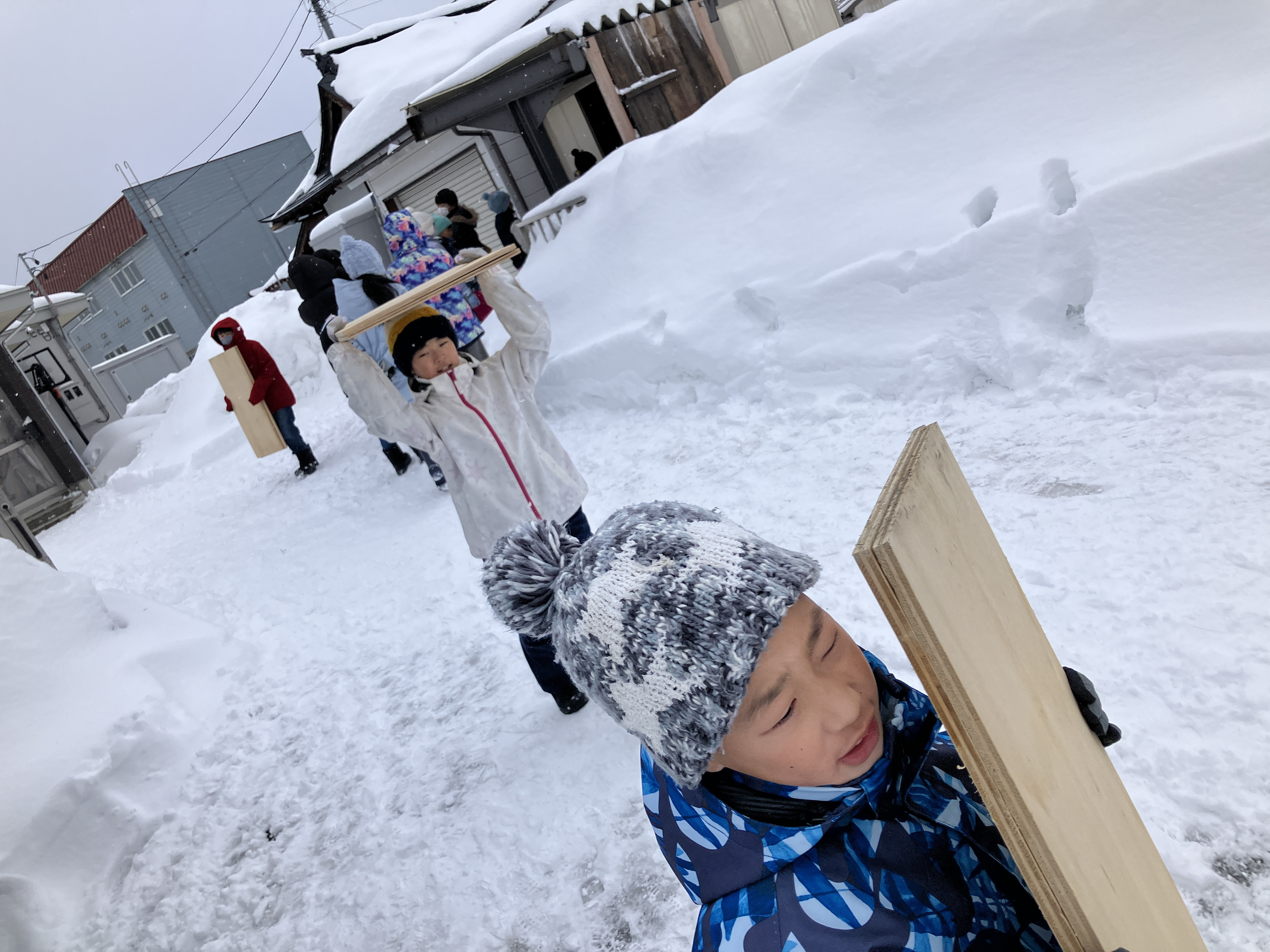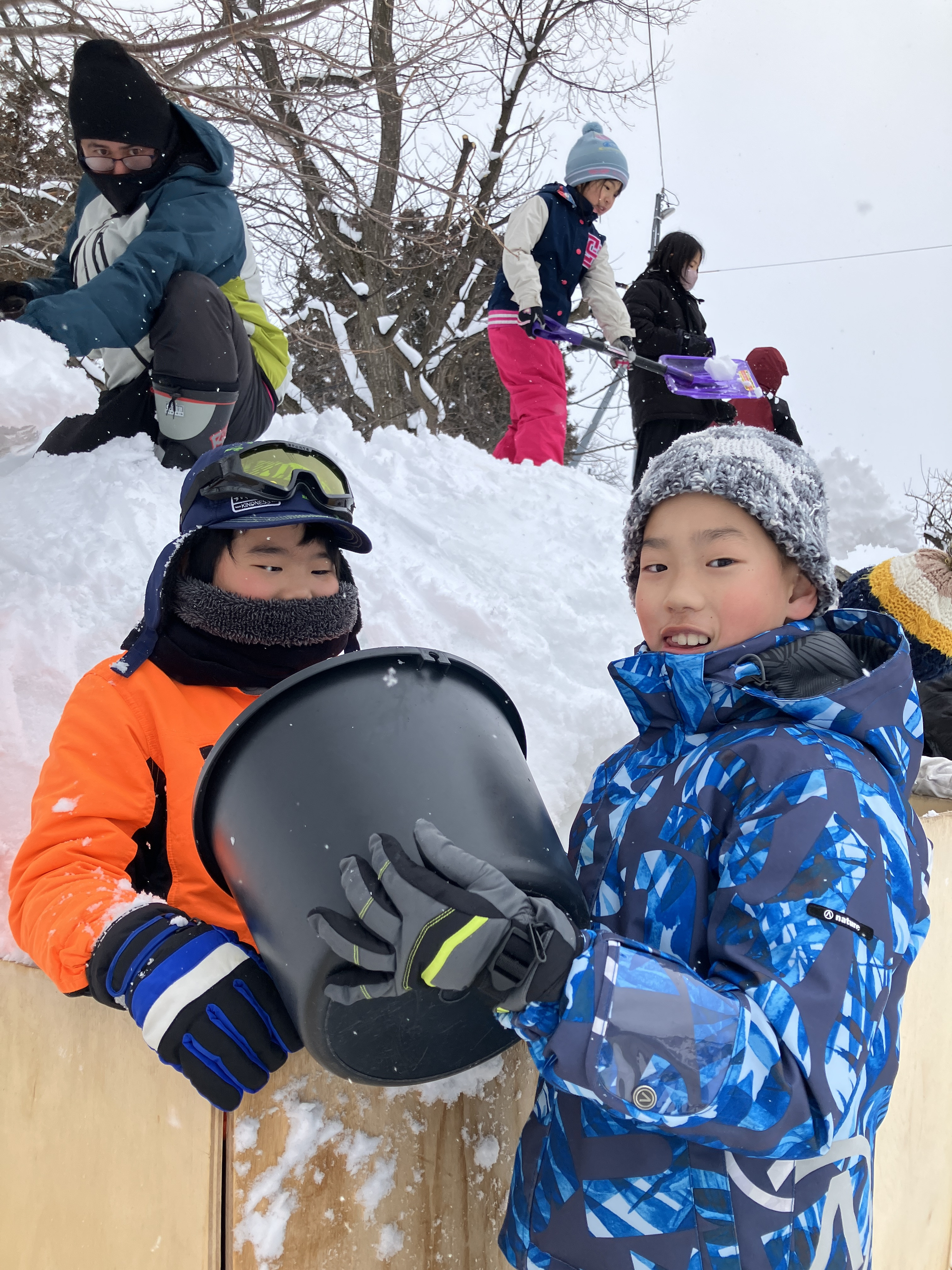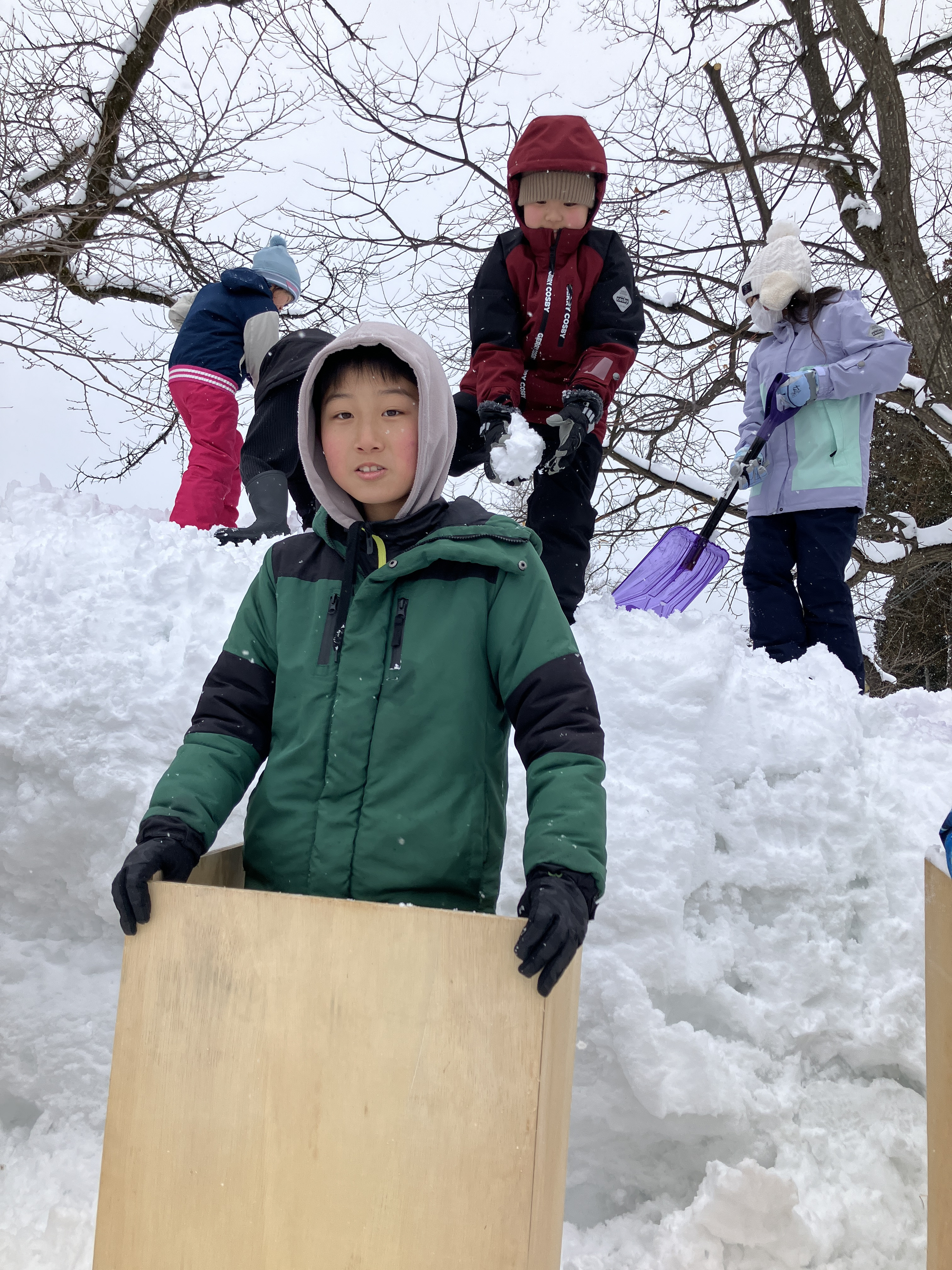 みんなで力を合わせて雪を運びます!