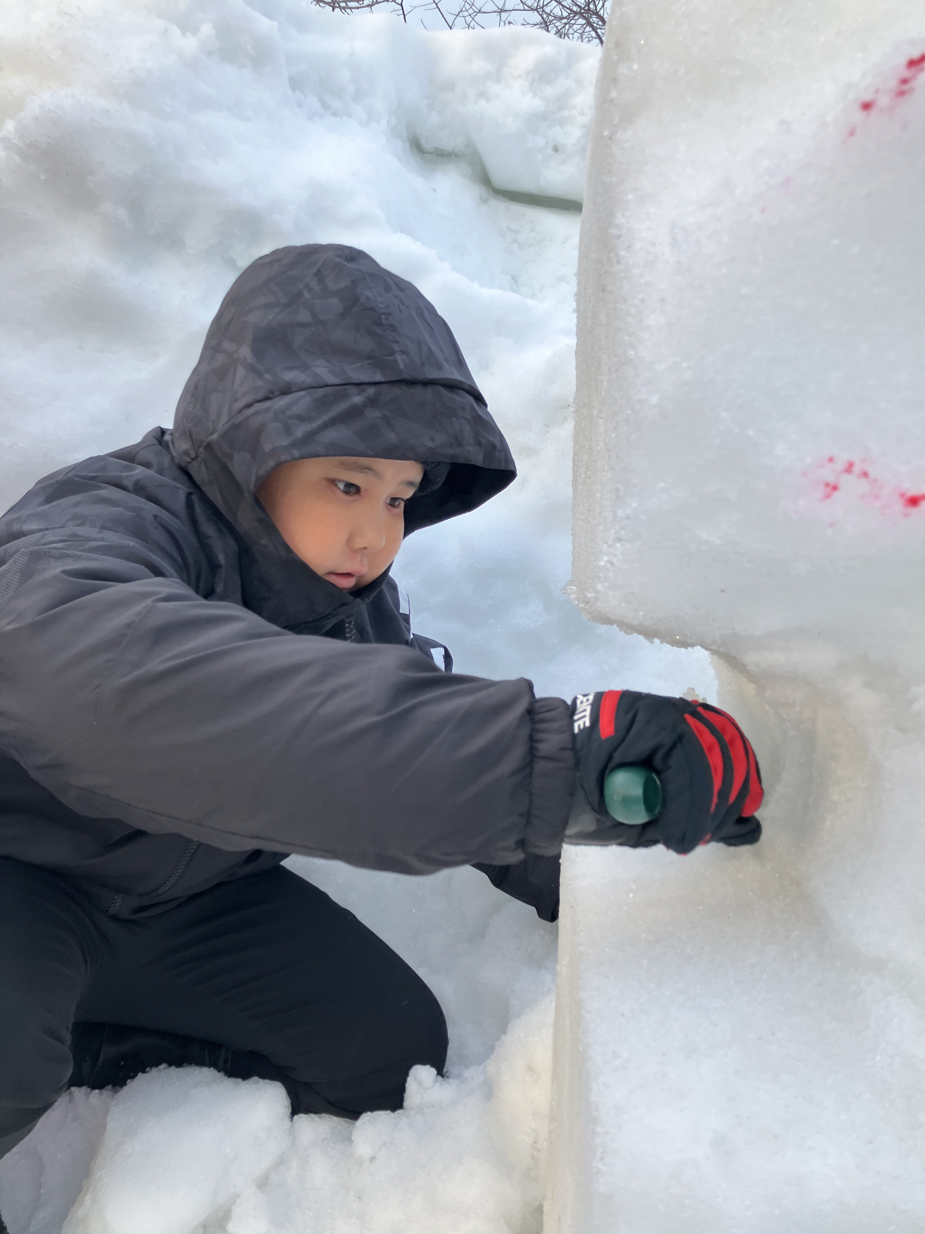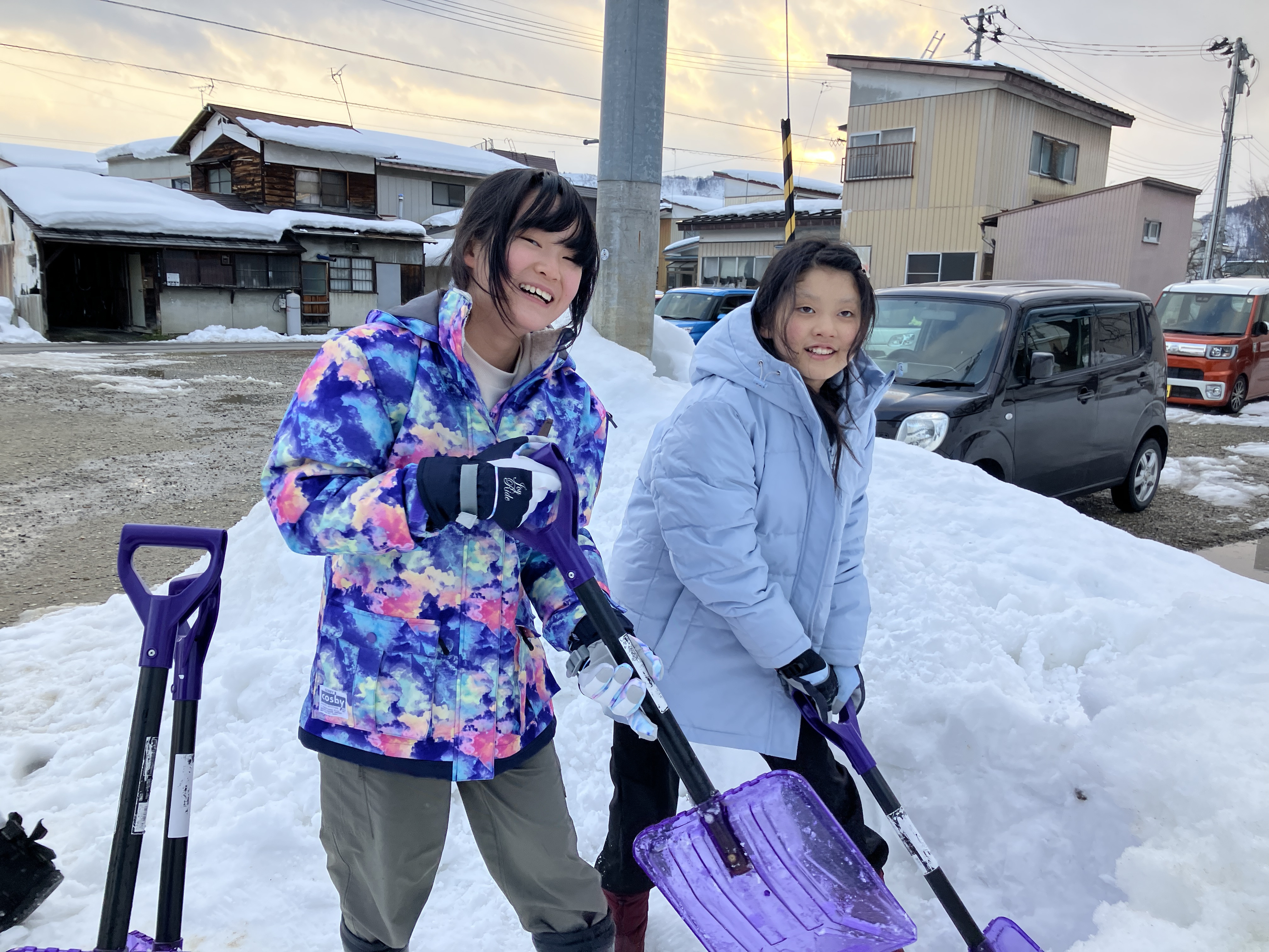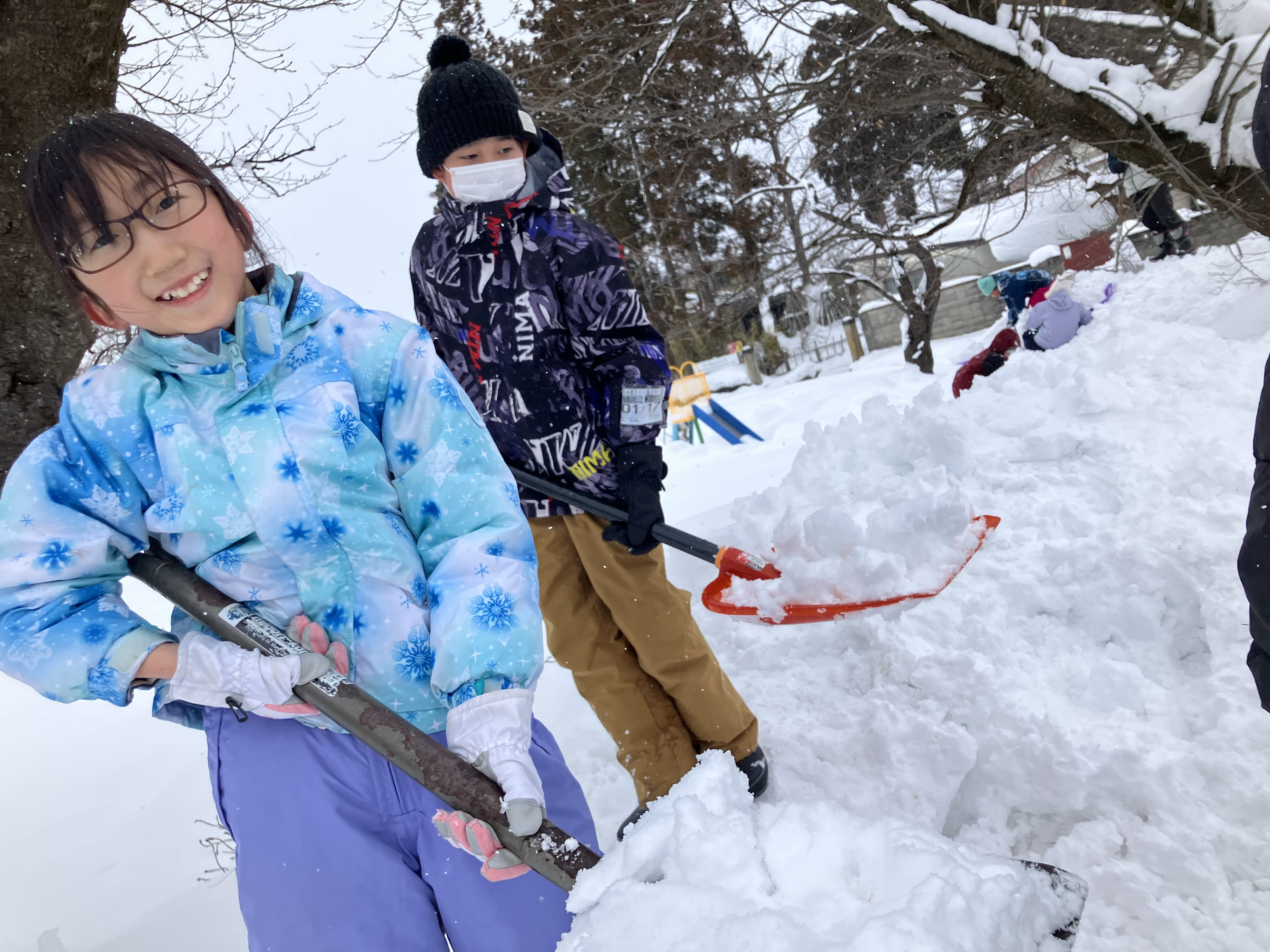 重いスコップでも頑張って、雪を一生懸命掘っていきます。