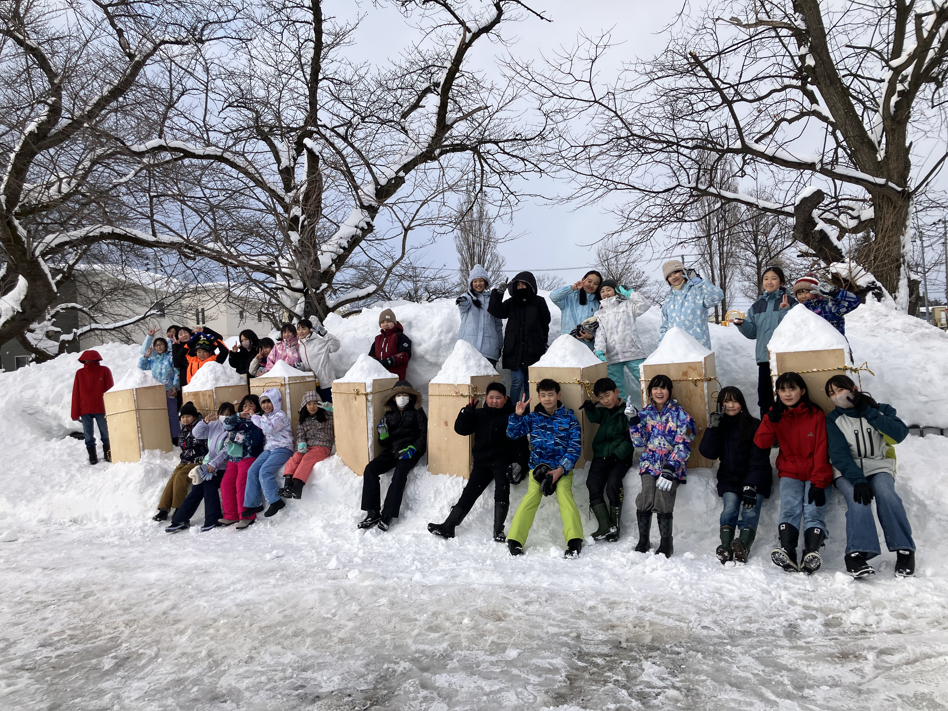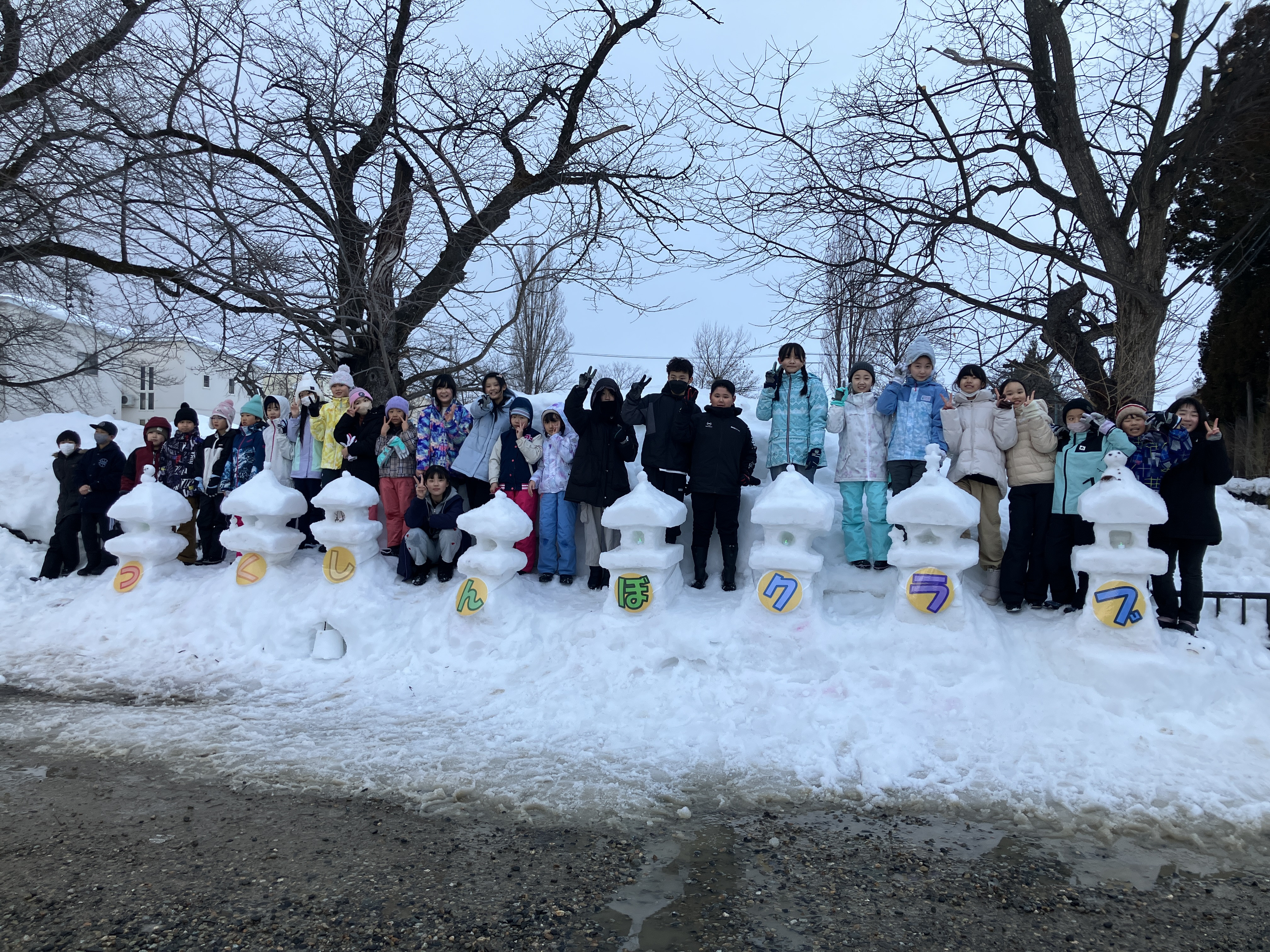 2月9日、12日に4~6年生の子ども達で駐車場に雪灯籠を作りました!